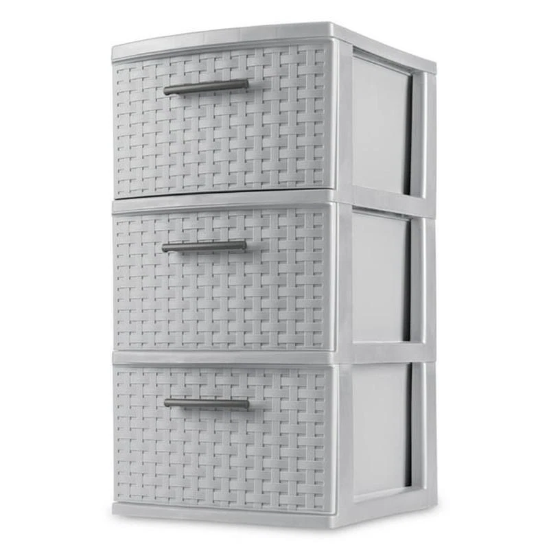 You may also like 3-Burner Gas Stove for Big Outdoor Cooking 30000 BTU 608 Sq in Cooking Space Red 448.86 USD Free shipping Ultra Light Flexible Quarter Inch 100 Ft Air Hose Perfect Roofers Contractors 49.05 USD Free shipping Heavy Duty Carport Canopy Extra Large Portable Car Tent Garage W/Roll-Up Windows 329.17 USD Free shipping Folding Luggage Cart Transport Moving Cart Hand Truck, Black, 75lbs Capacity 33.06 USD Free shipping 6 Piece Plastic 192 In Super Wide Baby Gate Play Yard 2 In 1 Ages 6 24 Months 79.79 USD Free shipping Commercial Lightweight Backpack Baggged Vacuum Cleaner for Carpet & Hard Floors 421.94 USD Free shipping Beveled Mirror Medicine Cabinet 12 X 36 In Frameless Durable Plastic Adjustable 76.12 USD Free shipping Rolling Sewing Machine Storage Transport Tote Triangles W/ Wheels Clear Pockets 63.84 USD Free shipping 12V UltraSafe Portable Lithium Jump Starter Car Battery Booster Pack Powerbank 432.83 USD Free shipping Professional Compact 120V Bench Grinder Sharpenern Garage All Chainsaw Chains 282.14 USD Free shipping Bread Box Steel Fingerprint Proof 21 X 11 X 8 In Handy Large Capacity Durable 77.75 USD Free shipping Grind Rail 55 In Long 3 Step Adjustable Height Extra Stability Practice Skate 73.15 USD Free shipping Organize visible storage areas with Sterilite’s Weave collection. These Weave Storage items combine style and function; the trendy look of weave with the convenience, durability and value of plastic to provide a variety of décor solutions for your living spaces. The 3 Drawer Weave Tower is ideal for "out in the open" lightweight storage needs. Three opaque drawers keep clutter controlled and concealed while providing access to frequently used items, where they are most often used. The easy pull handles allow drawers to open and close effortlessly, with a drawer stop to prevent drawers from being removed accidentally. When storing items away, be mindful of the weight in each drawer and don't overload. The overall assembled dimensions of this item are 15" D x 12 5/8" W x 24" H. Sterilite Adult Plastic 3 Drawer Weave Tower Cement: Outside Dimensions: 15" x 12 5/8" x 24" Three opaque drawers keep contents concealed where they most often used Single unit option Opaque woven pattern to add a fashion touch to your storage - Cement Interior Dimensions at bottom of drawer: 12 1/2" x 10" x 7" Stylish weave pattern complements all décor in easy to clean, durable plastic Versatile decorative storage solution is ideal for use throughout the home Opaque drawers keep contents concealed and clutter controlled Keep frequently used lightweight items contained and organized where they are most often used BPA-free and phthalate-free 17 Qt Plastic Stackable Closet Storage Box Snap Tight Lid Keep Dust Clear Set 6 34.06 USD Free shipping 28 Quart Storage Box Container Bins Plastic Clear View Stackable W/ Lid 6 Pieces 47.71 USD Free shipping Kitchen Enamel Dinnerware Set Steel Spoons Mugs Bowls Plates Camping 24 Piece US 53.16 USD Free shipping 6 Speed Performance Hand Mixer Includes Case 5 Attachments Stainless Steel New 35.86 USD Free shipping Kids Modern Classic Video Rocker Gaming Chair Faux Leather Mesh Comfortable New 58.9 USD Free shipping Ultra Light Flexible Quarter Inch 100 Ft Air Hose Perfect Roofers Contractors 49.05 USD Free shipping 7 Qt Manual Slow Cooker Non-stick Removable Cooking Surface Mperature Control 42.3 USD Free shipping Classic Video Rocker Gaming Chair Kids Teens Faux Leather Mesh Light Weight Blue 58.9 USD Free shipping Side Storage Student Desk Give Your Student Perfect Spot Finish Homework White 62.84 USD Free shipping Hand Held Shower Head Powerpulse Massage 7 Spray Modes Anti Clog Nozzles Chrome 52.52 USD Free shipping 15-Piece MM Combination Wrench Set W/ Tool Pouch Chrome Finish Rust Resistant 46.52 USD Free shipping Folding Luggage Cart Transport Moving Cart Hand Truck, Black, 75lbs Capacity 33.06 USD Free shipping