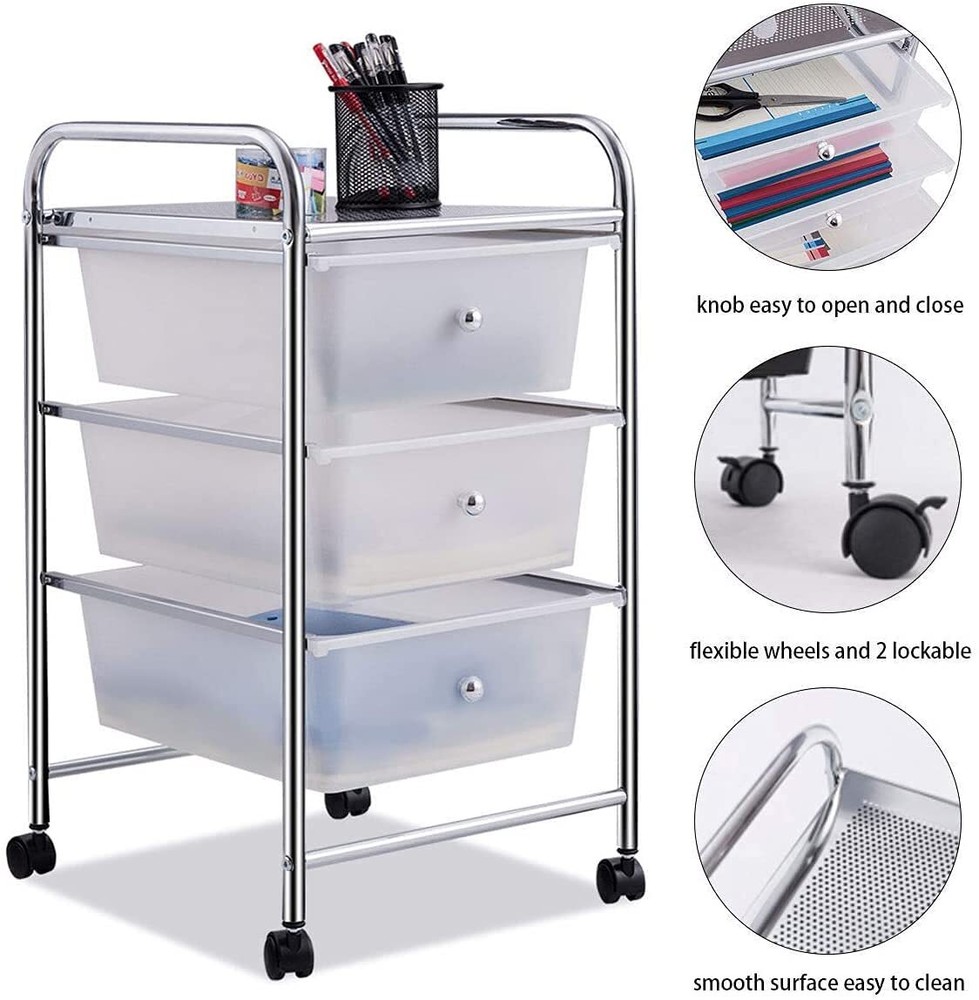 Description: An excellent storage cart for home, office, classroom. With steel frame and chrome-plated surface, this drawer storage cart features sturdy and durable structure, bringing you long-lasting enjoy. Solid metal top board offers 16.5 lbs load. Drawers made of PP can also support 4 lbs. Each drawer is equipped with a round knob for easy opening. With both closed and open storage space, you can put your items in order. You can organize different categories of items and put them in the drawer and you can also put them on the top surface to keep your room in order. Lightweight body and 360-degree wheels make it easy to move the drawer storage around. It has a small body for corner and small room. It takes minimal space so that you can have more space to do other things. It is suitable for storing files, paper, tools and so on. You can put it in your home, kitchen, bathroom, office and classroom. With detailed instructions, it is easy to assemble. Features: Steel frame, chrome-plated surface, PP drawer, metal board, sturdy & durable Large weight capacity, top board: 16.5 lbs, each drawer: 4 lbs Spacious storage space: top board & 3 drawers Drawers help organize your items, make your room clean Mobile design: 4 smooth wheels with 360-degree rotation Lightweight body, easy to move Small body, save space, suitable for corner Good to files, tools, paper Easy to assembleSpecifications: Material: Steel & PP Overall dimension: 12.5" x 14" x 24"(W x D x H) Steel panel size: 13.7" x 11.3"(L x W) Drawer size: 11" x 14" x 5"(W x L x D) Weight capacity of the steel panel: 16.5lb Weight capacity of single drawer: 4.4lb Net weight: 5lbs Package Includes: 1&nb 🗄️〖Spacious Storage Space〗Three deep drawers of the drawer storage cart can help you your items. You can organize your different categories of things and put them in different drawers to make everything in order. Small round handle on each drawer is convenient for you to pull out or push in drawers. 🗄️〖Excellent Materia & Durable〗The frame of this drawer storage cart is made of steel. It has a chrome-plated surface, which makes it durable and stable. The drawer is made of high-quality PP, without harm and smell. Owing to a solid metal board and sturdy structure, the top surface of the drawer storage cart can support up to 16.5 lbs, each drawer 4 lbs. 🗄️〖4 Wheels & Lightweight〗Unlike heavy storage containers which cannot be easily moved, the drawer storage cart is lightweight and equipped with four wheels which rotate smoothly for 360 degrees. With this mobile design, you can simply move it everywhere you need. Moreover, 2 wheels can be locked, bringing maneuverability and stability. 🗄️〖Small Size for Saving Space〗The drawer storage cart has a small body, making it simple to in any room and roll in any corner of the house. It only takes up minimal space to do the storage, organize your items and keep your room neat. 🗄️〖Easy Assembly & Dimension〗All accessories and assembly tools are included in the package. the step-by-step instructions and you will finish this assembly easily. It takes individual about 20 minutes to assemble. Product Dimension: 12.5”L x 14”W x 24”H. Drawer Dimension: 11”L x 14”W x 5”H.