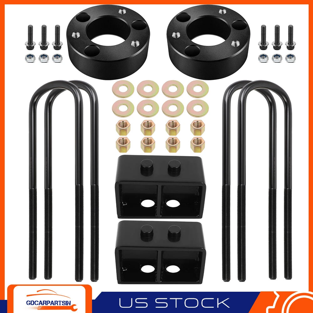 Front Spacers: After removing the wheel, remove any brake line and ABS line brackets, so you have enough slack in the lines. Use a wrench to remove the upper strut mount nuts and the upper ball joint nut. Strike the side of knuckle with a hammer to get the ball joint to separate. Using a wrench, remove the steering linkage nut. Remove the sway bar nut and bushing. Remove the two lower strut mount bolts and remove the strut from the vehicle. 3" Front & 3" Rear Leveling Lift Kit Fits Ford F150 2WD 4WD 2021 2022 2023 2024 Front Spacers: After removing the wheel, remove any brake line and ABS line brackets, so you have enough slack in the lines. Use a wrench to remove the upper strut mount nuts and the upper ball joint nut. Strike the side of knuckle with a hammer to get the ball joint to separate. Using a wrench, remove the steering linkage nut. Remove the sway bar nut and bushing. Remove the two lower strut mount bolts and remove the strut from the vehicle. Install the supplied bolts into the leveling kit spacer. These will act as the new studs when reinstalled. Bolt the spacer to the top of the strut using the supplied nuts. Rotate the strut 180 degrees and install it back into the truck. Re-insert the lower strut bolts. The lower mount bushing will rotate to correct the angle. Raise the lower control arm to raise the spindle while lowering the upper control arm to re-install the upper ball joint and Re-install the steering linkage. Complete the installation on the other side of the truck before reinstalling the sway bar nut and bushings. Rear Blocks: Support the rear axle with a jack and jack stands. Remove the brake and parking brake cables so there is slack in the lines. Remove the lower rear shock mount nut and bolt. Remove the factory rear U-bolts and discard them. Lower the axle to remove the factory block, or you can put new blocks on the factory block, get a new lift. Install the new rear block making sure the smaller side of the spacer is facing the front of the truck. Install the new supplied U-bolts and torque to factory spec. Complete the installation on the other side of the truck before reinstalling any brake or ABS lines. After 100 miles recheck torque to factory spec. Item Specifics Brand gdcarpartsin Manufacturer Part Number GD84703201car Lift Height 3" Front & 3" Rear Actual Spacer Thickness appr. 1.97"/ 50mm Note Lifting height is not exactly equal to spacer thickness Blocks Specs 5.12" Long x 2.48" Wide Included Hardware All Parts in pictures included Part Type Suspension Lift Kit Fitment Type Performance/Custom Placement on Vehicle Left Right Front Rear Warranty 1 Year Material Aluminum Steel Kit or Single Part Kit Kit Parts Included Strut Spacers Lift Blocks U-Bolts Instruction No Included Fitment For Ford F150 Drive Type 4x4 4WD / 4x2 2WD Color Black Interchange Part Number for 2021-2024 Ford F-150 2WD 4WD U Bolt Specs Square 12.8" Long / 3.15" Wide / 5.9" Threads / 9/16"-18 Quantity 2X Strut Spacers 2X Rear Blocks 4X U-bolts Shipping 1. Orders processed within 24 hours of payment verification.(if you want cancel orders or change address pls contact us within 6 hours after payment,or we are not responsible for shipping a replacement.) 2. We only ship to confirmed PAYPAL addresses. Your PAYPAL address must match your Shipping address. 3. Fast shipping:All our packages use USPS First Class/UPS/Fedex... Package Service 4. If you have not received your shipment within 15 days from payment , please contact! Return 1. You have 30 days to contact us and 10 days to return it from the date it was received. If this item is in your possession more than 7 days, it is considered used and we will not issue you a refund or replacement. There are NO EXCEPTIONS! 2. All returned items must be in the original packaging and you must provide us with the shipping tracking number, specific reason for the return, and item custom lable. 3. We will refund your full winning bid amount, upon receipt of the item in its original condition and packaging with all components and accessories included, AFTER both Buyer and Seller cancel the transaction from eBay. OR, you may choose to have a replacement. 4. Return shipping is to be paid by the Buyer Feedback We strive for 100% customer satisfaction! FEEDBACK IS VERY IMPORTANT TO US. We request that you contact us immediately BEFORE you give us neutral or negative feedback, so that we can satisfactorily address your concerns. Payment 1.We only accept PayPal. 2.Please do not use the PayPal note field to indicate us to ship to other address. The note there will NOT be read. If you want to change the shipping address, please contact us by eBay messages. 3.(if you want cancel orders or change address pls contact us within 6 hours after payment,or we are not responsible for shipping a replacement.) 4.Payment must be received within 10 days as auction ended or order might be delayed. Warranty 1,We stand behind every product we sell. 2,All of our brand new items come with a 60-Days money-back guarantee. 3,We define the item as defective only if it doesn't function as described. 4,It is the buyer's responsibility to understand the item description before bidding. 5,We will replace the defective items, provided that they are in stock within the warranty period posted with the listing and the buyer return the original item and pay for the S&H cost for the replacement. 6,We will refund the purchase price if the replacement is not available or buyer prefers a refund and send the original item back at his/her own cost. 7,Shipping & handling cost are not refundable. 8,Man-made damage by abuse or wrong operation is not covered by this warranty. 9,No product liability insurance is assumed. Shop Category Store Home Mirror Parts ◈ Vehicle Mirrors ◈ Truck Mirrors ◈ Mirror Glasses & Other Parts Brake Parts ◈ Brake Rotors ◈ Brake Pads ◈ Brake Rotors + Pads Mass Air Flow Sensors Oxygen Sensors Cooling Parts ◈ Radiators ◈ Radiator Hoses ◈ Cooling Fans ◈ 