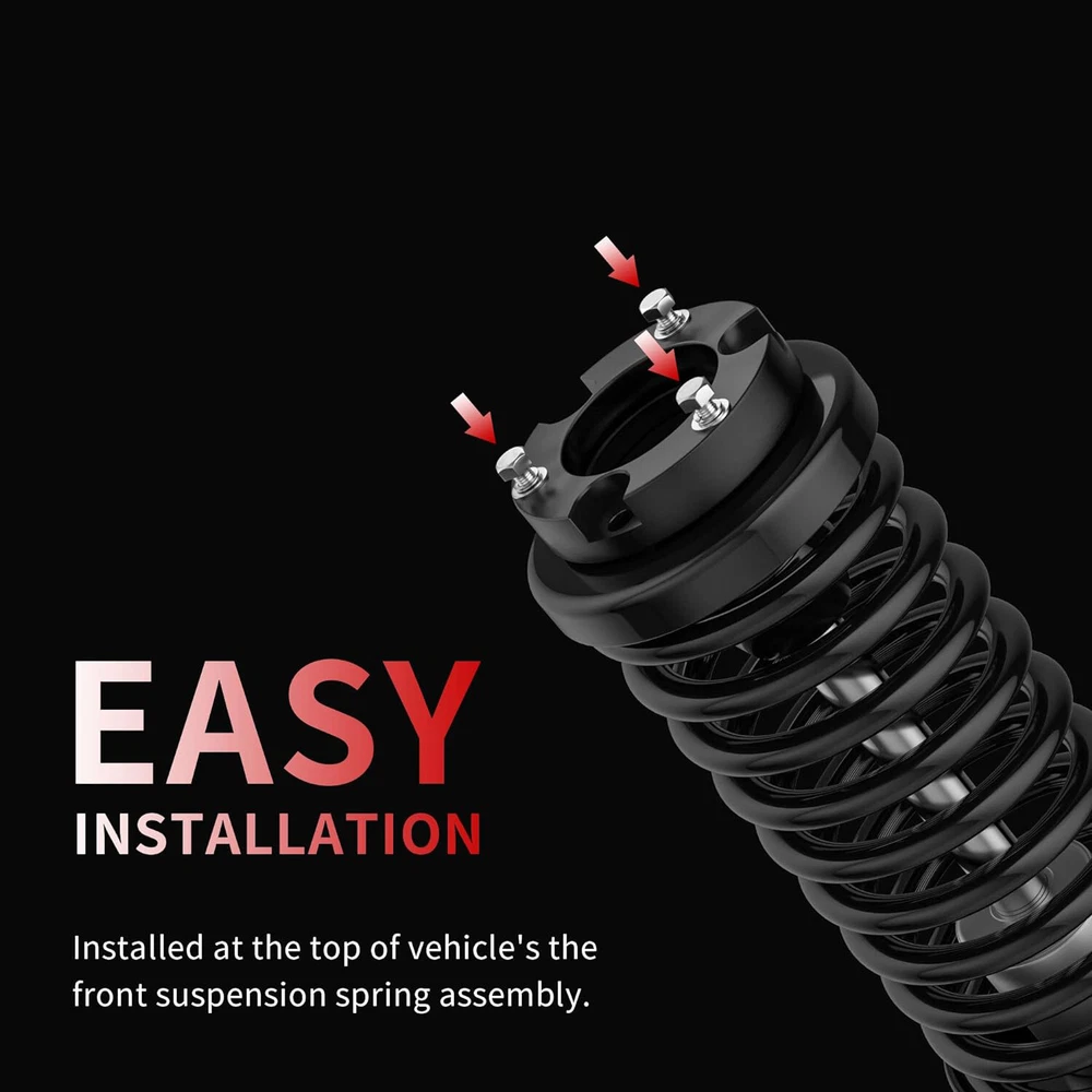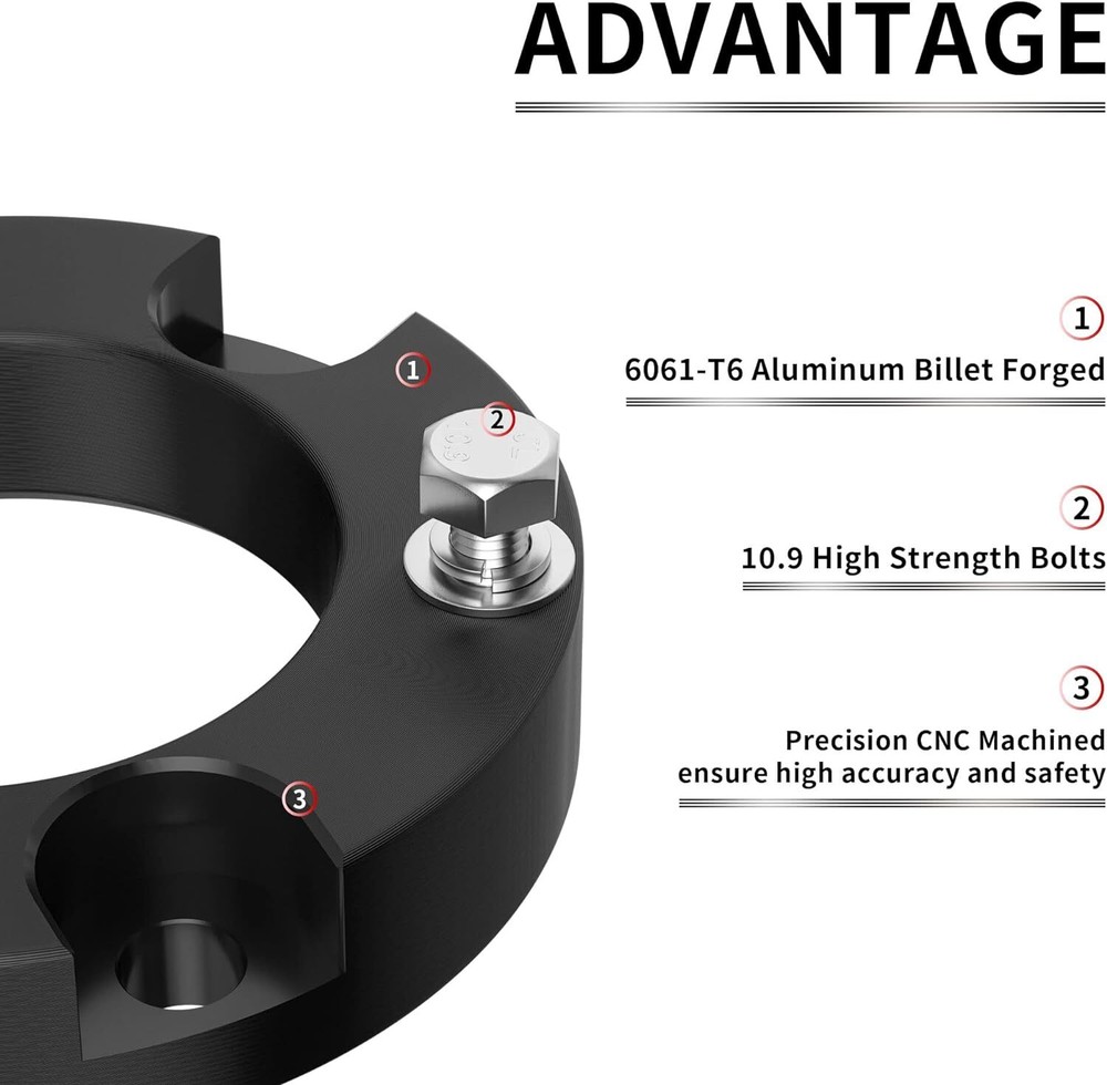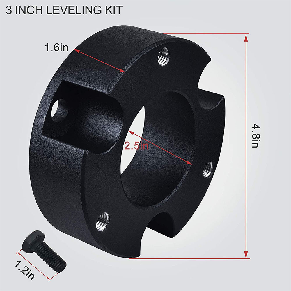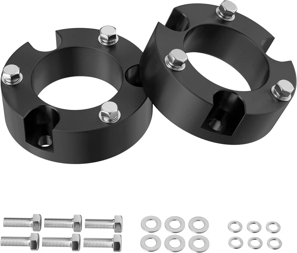 Fitment: 2005-2022 Tacoma 2WD 4WD (only fit 6 lugs) 2003-2022 4Runner 2WD 4WD (Don't Fit X-REAS) 2007-2015 FJ Cruiser 2WD 4WD Package List: 2 * Front Leveling Lift Kit Features: 【Increase the height of your truck】: It will raise the front of your truck by 3 inch , Because of suspension geometry,the ratio between lift height and kit thickness is not 1:1. 【Appropriate application】: Compatible with 2005-2024 Tacoma 2WD 4WD (only fit 6 lugs), 2003-2024 4Runner 2WD 4WD (Don't Fit X-REAS), 2007-2015 FJ Cruiser 2WD 4WD. 【Aggressive look】: Once you install leveling kit on your truck,it will give your truck a cool look.Accurate numerical control precision and high quality, ensure your driving safe and comfortable. 【Process and Material】: Forged from 6061-T6 aluminum alloy,CNC automatic processing,surface anodic oxidation and heat treatment,not only ensure high precision and stability,but also enhance the hardness and corrosion resistance of the material,The product itself is also equipped with 12.9 class studs. 【Warranty and Services】: All Leveling kits are covered by 2 years warranty,Please feel free to contact us with any questions regarding our products and services. Fitment: 2005-2022 Tacoma 2WD 4WD (only fit 6 lugs) 2003-2022 4Runner 2WD 4WD (Don't Fit X-REAS) 2007-2015 FJ Cruiser 2WD 4WD Package List: 2 * Front Leveling Lift Kit
