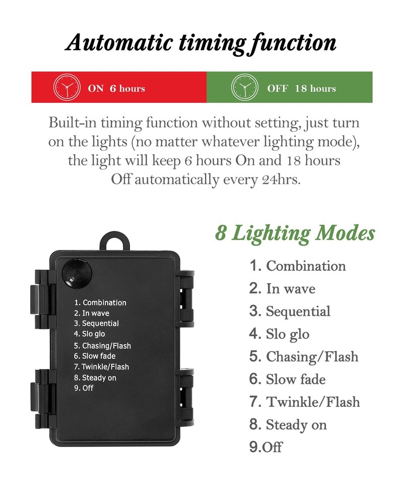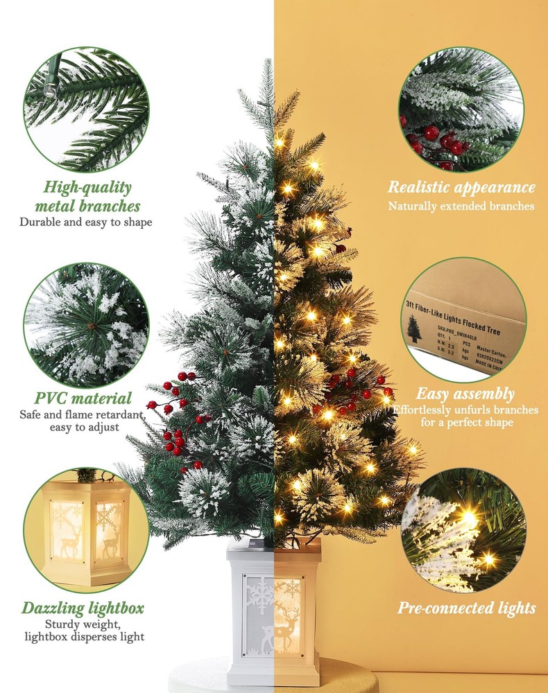 【Realistic Appeal】Our pre-lit artificial tree branches look incredibly realistic and lifelike. With elegant PVC foliage, it creates a atmosphere even without a white Christmas in the forecast. 【Multiple Lighting Modes】This 3FT Christmas tree comes with a 3*AA battery box (batteries not included) and features 8 lighting modes: Combination/In wave/Sequential/Slo glo/Chasing/Slow fade/Twinkle/Steady on. With 2700K LED bulbs, it stays lit even if one bulb burns out, designed for durability. Our tested and hypo-allergenic needles are fire-resistant. 【Timer Setting】The battery box with 78 LED lights on this Christmas tree string comes with a timer function that automatically turns off 6 hours after turning on and stays off for 18 hours. Set it to turn on at the same time every day, saving energy in the early morning and bringing a cozy effect at night, freeing your hands. 【Sturdy Pot Stand】For your convenience, the pot base of the 3-foot artificial tree is made of cement, with the tree sitting in an attractive clear lightbox that doesn't expose the cement, making it easy to place anywhere in your home. 【 Materials】This tree is made from sturdy, high-quality, low-allergenic, fire-resistant needle tips, with hundreds of individually molded "Feel Real" tree branches that create a full-bodied appearance and a lifelike look and feel. This tree is built to bring holiday joy for years to come.