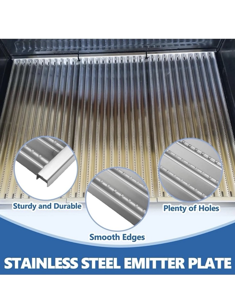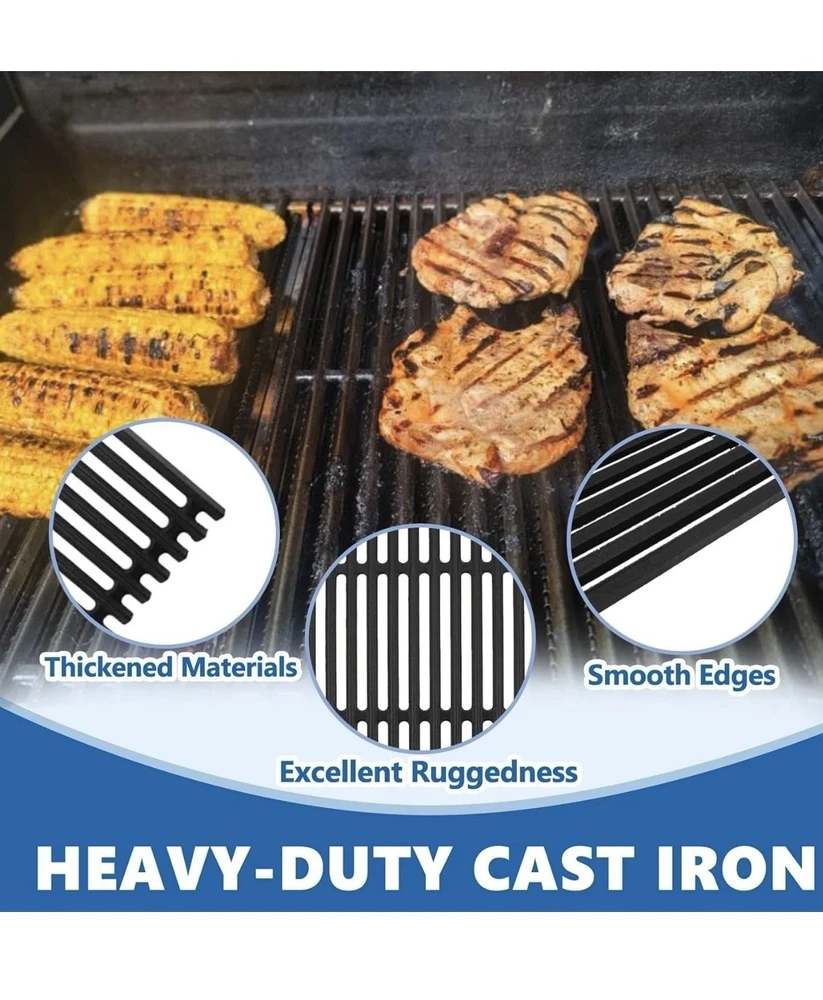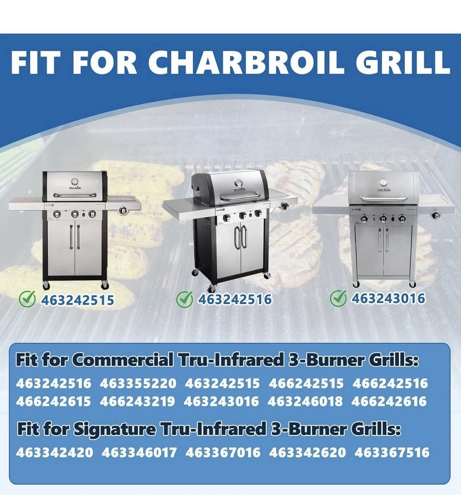 Charbroil Grill Grates Fits Charbroil Infrared Grill Grates 463242516 463242515 466242615 463243016 463367016 466242516 Charbroil Tru Infrared 3 Burner Grill Replacement Parts More features Perfect Compatibility: Replacement for Charbroil Commercial Infrared 3-Burner models (charbroil 463242516, 463242515 charbroil grill grates, 466242515 charbroil infrared grill grates, 466242615, 463243016, 463367516, 463367016, 466242516, 466242616, 463346017, 463246018 char-broil grill replacement parts). Also perfect for SmartChef TRU-Infrared 3-Burner (4463346017), Signature TRU-Infrared 3-Burner (463342620, 463367016), Medallion Series Modular Outdoor Kitchen Amplifire 3-Burner (463246018). *Replaces original parts: G466-0025-W1A, G474-0017-W1, G466-2400-W1, CHRG466-2400-W1.* Package Included: 3 premium stainless steel emitter plates, charbroil grill replacement parts and 3 heavy-duty cast iron cooking grates, char broil grill replacement parts. Directly replaces worn parts for optimal performance. Please check the size of your grill before ordering. Superior Heat Distribution & Performance: Emitter plate's multi-hole design ensures even heat dispersion across the entire grill surface. Significantly reduces flare-ups while locking in juices for more flavorful results. Easy Installation & Maintenance: Simple drop-in replacement – no tools required. Durable cast iron grates, charbroil tru infrared 3 burner grill replacement grates develop a natural non-stick patina over time. Clean effortlessly with a standard nylon grill brush.