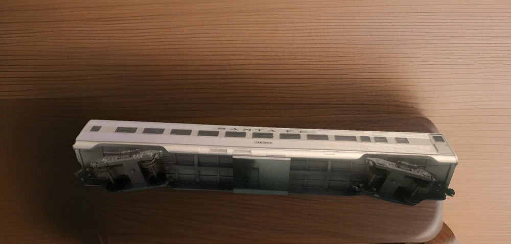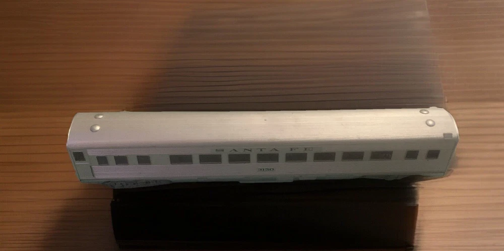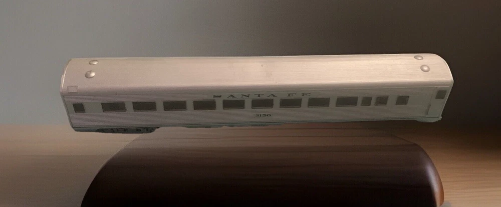 This is a vintage HO scale Santa Fe Streamline Passenger Observation car manufactured by Athearn in the 1980s. The car is made of plastic and is silver in color. It is a special edition and comes in an unopened box. The car is designed to resemble a panel truck and is part of the Streamline Passenger Observation series. It is recommended for adult collectors. The car features a train character family and is a vintage manufacture toy.