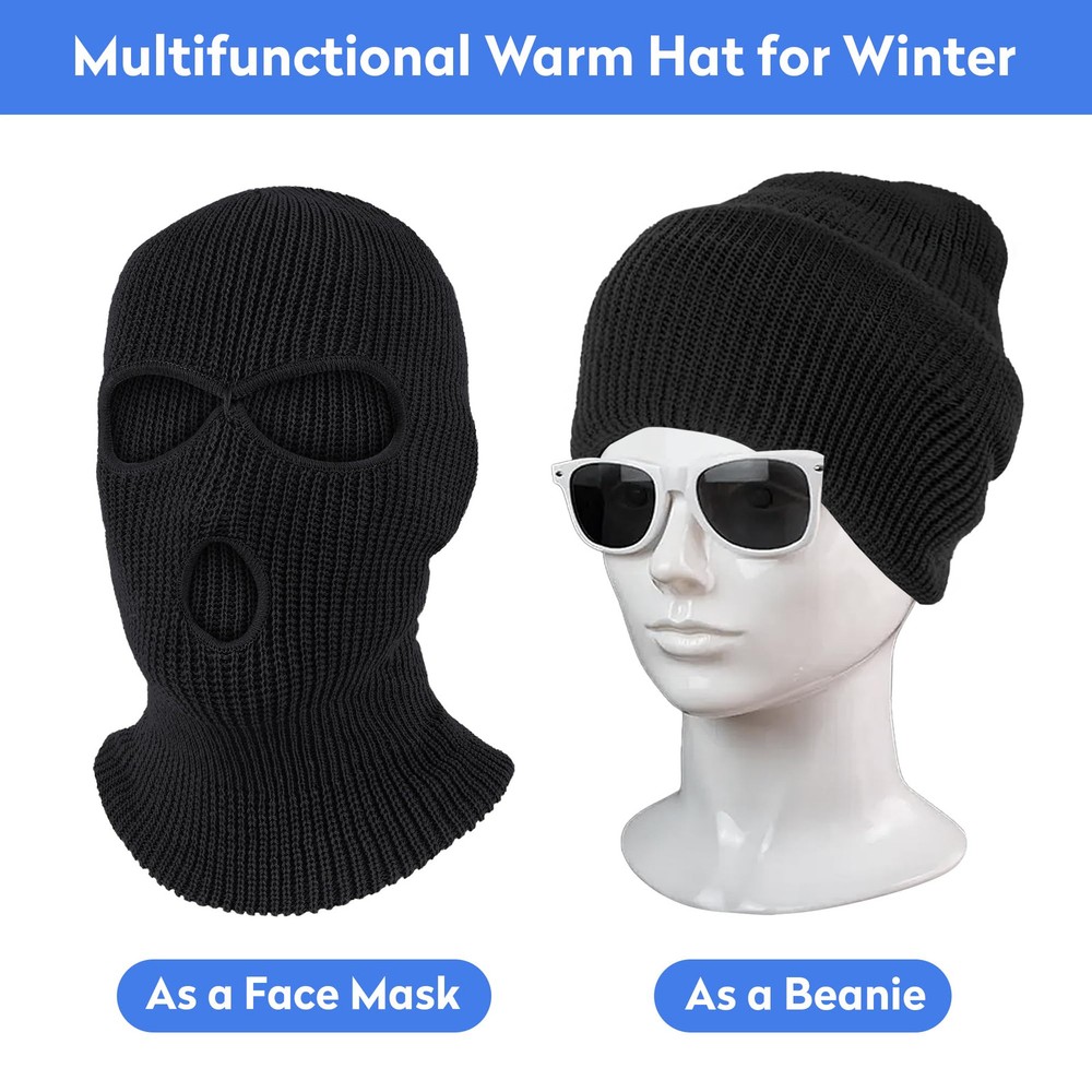 【3 Hole Design】- 1 in the mouth and 2 in the eyes.The face mask perfect covers your entire head. The seams on the eyes and mouth are able to keep cold air out and keep warm while providing the necessary protection when cycling, snowboarding and skiing etc. 【Soft & Elastic Material】- Made of soft and comfortable polyester fabric that keeps the face ultimate warm, Soft and Elastic, No over-tightening. Providing essential breathability.This winter say good goodbye to cold face! ! ! 【Multi-purpose Knitted Masks】- face mask is perfect for skiing, riding,climbing,camping,fishing,hunting and other various outdoor activitiesI, Suitable for motorcycling,running,climbing,hiking,tactical training etc. Protect your face from the cold or strong sun in all directions. 【Ideal Gift】- PERFECT for Christmas gift and birthday gift.It's an ideal present for your family,friends,yourself,your brother,nephew,husband,father,mather,sister,friends,colleague,boyfriend, girlfriend,especially for those who love skiing,motorcycle riding,go-karting or mountain biking. 【More Colors】- More than 12 colors to choose from,classic black,lovely pink,bright fluorescent yellow or green,bright red...Show off your own unique style! Designed for women and men, boys and girls.