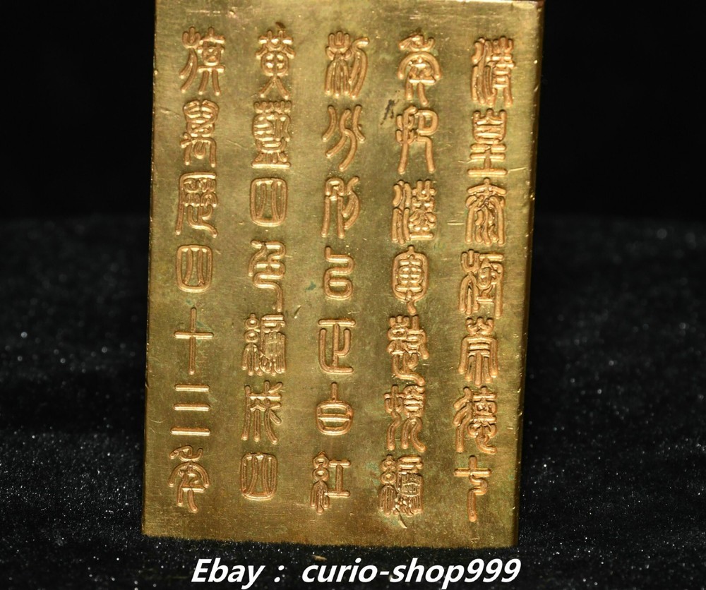 **** Welcome to our antique & Collectable Shop : Porcelain**** Description: Here is 3" China Dynasty Copper Gold Inscription Dragon Beast Imperial Seal Stamp Signet . It is in good condition, and was created by skilled craftsmen in traditional style with fine handcrafts.This is a great piece of valuable collection, a valuable personal alter or a very good present. the handwork is very fine with incredible detailling. Don't miss out this chance to get it.Wish you good luck! . Material : Copper Gold Size : Heigh t 3.3 Long 1.5 B readth 1.5 (inch) Condition Perfect Condition. Perfect, with no scratches, flaws or repairs. Weight: 1.2 KG----included the weight of packing materials Shipping cost to all over the world countries in Free Honored Customers: We are selling the collectibles products and crafts in Beijing ,China since 1993 and collected them all over the world all the time . In our shop the bronze sculpture, animal, vase, urn, flowerpot,Incense Burner.Table chair sets. Militaria goods. buddha statues, Bodhisattva Statues, Buddhist Ritual Items etc is our speciality .Many of the items we sell come from our own personal collection and have been in our family for a very long time .My great-grandfather was the first in this family to start collecting art & antiques when he still lived in San Xi and Tibet around 1922 ,some of the paintings he once collected can now be seen in museums around the globe.We won't make money from t he shipping cost, if you dislike the item when you receive it,we can refund all of your money to you within thirty days. Please confidence for bidding . We recommend the combine shipping and offer you an big price discount if you order more items together ! 2024.10.3 四 号