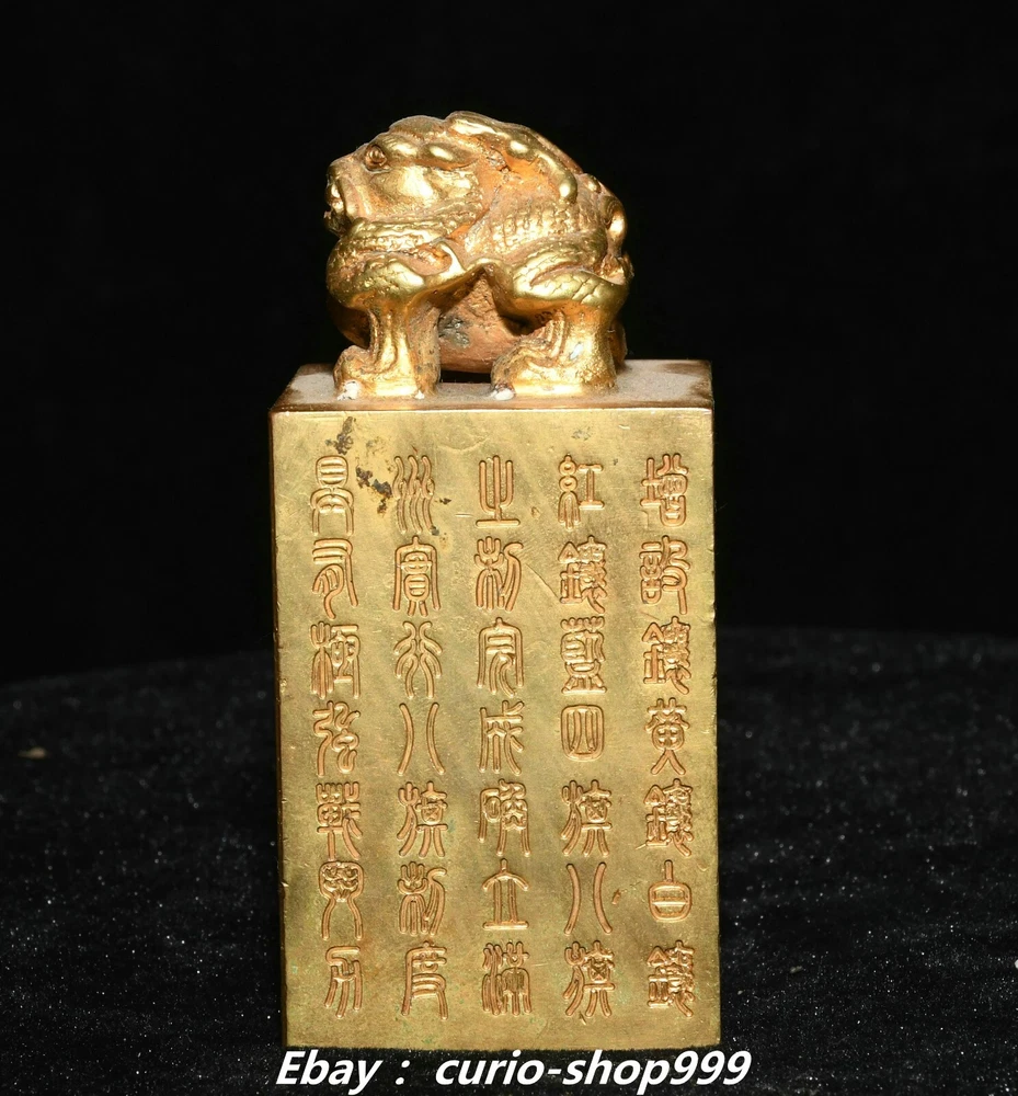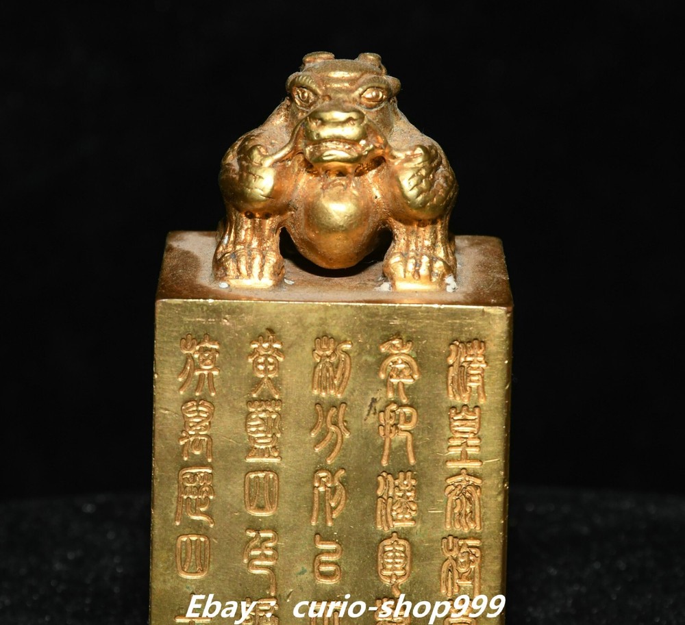 $ 136.763.5" China Dynasty Copper Gold Inscription Dragon Loong Beast Seal Stamp Signet