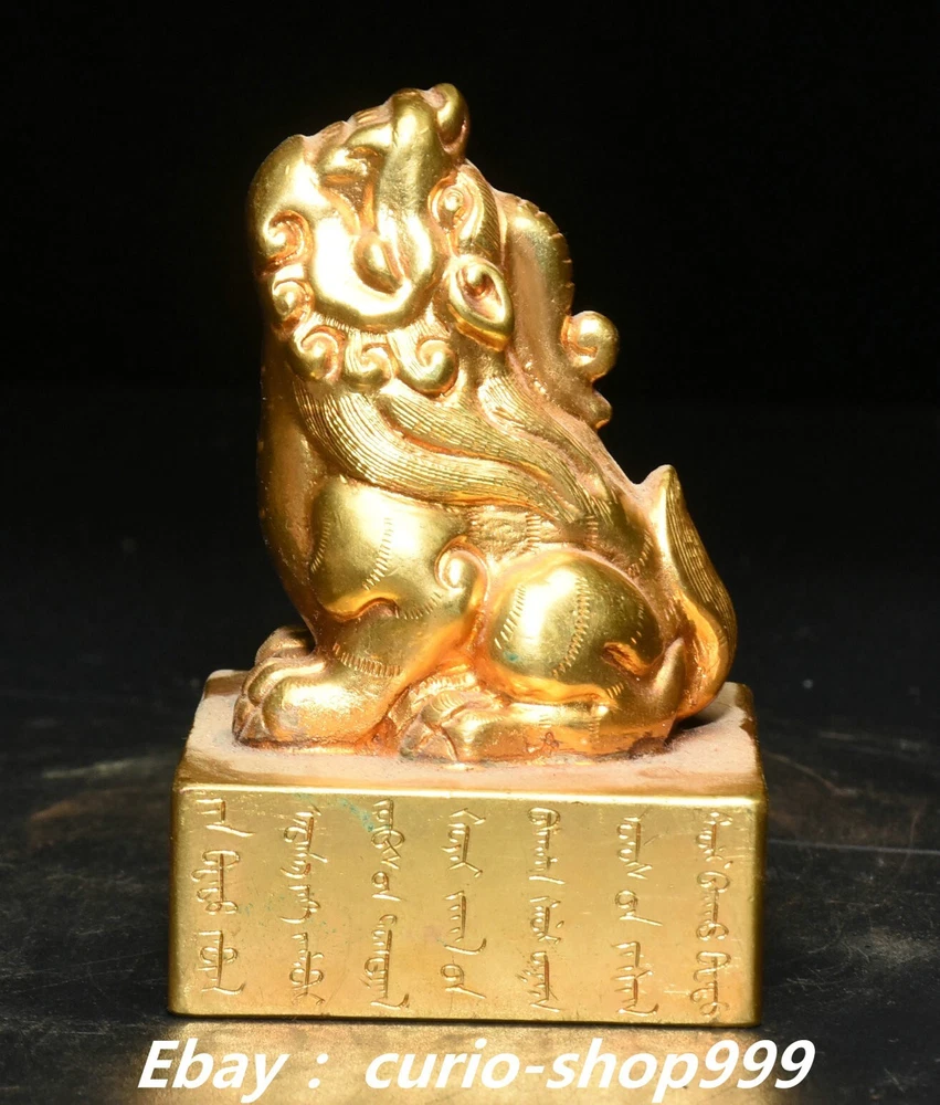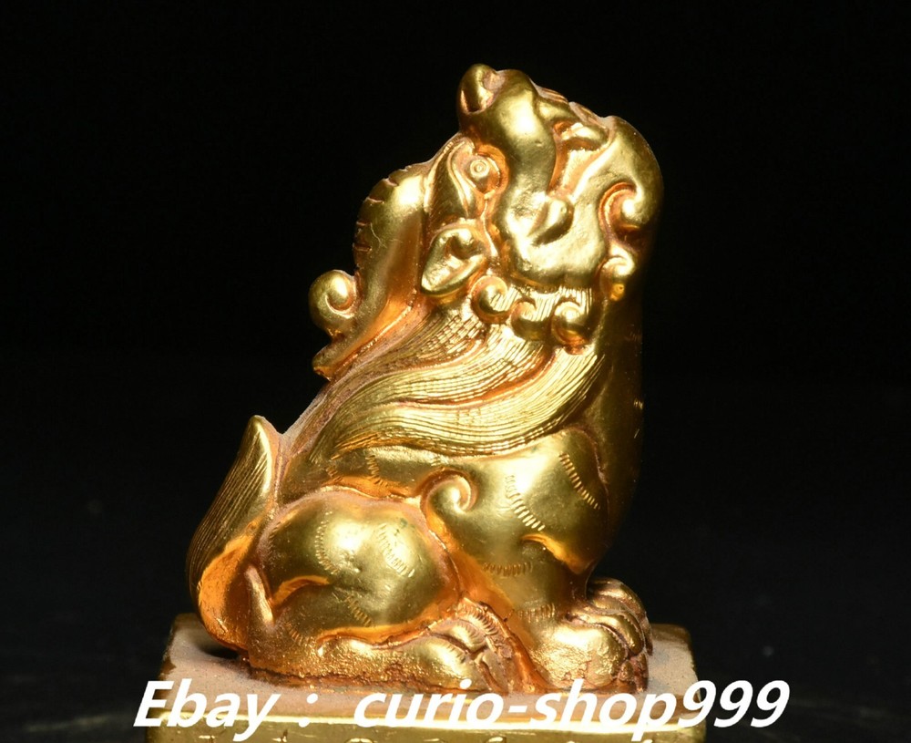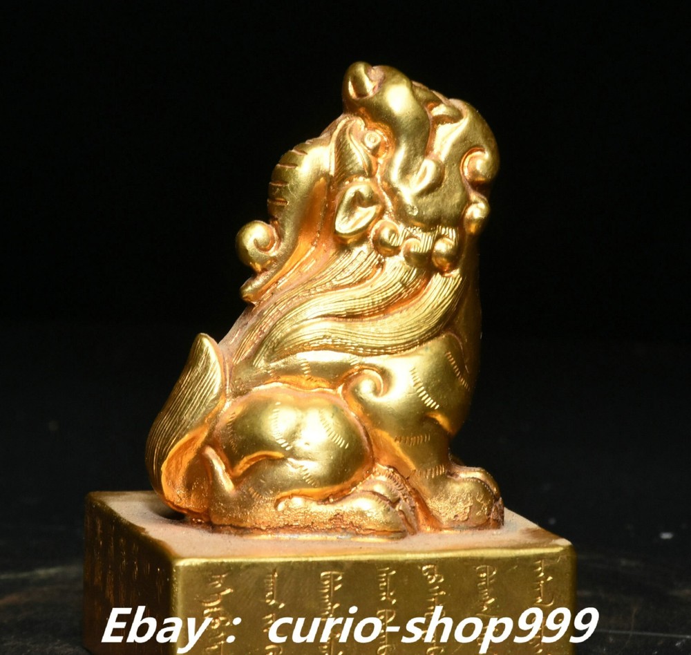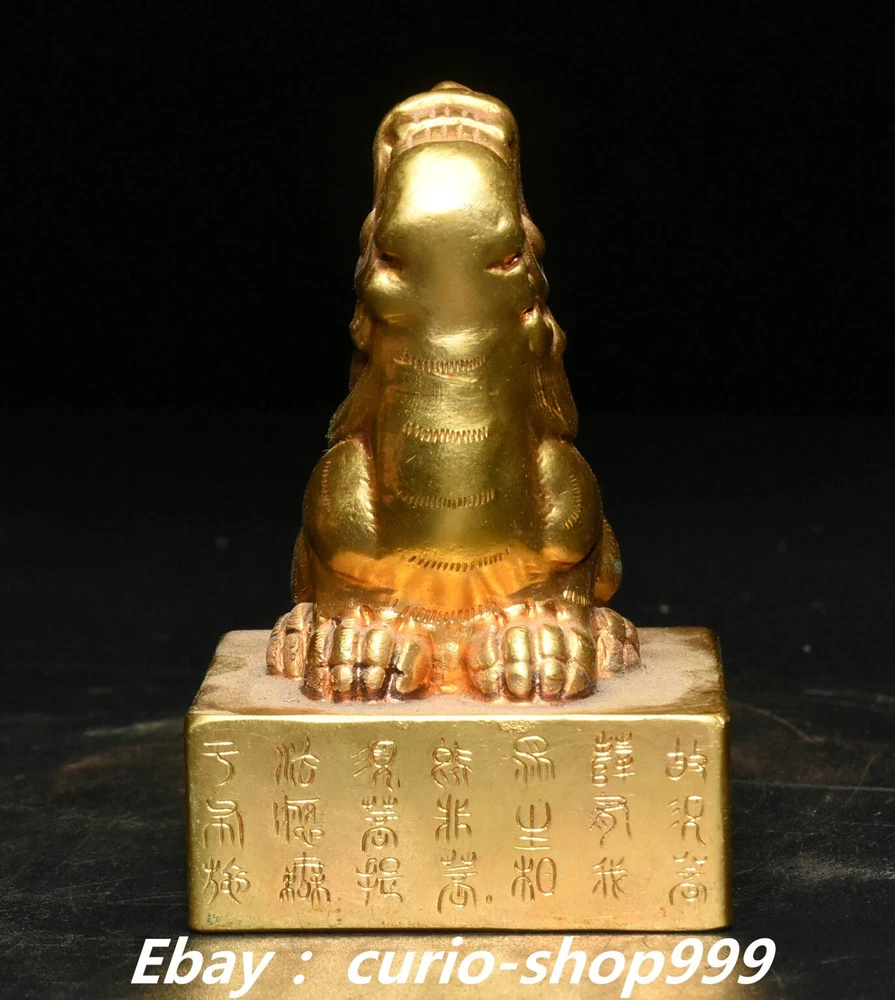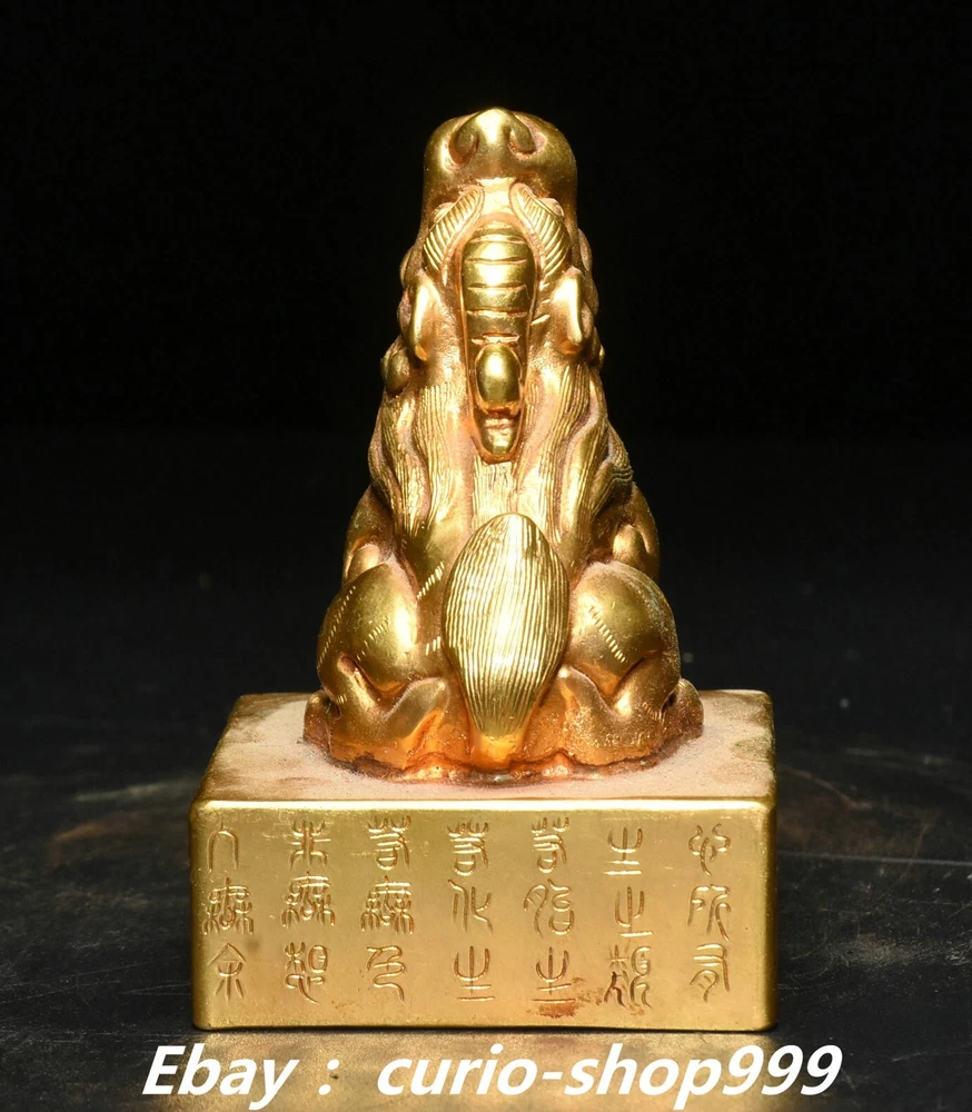 **** Welcome to our antique & Collectable Shop : Porcelain**** Description: Here is 3" China Dynasty Copper Gold Inscription Dragon Beast Imperial Seal Stamp Signet . It is in good condition, and was created by skilled craftsmen in traditional style with fine handcrafts.This is a great piece of valuable collection, a valuable personal alter or a very good present. the handwork is very fine with incredible detailling. Don't miss out this chance to get it.Wish you good luck! . Material : Chinese Style : Copper Gold . Sizec : Heigh t 3.1 . Long 2.0 . B readth 2.0 . (inch) Condition Perfect Condition. Perfect, with no scratc hes, flaws or repairs. Weight: 1.7 KG----included the weight of packing materials Shipping cost to all over the world countries in Free Honored Customers: We are selling the collectibles products and crafts in Beijing ,China since 1993 and collected them all over the world all the time . In our shop the bronze sculpture, animal, vase, urn, flowerpot,Incense Burner.Table chair sets. Militaria goods. buddha statues, Bodhisattva Statues, Buddhist Ritual Items etc is our speciality .Many of the items we sell come from our own personal collection and have been in our family for a very long time .My great-grandfather was the first in this family to start collecting art & antiques when he still lived in San Xi and Tibet around 1922 ,some of the paintings he once collected can now be seen in museums around the globe.We won't make money from t he shipping cost, if you dislike the item when you receive it,we can refund all of your money to you within thirty days. Please confidence for bidding . We recommend the combine shipping and offer you an big price discount if you order more items together ! 2024.12.01 四 号