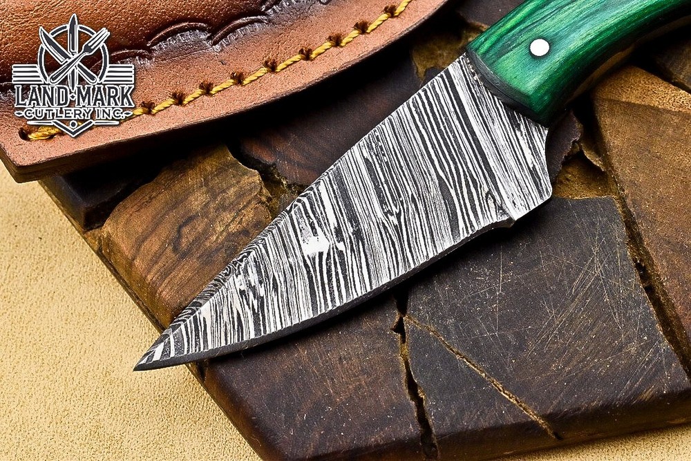 Custom Hand Made DAMASCUS STEEL HUNTING KNIFE WITH PAKKA WOOD HANDLE We offer a shipping discount for More then one purchased . And discount will be apply on combine invoice, Discount will not apply on separate payment. ITEM DETAILS OVER ALL LENGTH 3.0 inches long (Approx) HANDLE LENGTH 1.5 inches long (Approx) BLADE LENGTH 1.5 inches long (Approx) BLADE HARDNESS 58-60 HRC Which Holds The Sharp Edge For Long Time. HANDLE PAKKA WOOD COVER LEATHER SHEATH This Awesome custom made KNIFE has a nice hand forged with the combination of 4340 & 1080 steel. HOW OUR DAMASCUS IS MADE: All our Damascus is real and not just an acid etch. Damascus is a mixture of 1080HC and 4340 nickel carbon. You heat them up together and then fold the bar over and over to get the desired layers, ours are 396 layers. Then you burn the blade in acid, and it turns the nickel satin color and the high carbon turns blackish gray. This is how the layers are exposed to show the layers of the new steel created coined "Damascus". All Damascus is acid etched to show the layers. If you high polish the metal it will be shinny satin like all steels. Only after you burn the sides of the blade with acid do you see the layers of the two steels. Makes sense? After we make our knives we high polish the handles and put an edge on the blade. The high polishing buffs off the acid burned layer of the handle, and the blade edge is sharpened and the acid burned edge becomes satin. You can re-burn the tang of the blade near the handles and the edge of the blade and it will show the layers once more. All our knives are hand made, durable and unique ***** YOU WILL RECEIVED THE SAME KNIFE Qality Standards Our Damascus blades are made from high quality non-stainless steels which rival or exceed any Damascus blade made from the 10 series with 4340. Our Damascus combination has taken years to perfect and has been tested under a variety of application which will offer professional performance in categories of toughness, strength (lateral stress) and edge honing and holding ability. In a 5 spot Rockwell test our blades will average near or close to 58 which offers a perfect balances between its toughness and strength.Our blades due to carbon content need to be regularly treated with wax and/or 3 in 1 oil to maintain its superior quality. Questions if you have any question feel free to send us message we aim to answer all questions within 24 hours Feedback If you are not satisfied with our service please contact us before leaving any negative or natural feedback. We will resolve all issues as quickly as possible. Disclaimer We are not responsible for any injuries associated with the use of our tools. Our products are intended for legal use only by responsible buyers. Therefore, we will not sell our products to anyone under the age of 18. Before bidding please check your country laws as some countries Custom don't allow this. If your purchase is held by Custom Authorities in your country/State we will not be responsible for that and no refund will be issued Shipping We offer a 20% shipping discount for More then one purchased . And discount will be apply on combine invoice, Discount will not apply on separate payment We ship within 24 hours after receiving complete payment but this can be delayed due to week ends or Governments and Religious Festivals . . This is beyond our control and we apologize for this inconvenience. Precautions Our Tools are very sharp so open and use them very carefully We are not responsible for any injuries associated with the use of our tools Tips to Care knife 1. NEVER STORE YOUR KNIFE FOR LONG TIME IN LEATHER SHEATH. 2. LEATHER CAN ABSORB WATER, WHICH WILL RUST THE KNIFE. 3. ALWAYS CLEAN THE BLADE AFTER USING WITH OIL OR WAX