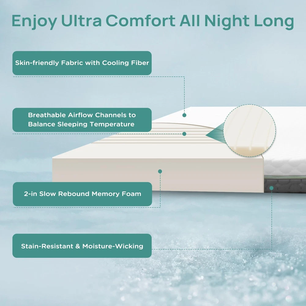 【Re:flip Topper with Soft and Firm Options】- Re:flip Twin Memory Foam Mattress Topper provides a perfect balance of softness and support for deep sleep. One side features 1-inch firm foam with varied wave-shaped cuts, providing ample body support effect. The other side features 2-inch soft memory foam, better conforming to body curves to relieve pain and pressure 【Ergonomic 5-Zone Design】- This mattress topper twin features a ergonomic 5-zone design, achieving genuine pressure relief and body support. As the body parts are interconnected, we have categorized the product into five areas: Neck & Shoulder Stress Relieving, Lumbar Vertebrae Support, Hip & Thigh Contour, Knees & Calf Pressure Distribution, and Feet Stretching. Adapts to body pressure, providing excellent support and relaxation 【Premium Slow Rebound Memory Foam】- Our twin mattress topper features premium CertiPUR-US certified slow rebound memory foam. Its high-density ensures sufficient support and optimal soft comfort, allowing you to sleep soundly throughout the night 【2-Sided Breathable Washable Cover】- Our innovative dual-sided cover offers more choices for matching. Made of skin-friendly, breathable fabric certified by OKEO-TEX. The deep gray side is dirt-resistant while the white side is versatile. With a 3-sided zipper for easy removal and washing, and 4 adjustable corner straps to secure the topper. You can freely choose which side of the core to pair with your preferred cover for a refreshing night's sleep 【Warm Tips】- Please be careful to cut and remove outer plastics without scratching the topper during unpack process. It's highly recommended to leave the foam for 24-48 hours until it regains its twin size and shape again. There may be a slight foam odor when you open the package, no need to worry