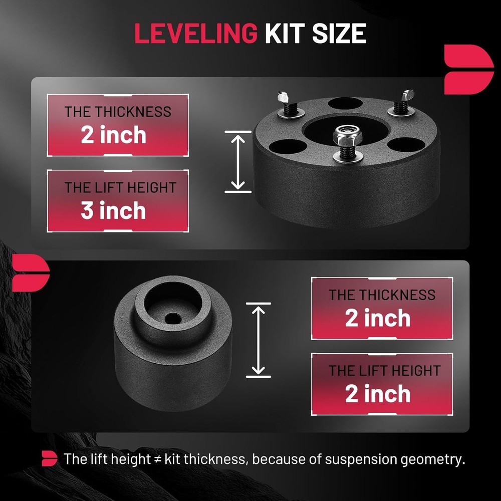 Just installed these leveling kits on my Ram and wow, what a difference! The aerospace-grade aluminum feels super sturdy, and the 3-inch front lift with 2-inch rear gives my truck that perfect aggressive stance without being too extreme. Super easy to install and totally transformed the look while maintaining a smooth ride. Definitely recommend for anyone wanting to level up their Ram!