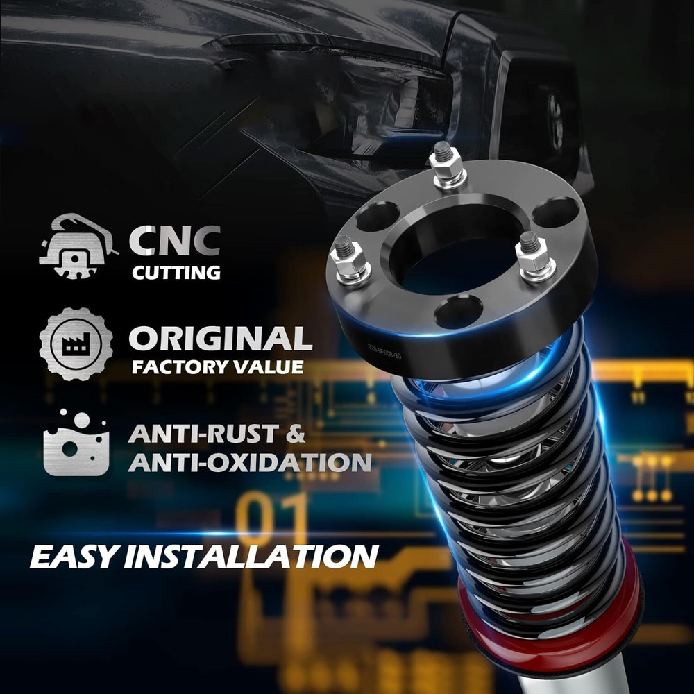 Fits: 2007-2019 Silverado 2WD/4WD 2007-2019 GMC Sierra 2WD/4WD 2007-2019 Yukon 2wd/4wd 2007-2019 Tahoe 2wd/4wd 2007-2019 Suburban 1500 2wd/4wd 2007-2013 Chevy Avalanche 2wd/4wd **2019 Old Body Style Only** 【Increase the height of your Car】: These leveling kit will raise the front of your truck by 3 inch , Because of suspension geometry,the ratio between lift height and kit thickness is not 1:1. 【Appropriate application】: Compatible with 2007-2024 Silverado 1500(2WD/4WD), 2007-2024 Sierra 1500(2WD/4WD) 【Aggressive look】: Once you install it on your truck,it will give your truck a cool look.Accurate numerical control precision and high quality, ensure your driving safe and comfortable. 【Process and Material】: Forged from 6061-T6 aluminum alloy,CNC automatic processing,surface anodic oxidation and heat treatment,not only ensure high precision and stability,but also enhance the hardness and corrosion resistance of the material,The product itself is also equipped with 12.9 class studs. 【Warranty and Services】: Leveling kits are covered by 2 years warranty,Please feel free to contact us with any questions regarding our products and services. Note:It will raise the front of your truck by 3 inch , Because of suspension geometry,the ratio between lift height and kit thickness is not 1:1. Fits: 2007-2019 Silverado 2WD/4WD 2007-2019 GMC Sierra 2WD/4WD 2007-2019 Yukon 2wd/4wd 2007-2019 Tahoe 2wd/4wd 2007-2019 Suburban 1500 2wd/4wd 2007-2013 Chevy Avalanche 2wd/4wd **2019 Old Body Style Only** Package: 2 x Front Leveling Lift Kit