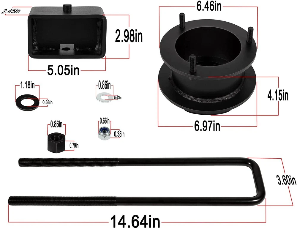 3" Front & 3" Rear Full Lift Kit forDodge 1994-2001 Ram 1500 4WD 2WD Suspension Fitment: For 1994-2008 Dodge Ram 1500 2WD, For 1994-2013 Dodge Ram 2500 2WD, For 1994-2012 Dodge Ram 3500 2WD . (Does NOT fit Mega Cab models) Detail: 3-Bend, One-Piece, Rear Steel blocks with a built in taper for Optimal Ride Quality. 5.05" Long x 2.45" Wide Steel Blocks. Round U-Bolts 11.22" Length, 4.4" Width, 3.92" Thread Length, 9/16" Threads. Allows clearance for up to 33" tires. Easy To Install: No Special tools required. No spring compressor needed. The front spacer kit is placed right above your coil spring and installs with simple hand tools and a jack. The rear lift blocks are also a very easy install and are placed right between your axle and leaf pack. The rear also comes tapered to maintain your drive angle as well. Estimated install time is about 2-4 hours. Material: Heavy-Duty Steel Construction: Rugged and durable steel process, finished with non-slip wax to protect from rust and corrosion for long-lasting reliability. Precision HD Plasma CNC cut and Powder Coating Performance Front Spacers. Retains factory smooth ride and will work with stock shocks. Advantage: Raise the overall height and obtain extra inches of ground clearance. Help the vehicle's off-road performance by avoiding the obstacles that can be found on the ground. Retains factory smooth ride and will work with stock shocks This is a 3-inch front and 3-inch rear lift kit that can raise the overall height and obtain extra inches of ground clearance. This helps the vehicle’s off-road performance by avoiding the obstacles that can be found on the ground. Package Included: Full Kit Suspension Lift Kit 1. Payment methods accepted: Payoneer. Our payoneer account allows you to pay by credit card, debit card and your paypal balance. 1. We ship items to Your ebay address.Please make sure your ebay address is correct before you pay, cause it cannot be changed once the order shipped out. 2. All of our items are shipped from our Warehouse in USA. 3. Please feel free to contact us by ebay "Contact member" if you cannot get your order on time. 1. Return to us within 60 days from the delivery date for exchange or refund. Refund will be given as Money back or item exchange (buyer's choice). 2. Return shipping fee is the responsibility of buyer unless the return is a result of our mistake. And all NON-seller mistake returns for refund are subject to 20% re-stocking fee. 3. If you need return, please contact our customer service representative, let us know the detailed problem and send us some pictures for confirmation. 1.Please contact us via ebay using"Contact member". We will respond within 24hours or less.Thank you for your understanding. 2. We maintain high standards of excellence 5-stars and strive for 100% customer satisfaction! Positive Feedback is very important to us. 3. Pls contact us first before you leave Neutral or Negative feedback. We will do our best to solve the problem, thanks!