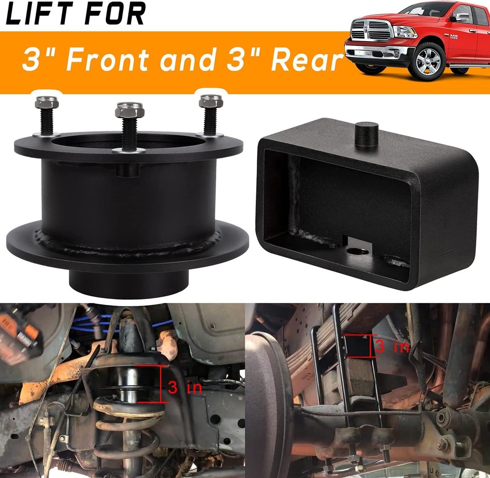 Warranty: 2 Year Feature: Durable Number of pieces: 30 Color: Black Type: 3" Front &3" Rear Suspension Full Lift Kit Manufacturer Part Number: Does not apply unit quanlity: 30 Fitment: For Dodge Ram 1500 2500 3500 4X2 2WD Brand: KE-Auto gtin13: Does not apply Material: Steel Fitment Type: Direct Replacement UPC: Does not apply Singie item or set: Set