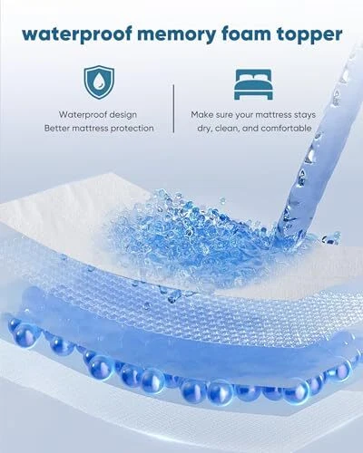 Return Policy Fast Delivery Trusted seller 3 Inch Gel Memory Foam Mattress Topper Queen Size,Waterproof Mattress Pad Cover for Pressure Relief, Bed Protector Topper with Removable ,Soft & Sleep Peacefully Product Description 【Deluxe Waterproof Mattress Cover】: The new waterproof layer makes the original mattress cover breathable, cool, durable and waterproof for more special situations. Zipper closure, easy to disassemble and wash, healthier sleep. 【Gel Memory Foam】:Provided by high-density memory foam and gel beads that provide good support while absorbing heat and cooling, helping to relieve common pressure points, prevent you from falling into the foam, and improve your sleep experience. 【Double Anti-Slip】:The back of the cover plate is evenly distributed with fine anti-slip particles, and four adjustable elastic bands are added to increase friction and prevent displacement. 【Satisfaction Guarantee】:We offer a 365 night 100% satisfaction . 10 -Year for Quality-Related Issues. If you have any question, please contact us and We will provide 100% satisfactory after-sales service. 【Warm Tips】:Due to vacuum packaging,Allow 24-48 hours for new foam smell to dissipate and fully expanded. Low temperature may need more time, find a suitable temperature(78℉) will shorten the time. Shipping Returns Payment Shipping Shipping is FREE to all addresses other than APO/PO boxes in the lower 48 states. All our stock ships from US-based warehouses. Shipped via USPS or UPS (depending on location and package weight) Unless stated otherwise, all orders will ship within 24-72 hours of your payment being processed. Check our feedback to see the great reviews of FAST shipping we offer. Returns Seller does not accept returns Payment We currently accept payment via eBay managed payments only. Once payment is cleared, we will dispatch your shipment within 1-3 business days. Please refer to the "Shipping" tab for more information regarding shipping speed to your destination.