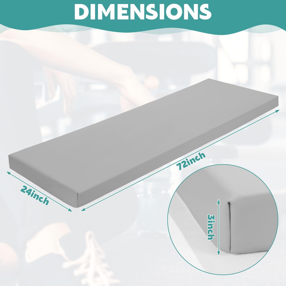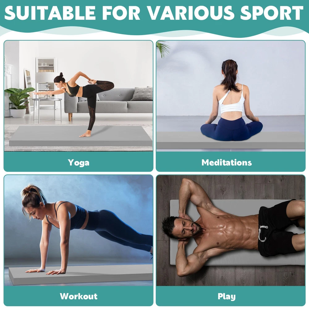 3-Inch Extra Thick: The fitness exercise mat filled with 3-Inch thicken 50D sponge, offer superior cushioning and long-lasting support for body. This 3 inch yoga mat perfect for people who need an extra cushioning to protect joints, hips, hands and knees. Perfect Size: Exercise mat size with 72''L x 24'' W, Thickness: 3 inch, suitable for all purpose fitness mat in the studio or at home. Non-slip: The fitness exercise mat is made of soft PU leather cover, non-slip and durable. You can perform any vigorous movement without sliding on the floor. Easy to Clean: Gymnastics mat is easy to keep clean and neat, you just need wipe it with clean water. Versatile and Convenient: This fitness yoga mat with carrying handle, can be used for any yoga pose, pilates, meditation, stretching, calisthenics, planks or other cardio workouts.