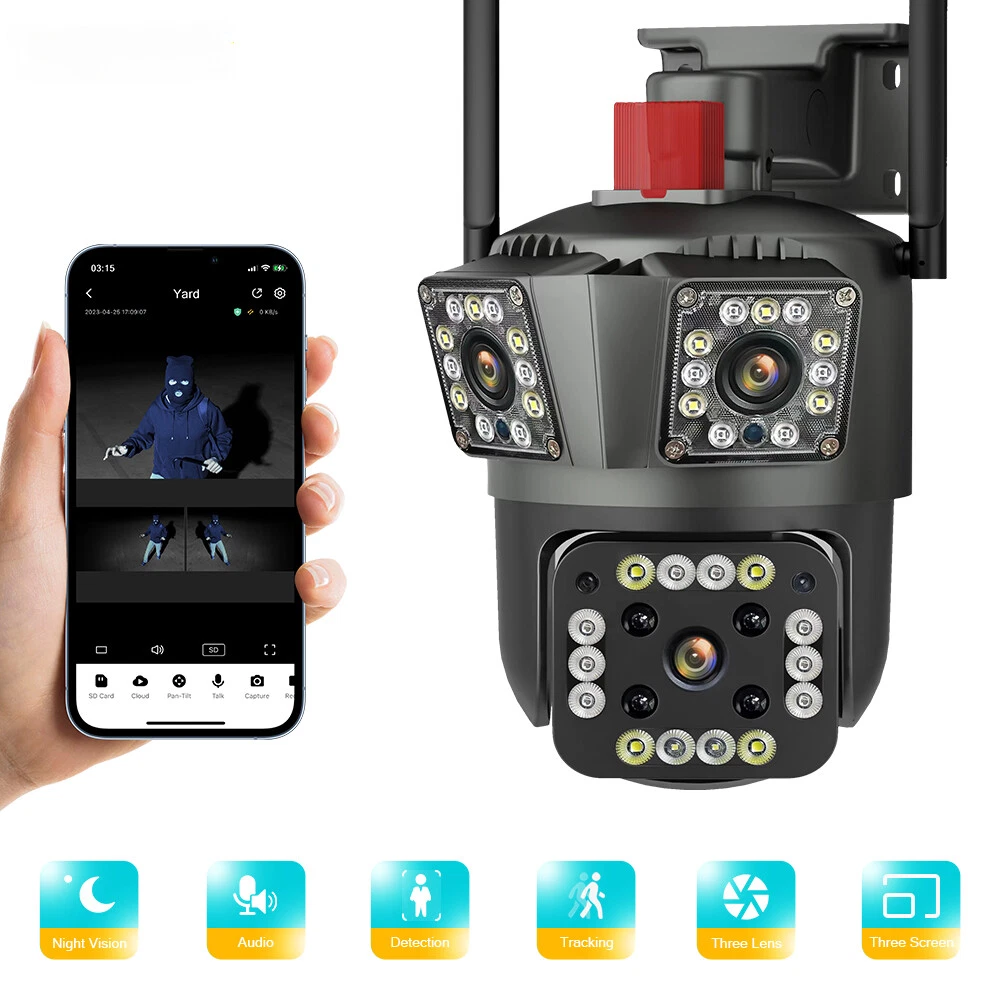 Smart APP: IPC360 home Sensor: CMOS AI Functions: Motion Detection Manufacturer Warranty: 1 Year Model: SmartCam Certification: CE,FCC resolution: 3+3+3MP Color Mode: Color Supported Operating Systems: No Color: Black Lens (mm): 3.6mm Operating Sound Rating: 90 dB Brand: KEPEAK Power Source: US Plug Vertical: 110 ° Supported Mobile Systems: Android,IOS Smart Home Protocol: Wi-Fi compression: H.264 High profile Type: Surveillance Camera Location: Outdoor & Indoor High Definition: 8.0 Megapixels Installation: Ceiling,Side,Normal,Wall Mounted Features: Automatic Motion Tracking, IP Intercom, Mini Surveillance Camera, Motion/PIR Activated, Night Light, Night Vision, Outdoor/Weatherproof, Pan-Tilt Zoom, Plug in, Smart Light, Voice Prompts, Wall Mounted, Waterproof, Wi-Fi Audio Output: Two Way Audio Minimum Illumination(Lux): 0.01Lux Surveillance Technology: CCTV Movement Range(Pan): 0°-360° Style: Dome Camera Power parameters: 5V 1A Maximum Resolution: 1920x1080 Year Manufactured: 2024 IR Distance(m): 8-10 meters screen: 3 screen Number of Channels: 2 TF Card: 128G TF Card Megapixels: 9MP Digital Zoom: 4X Input: built in MIC& Speaker Shell Material: Plastic Connectivity: Wi-Fi Horizontal: 355° Number of Cameras Included: 1 Power Supply(V): 12V Mobile app: IOS & Android