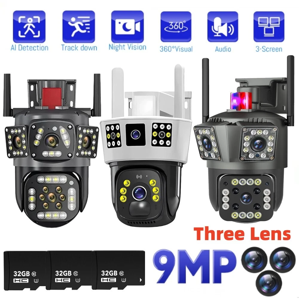 3 Lens Camara De Seguridad Para Casa Exterior Vision Nocturna Camaras Vigilancia