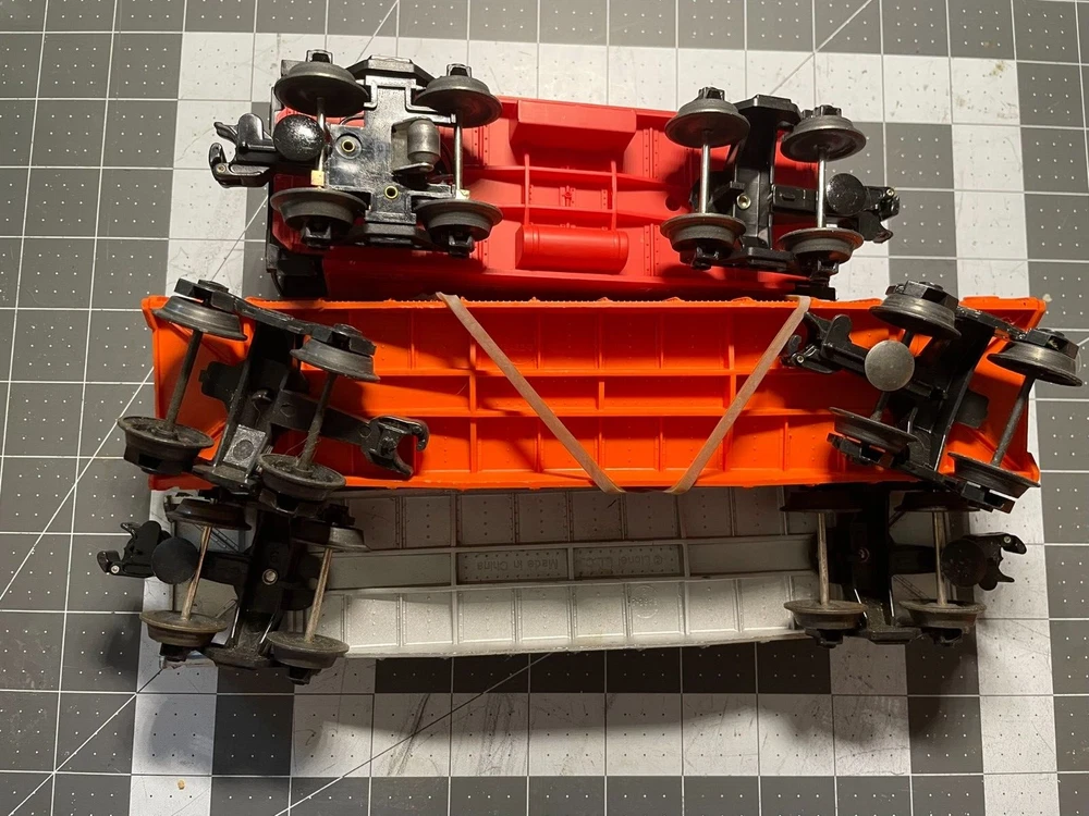 3 Lionel cars - Rio Grande, Pennsylvania Gondolas & a lighted caboose