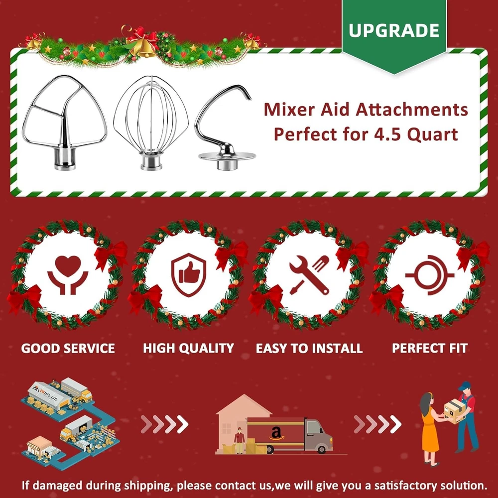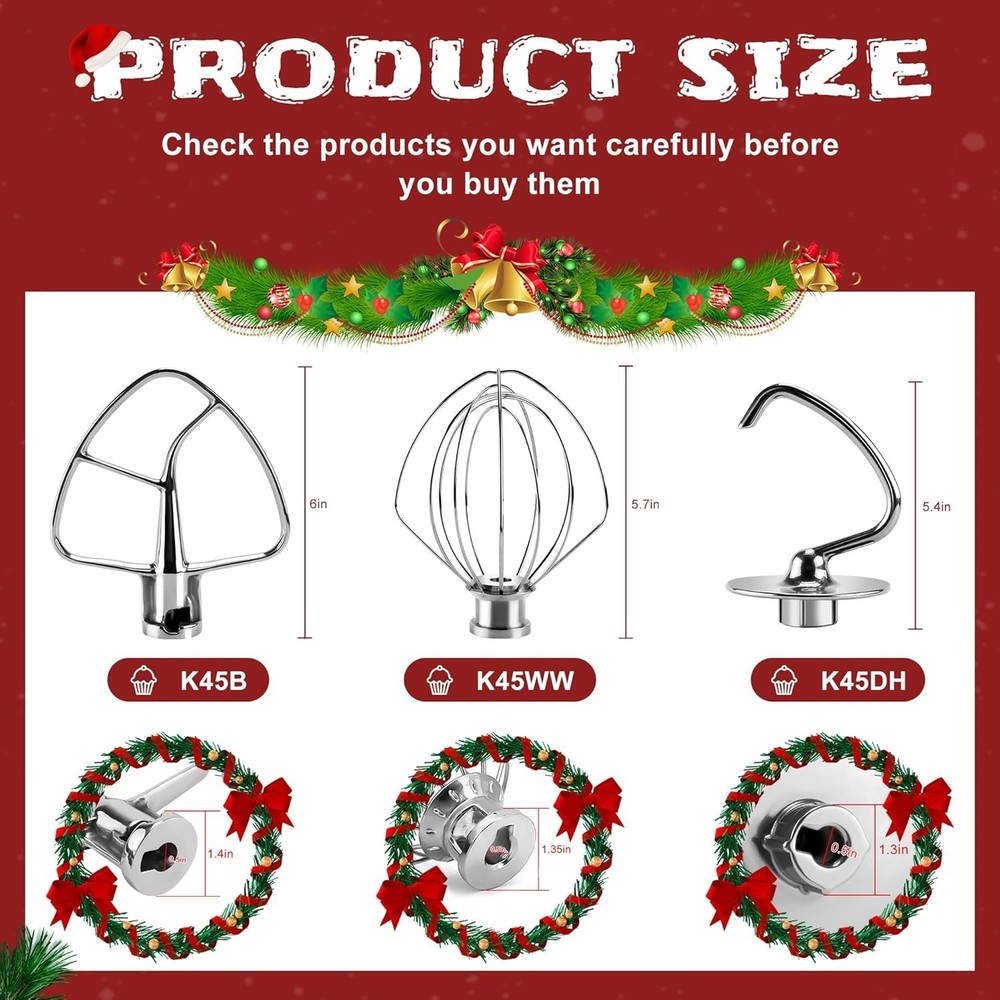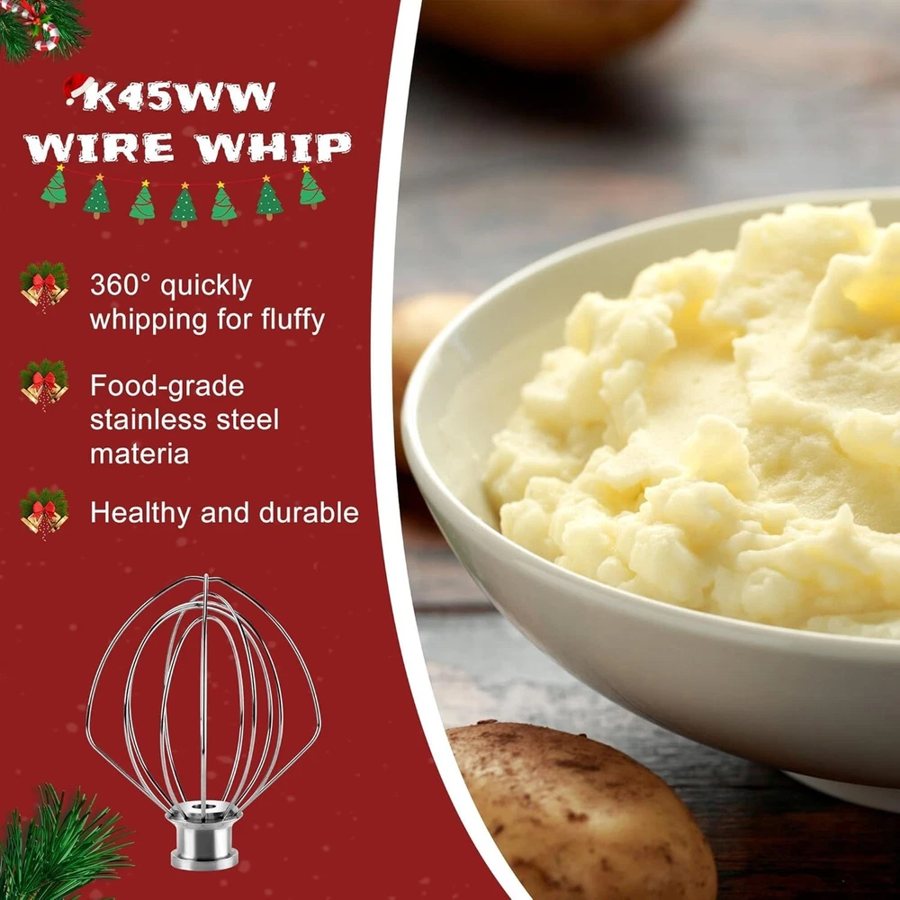 Capacity: 4.5 qt Number of Items: 3 Material: Stainless Steel gtin13: Does not apply UPC: Does not apply Item Depth: 4.7 in Components Included: Dough Hook, K45DH Coated Dough Hook, K45B Coated Flat Beater, K45WW Wire Whip Item Diameter: 7.5 in Appliance Capabilities: Mix, Whip, Beat, Blend Number of Settings/Programs: 1 Model: Kitchen Mixer Accessories Color: Silver Features: Replaceable, Dishwasher Safe, Easy Clean, Multipurpose, Durable, Efficient Brand: Unbranded Number of Speeds: 1 Item Weight: 2.18 lbs Appliance Uses: Dough, Bake, Whipped Cream, Cookies, Pastries, Pizza, Muffins, Waffles, Frosting, Meringue, Bread, Mashed Potatoes Finish: Glossy Product Dimensions: 4.7 X 7.5 X 4.7 Inches