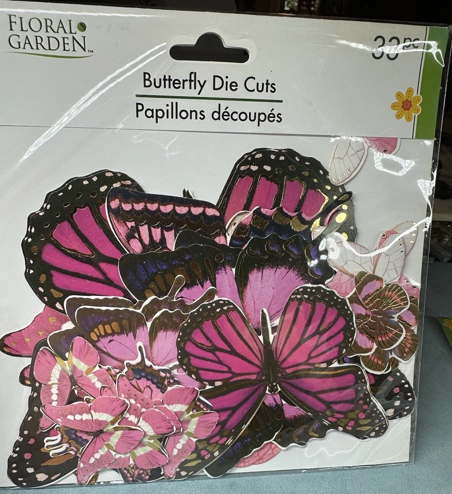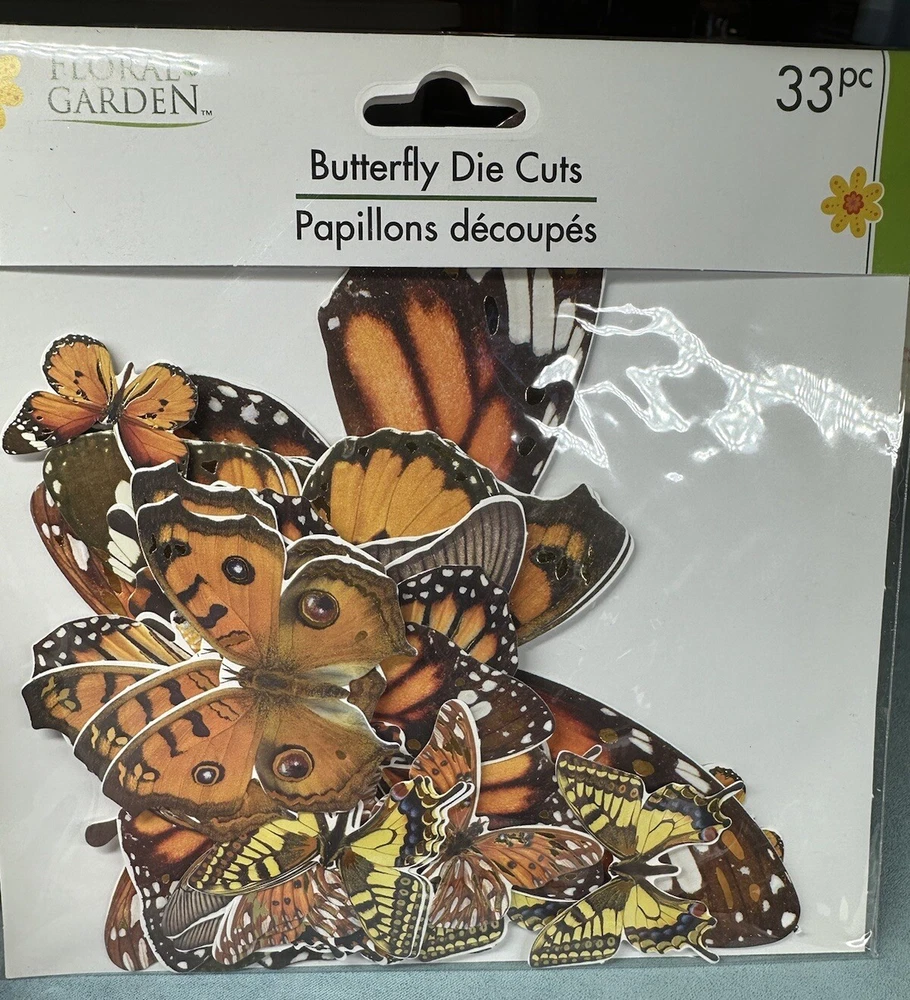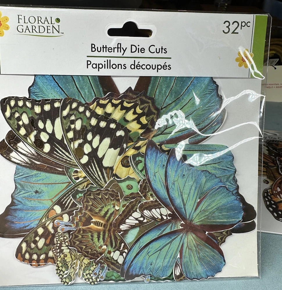 These are 3 new packs of butterfly die cuts that are perfect for scrapbooking and crafts. The orange and pink packs each have 33 pieces. The blue pack has 32 pieces. The smallest is 1 3/8” and the largest 7”.