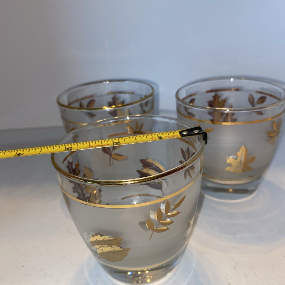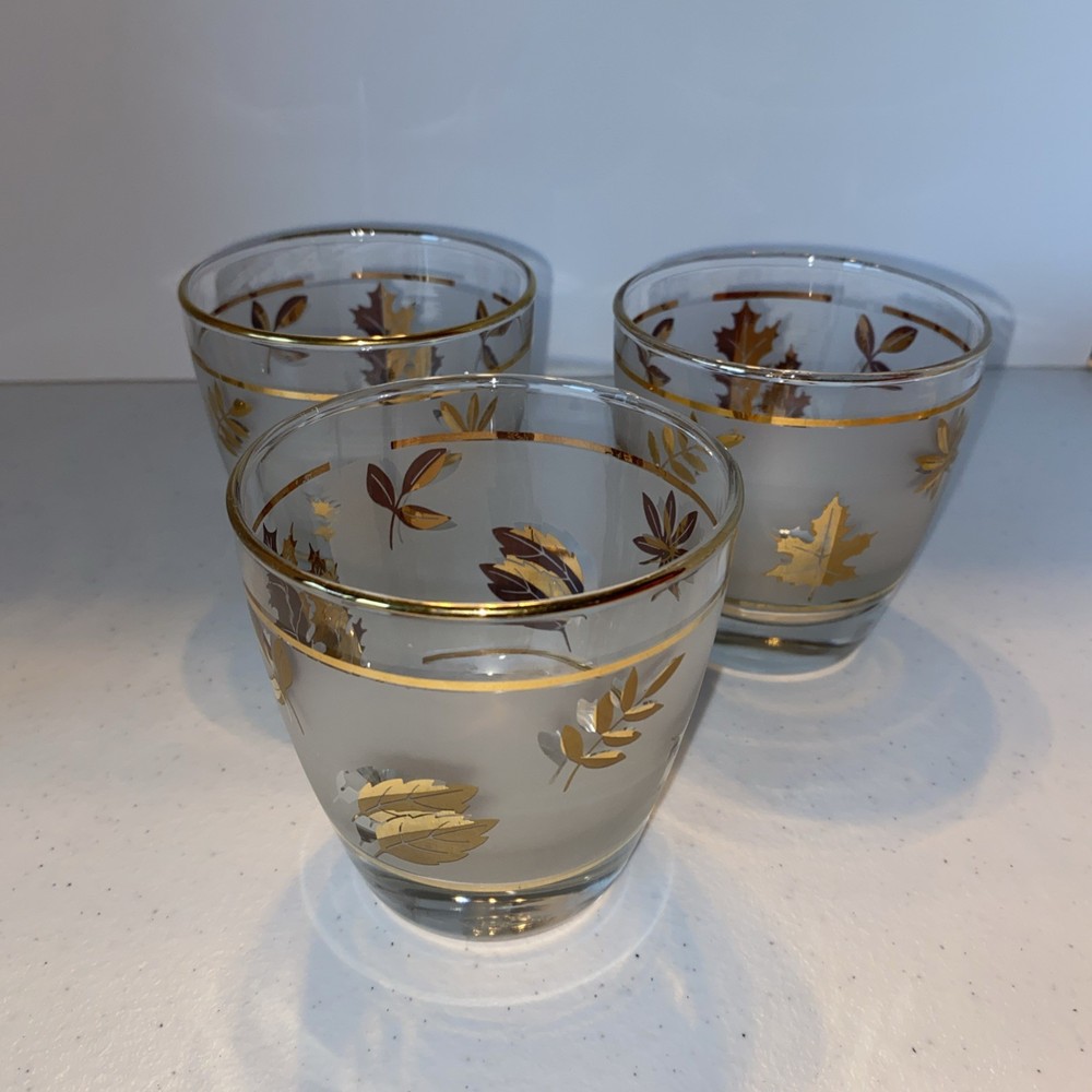 3 Old Fashioned VTG MCM Libbey Frosted Golden Foliage Short Glasses