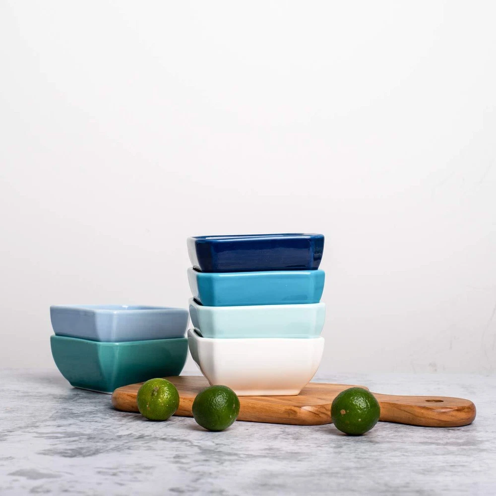 Include Sauce Cups Set of 6 & Easy Care: Small dipping bowls, are 3x1.4inch, 6 x stylish and colorful dipping sauce dish and hold up to 88ml fluid 3 ounces. Great for ketchup, potato sauce, ranch, soy sauce sushi, dipping oils for bread, etc... Table Accessories: Our white dip bowls set are designed with style in mind, as serving bowls will fit in with a color schemes and table decor, The colorful design gives a sense of quality and elegance High Quality: soy sauce dish insist to provide BEST materials so that these ceramic dip bowls are also perfect to hold HOT or COLD item in your hand without worrying about tossed in the dishwasher, heated or cooled in the microwave or freezer Easy to Clean: Condiment cup has glazed surface that resists corrosion makes cleaning easy, and the side dishes are available in STACKABLE size to save your cupboard space Beautiful Dipping Bowls Set: strong 3 Oz ceramic soy sauce bowls set 6
