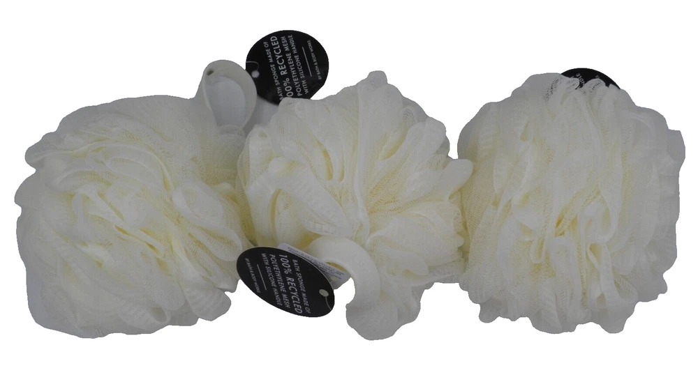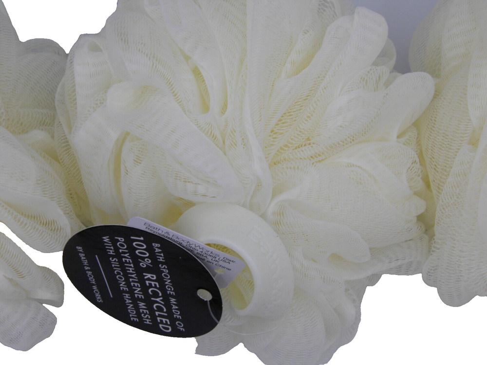 3X BATH & BODY WORKS SHOWER SPONGE LOOFAH POUF Cream 100% recycled NEW SHIPPING & HANDLING International shipping is not available. Mailing Address - We will ONLY ship to the address on file with eBay. Before making a purchase, please ensure that your address is correct. We may otherwise cancel the sale. Handling Time - Our handling time is set to THREE BUSINESS DAYS. We ship packages Monday - Friday, with the exception of holidays. Calculated Shipping - Our shipping fees are calculated based on weight and dimensions. We ship USPS and UPS depending on cost. This listing is NOT sponsored by, affiliated with or representative of the mentioned brand(s), trade name(s), trademark(s) and does not claim any ownership of such. All trademarks or brands mentioned in this listing are registered trademarks of their original owners who reserve all their rights and ownership. The use or mention of any trade-name, product name, or trademark is necessary and for identification and is for reference purposes only.