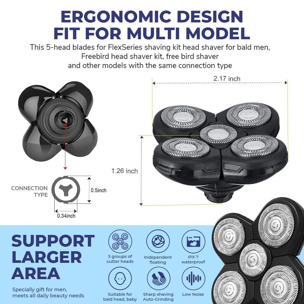 About this item {Premium Material}: Our 360-degree shaver replacement heads feature a round design that ensures a safe and smooth shaving experience, protecting your skin from nicks and irritation. {Maintenance Tip}: For optimal performance, replace the shaving heads every 3-6 months to keep your shaver in top condition. {Universal Compatibility}: These replacement blades are designed for both men and women and are suitable for wet and dry hair removal. {Convenient Packaging}: Each package comprises 3 Freebird replacement heads refills, each housing 5 fresh rotary blades, accompanied by 2 shaver cleaning brushes. Meticulously packaged for convenience and hygiene, ensuring every grooming session feels fresh and professional. {Exceptional Gift}: Elevate grooming routines with this premium replacement blade set head shaver, making it an ideal gift choice for fathers, husbands, or partners. Esteemed by bald men for its exceptional grooming prowess and quality craftsmanship. {Simple Installation}: Easily replace your shaver heads within minutes. For best results, apply a tiny drop of baby oil to each head and run the shaver for 10 seconds post-installation to ensure smooth operation. Shipping We offer FREE shipping on all orders! We ship within Three business days of payment, usually sooner. We use a selection of shipping services such as UPS, FedEx, USPS etc. We only ship to the lower 48 states, no APO/FPO addresses or PO Boxes allowed. Local pickups and combined shipping options are not provided at this time. Return You can return a product for up to 30 days from the date you purchased it. Any product you return must be in the same condition you received it and in the original packaging. Please keep the receipt. Payment We accept payment by any of the following methods: PayPal Please pay as soon as possible after winning an auction, as that will allow us to post your item to you sooner! Feedback Customer satisfaction is very important to us. If you have any problem with your order, please contact us and we will do our best to make you satisfied. Contact Us If you have any queries, please contact us via ebay. We usually respond within 24 hours on weekdays. Please visit our eBay store to check out other items for sale! Thank you for shopping at our store. Disclaimer We are working with different suppliers in USA to deliver the item to your doorstep. If you have any issues regarding the item, Feel free to ask.