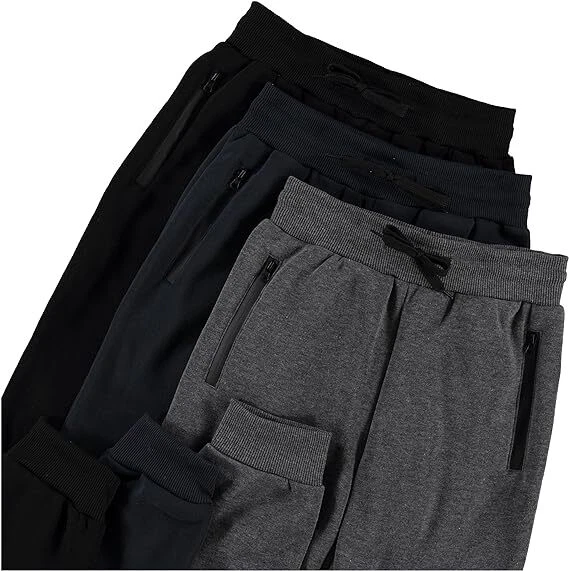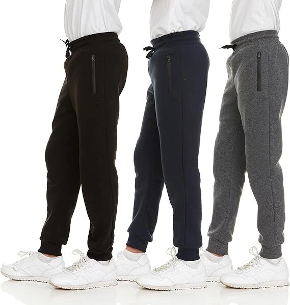 3Pack: Boys Sweatpants Fleece Athletic Workout Kids Clothes Boys Joggers with Zipper Pocket and Drawstring Size 4-20 US FLEECE BOYS JOGGERS SIZE CHART: Brand Size US Size Waist (in) Inseam (in) XS 4 - 5 21 19.5 S 6 - 7 22.5 20.5 M 8 24 23 L 10 - 12 25.5 25.5 XL 14 - 16 27 28 2XL 18 - 20 28.5 29.5 About this item A Must for Your Little One’s Wardrobe: Whether you’re looking to make sure your kids enjoy a comfortable, modern look on their casual activities, or you simply want them to be protected during those cold days, these boys sweatpants are the perfect solution! Premium Fleece Fabric: Our Joggers for boys are made employing superior grade, highly durable materials, a combination of 60% cotton and 40% polyester, machine washable, non-fading, and highly resilient for the active lifestyle. Stylish and Modern Look: These Boys athletic pants feature a chic, sporty look with convenient and practical zipper pockets, being ideal for wearing with your favorite t-shirt, hoodie or sports jacket! Convenient Pack of 3: Available in several beautiful color combinations, arriving in sets of 3 per pack, these kids sweatpants will instantly become their favorite! The lightweight, breathable texture keeps the skin ventilated and dry, while the closed pockets are ideal for storing smartphone, keys, ear buds, cash and more! The Possibilities Are Endless: Order these boys joggers as a practical birthday gift for your kids, and you can be sure they’ll love them! Our boys pants is perfect for running, training, sports, gym class and other fun activities. Product Description Pure Champ is a premium brand that focuses on delivering unique and versatile men’s and women’s activewear meant to add comfort and elegance to your everyday activities, without interfering with your personal style. We work exclusively with superior quality fabrics and trustworthy manufacturers, in order to meet the most rigorous standards and expectations of our worldwide customers. Encountering issues with your purchase? Our customer care department is entirely at your disposal and will immediately address your concerns! 3-Pack Boys Sweatpants for Active Kids and Teens These boys joggers will come in handy for every active kid who enjoys his comfort and mobility throughout intense physical activities, or simply on a walk in the park. Made of premium fabrics, with a warm fleece texture that creates a cozy effect, plus convenient and functional zipper pockets for keeping personal items, these kids baseball pants will add a modern and stylish note to your little one’s look. Maximum comfort and support whether for gym class, school, playground, lounging at home or any other fun activity! Not entirely convinced? Here are some of the amazing features of these pants for boys: 1. Available in various sizes and color options for a complete modern look; 2. Each pack contains 3 pairs of pants, great for longer term wear; 3. Material: 60% cotton, 40% polyester; 4. Machine washable, easy care, non-fading; 5. Classic fit; 6. Comfortable, lightweight and breathable; 7. Elastic waist for superior comfort and mobility; 8. Multipurpose and versatile; 9. Nice gift for your son, grandsons, nephews. Your little one will fall in love instantly with these casual joggers for boys!