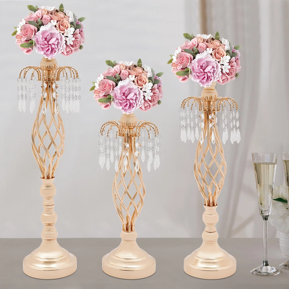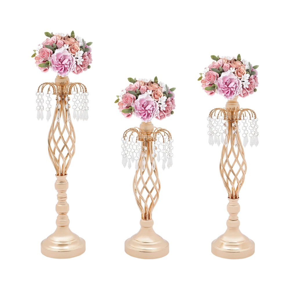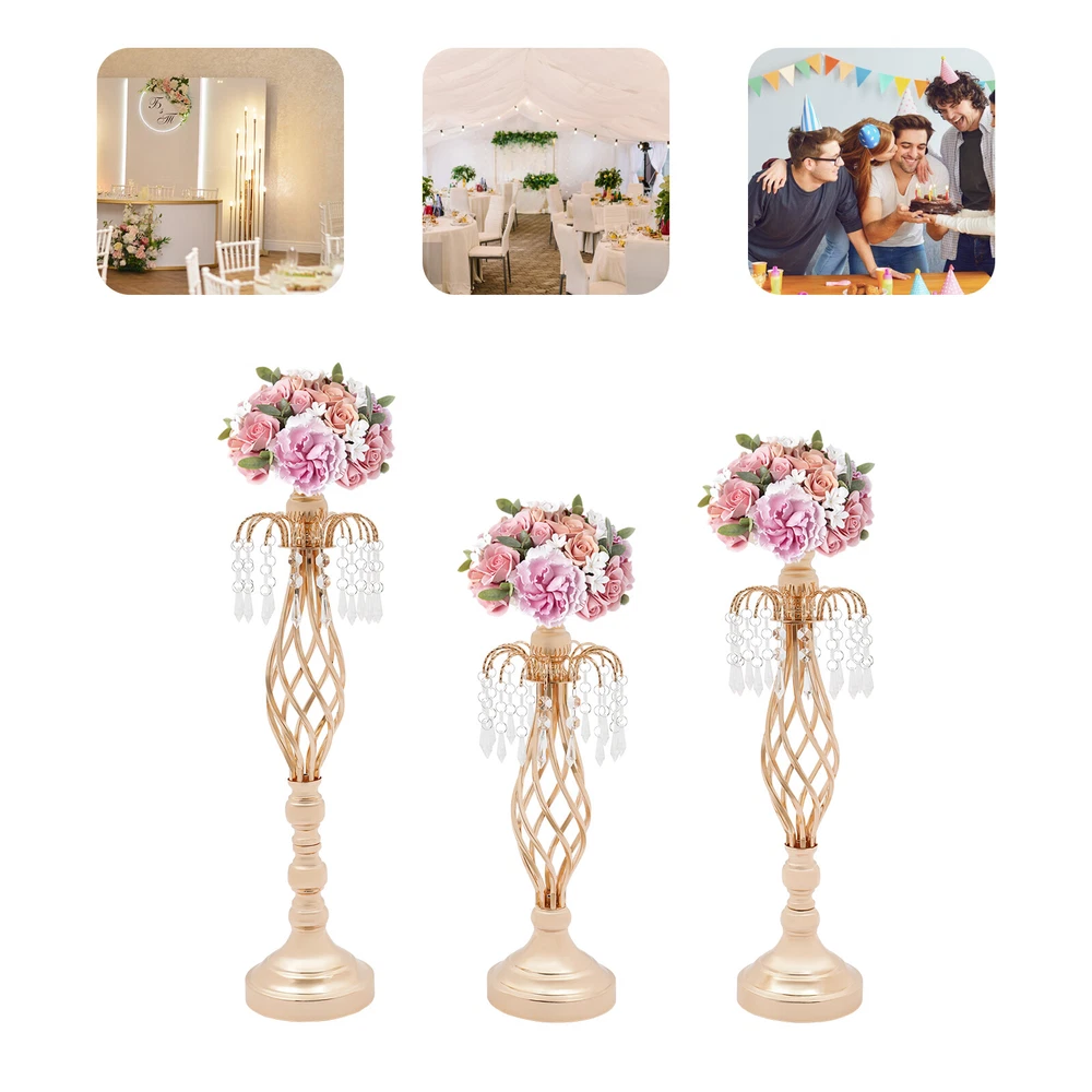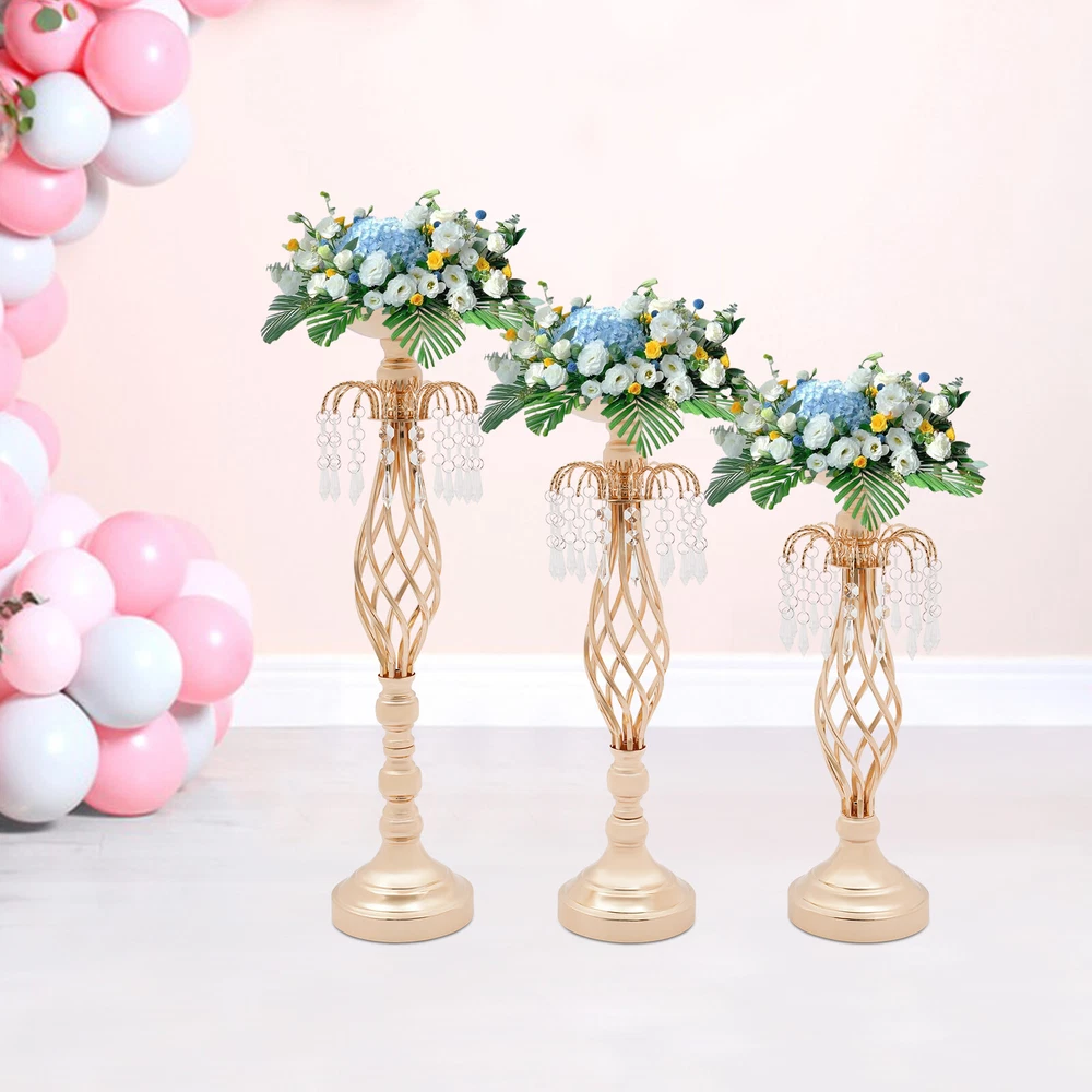 Specification Material: Iron, Acrylic Process: Electroplated Color: Gold Assembly Required: Yes Mount Type: Floor Standing, Countertop Mount Style: Modern Number of Items: 3 Each Top Diameter: 15cm/5.91in Each Base Diameter: 14cm/5.51in Product Height(From Large to Small): 54cm/21.26in, 47cm/18.5in, 40cm/15.75in Package Size: 31*31*25cm/12.2*12.2*9.84in Gross Weight: 3.4kg/7.5lbs Net Weight: 2.8kg/6.17lbs Package Included 3* Wedding Flower Stands Other Accessories for Assembly 3 PCS Electroplated Flower Stands for Wedding Wedding Gold Flower Stand Description A successful wedding cannot be achieved without beautiful flowers. We are proud to present this wedding flower stand, carefully selected from high-class iron, with a reasonable structure that ensures that each bouquet is placed in a peaceful and orderly manner. The shiny gold look and simple geometric shape make this product an essential wedding decoration. Key Features Build to Last : This product is made of iron with an electroplated process, which is hard, anti-oxidation , rust-resistant , and impact-resistant , and not easy to fade and deform, ensuring a long time. Multi-function : This stand can not only be placed on the desktop as an elegant decoration, but also on the floor as a guide for event receptions, adding charm and romance to weddings, parties, and special occasions, elevating the grade and style of your event. DIY Fun : You can arrange various floral combinations or mix decorative elements such as candles or figurines to create personalized displays. You can decorate the stand with balloons, lights, etc., and repeatedly use this stand in different scenes, which can cultivate your creativity and save money. 3-piece Set : The 3-piece package not only promotes uniformity of style but also saves you money by catering to your different needs. Eye-catching Appearance: The elegant, noble gold color, and twist design elevate your visual experience and add sparkle to a dull event by creating a personalized backdrop. No matter where you place it, it will be a unique and refreshing sight. Excellent Gift: With high practicality and beautiful appearance, it is greatly suitable as a gift for family, friends, lovers, or newlyweds. Easy to Store and Carry : The product is detachable and you can easily store it in a warehouse or cabinet without taking up too much space. Easy to Clean: Thanks to its simple construction and smooth surface, you can wipe it clean with just a rag or sponge brush (not included). Customer Service : We aim to provide quality products and services. If you have any problems, please feel free to contact us. We will reply and solve the problem for you as soon as possible. Details Sturdy Base: The 5.51-inch diameter base with a non-slip mat increases the contact area with the countertop to better maintain the stability of the product. Round Edges : They not only enhance the aesthetics of the product but also improve safety during installation, cleaning, and use. Multiple Pendants : They are sparkling clear, which can increase the visual effect and beauty of the product. Application This product can be used to display your favorite plants, flowers, or other decorations. It is suitable for weddings, aisle guides, party decorations, and event decorations, also suitable for home decor, living room, coffee shop, balcony, bar, and hotel. Specification Material: Iron, Acrylic Process: Electroplated Color: Gold Assembly Required: Yes Mount Type: Floor Standing, Countertop Mount Style: Modern Number of Items: 3 Each Top Diameter: 15cm/5.91in Each Base Diameter: 14cm/5.51in Product Height(From Large to Small): 54cm/21.26in, 47cm/18.5in, 40cm/15.75in Package Size: 31*31*25cm/12.2*12.2*9.84in Gross Weight: 3.4kg/7.5lbs Net Weight: 2.8kg/6.17lbs Package Included 3* Wedding Flower Stands Other Accessories for Assembly Notes Please note that flowers and other decorations are not included in this product. Please allow the slight color difference caused by the shooting light and the 1-3 cm error due to manual measurement, and make sure you do not mind before ordering. Payment Delivery details Terms of sales About us Contact us Payment We accept ebay payment 。 Fees such as import duties, taxes are not included in the item price or shipping costs. These charges are the buyer's responsibility. Delivery details Shipping: 2-9 working days to: USA Terms of sales We maintain high standards of excellence and strive for hundred percent customer satisfaction. Feedback is very important to us. We hope that you contact us immediately before you give neutral or negative feedback, so that we can address your concerns. It is impossible to address issues if we do not know about them! About us Your satis faction is our ultimate goal. We work hard to earn your trust and future business. Our certified technicians have tested each item before shipping. The unit comes with 1 year limited warranty on all manufacturing defects. a) If you receive a defective item, you may return it or ask for a discount. Please contact us within 14 days after you receive the package. b) What you returned must be intact and in its original packaging as re? u. Customer is responsible for shipping costs of the returned item. c) We will cover the cost of shipping back t with the shipping rate indicated in the registration page. We will send you a new unit or refund the full payment you paid. Thank you. Contact us Business Hour Business Hour: Monday To Friday: 8:30 AM to 5:00 PM (Beijing China time) Due to time zones, our reply to your questions may not be immediately. But within above working time, we will reply your email within 24 hours. If it's non-workdays, please kindly be patient and wait till Monday. Please contact us with ebay message. Please feel free to contact us if you have any questions. Monday To Friday: 8:30 AM to 5:00 PM (Beijing China time) Due to time zones, our reply to your questions may not be immediately. But within above working time, we will reply 
