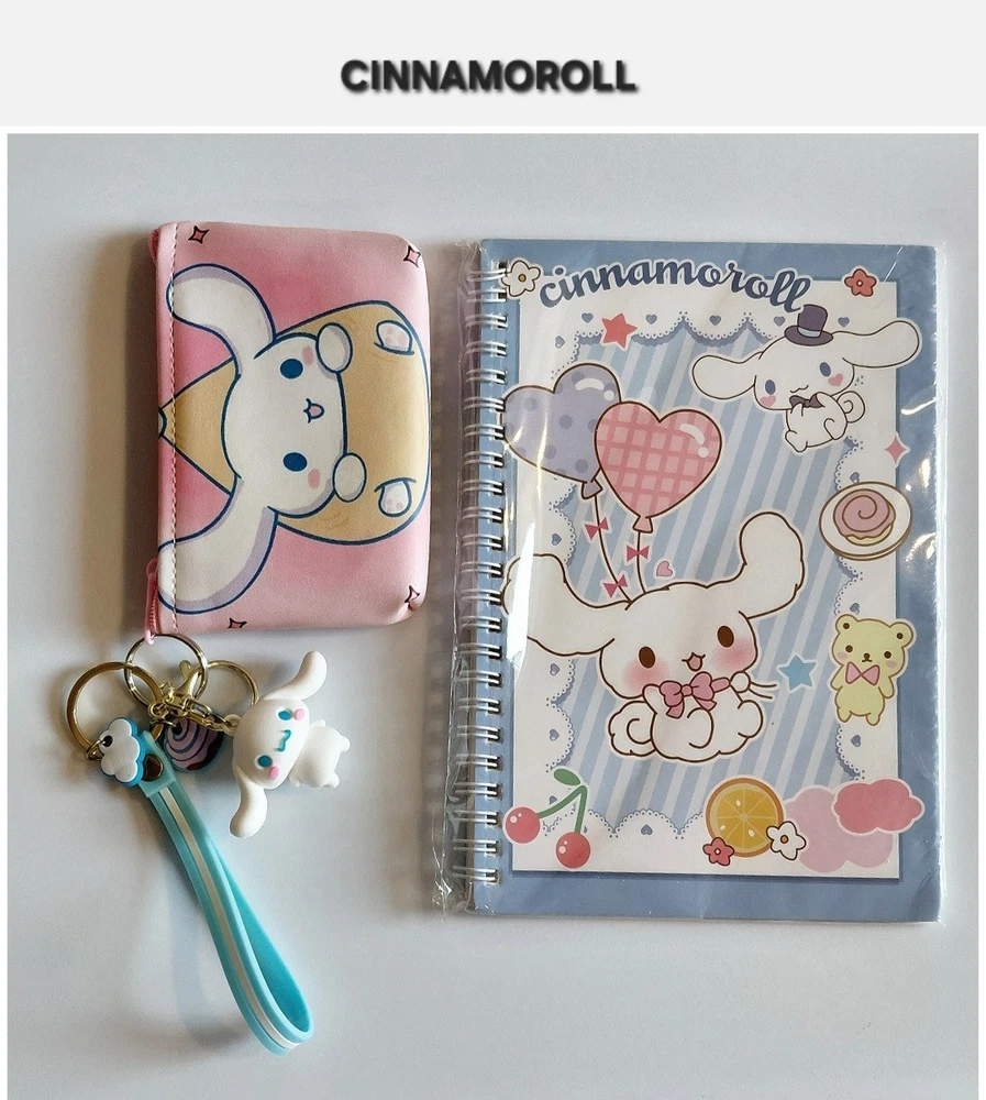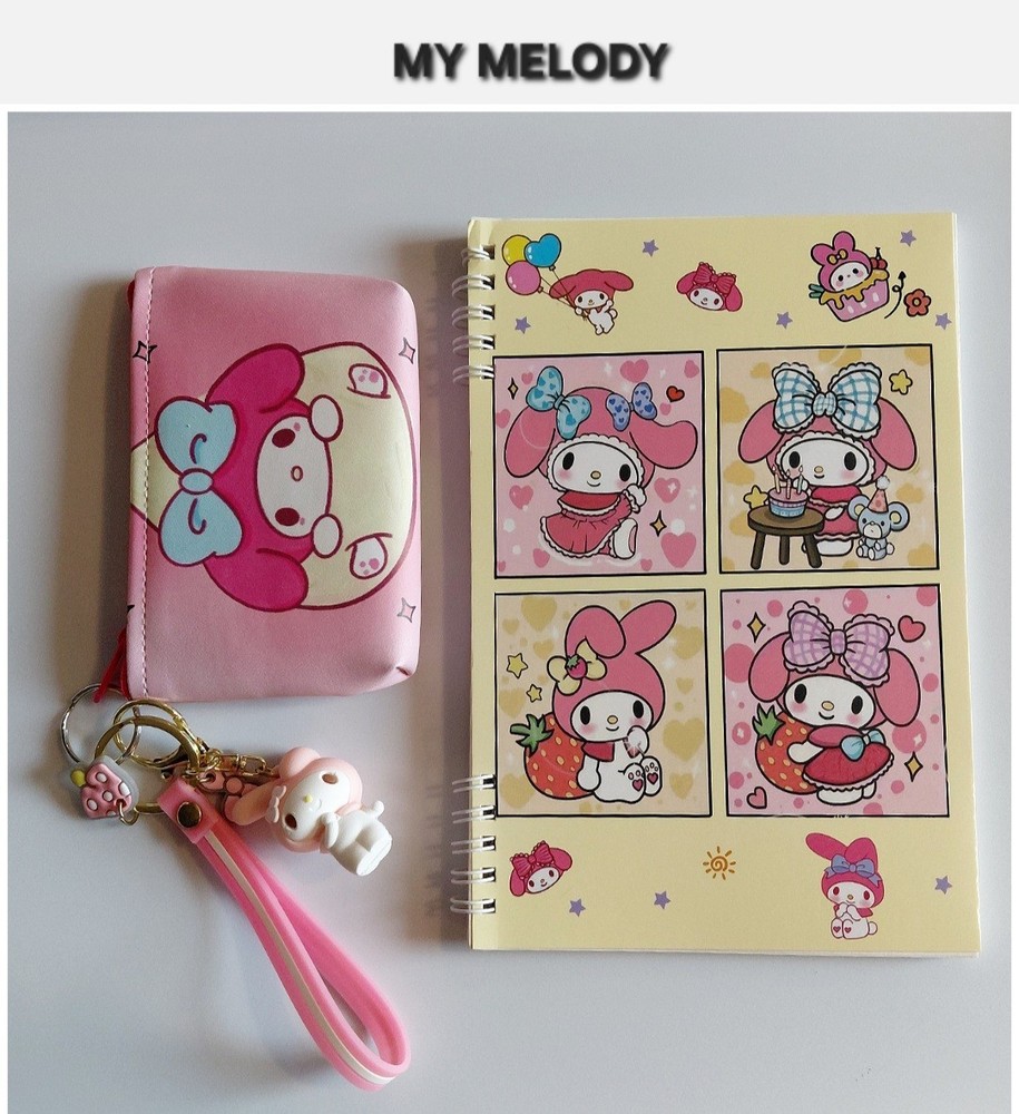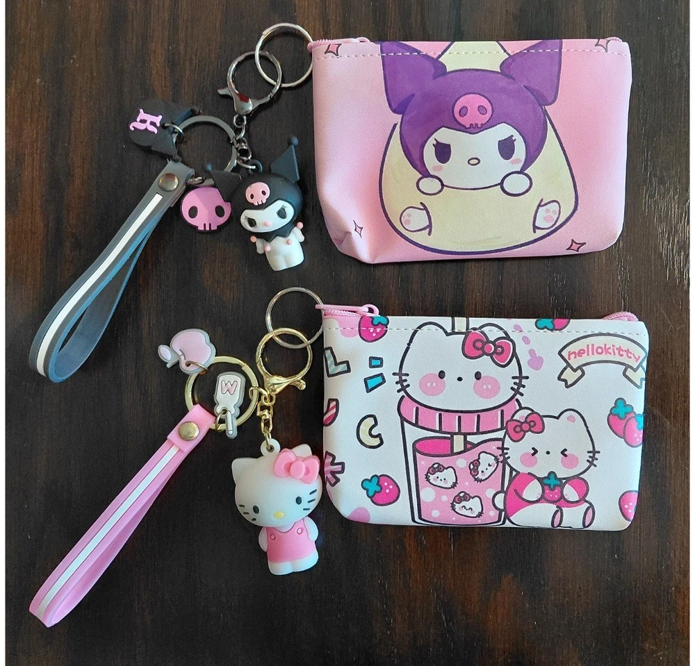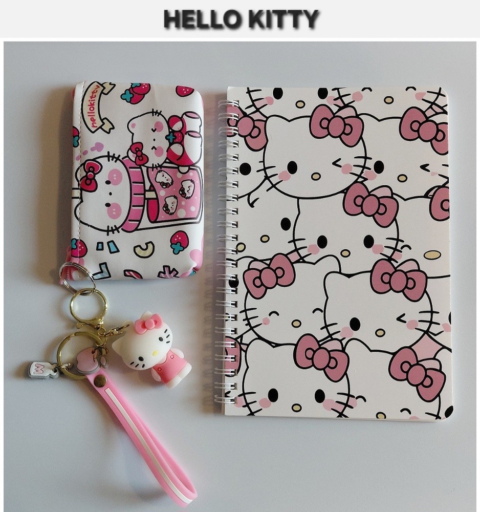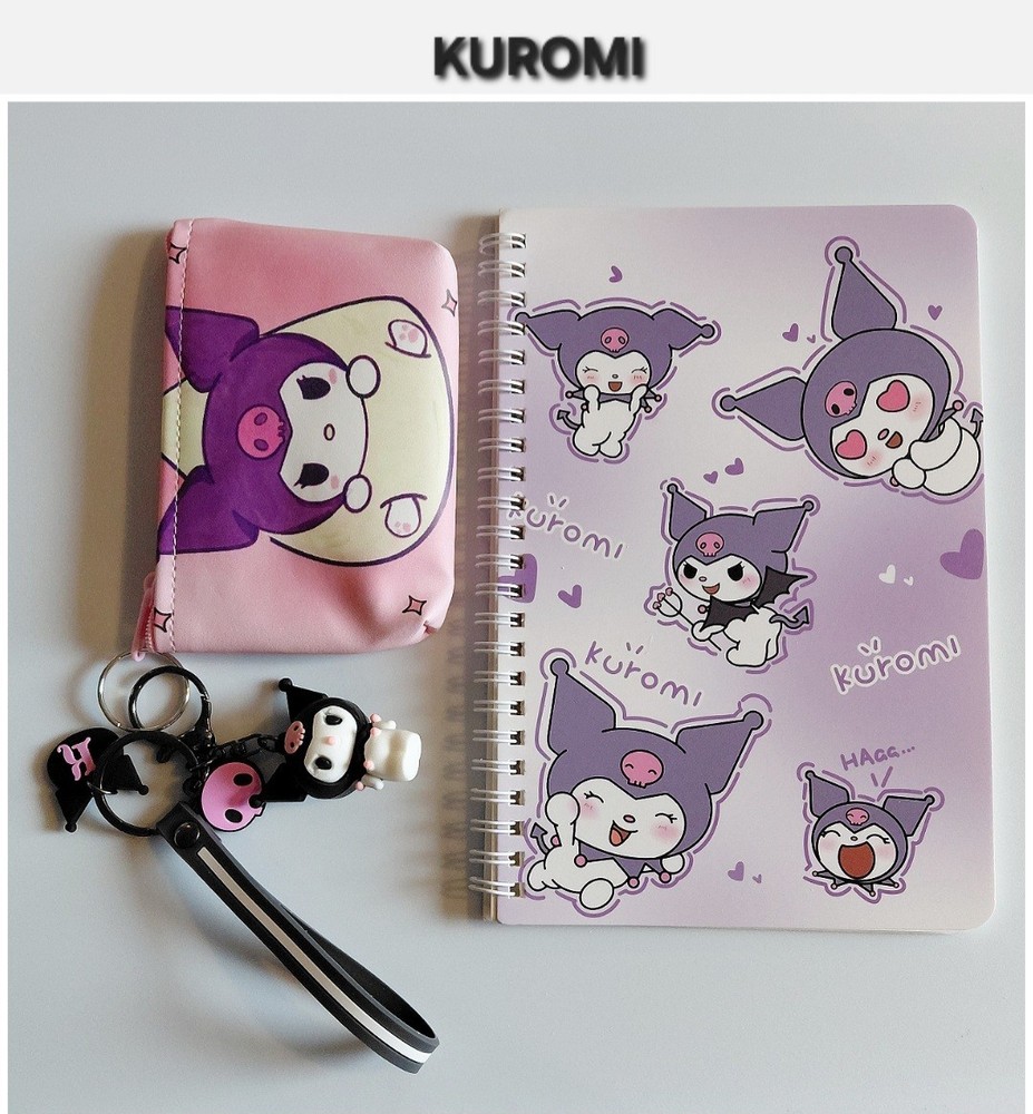 3 PCS Sanrio Character Theme Keychain Notebook Coin Pouch Kuromi Hello Kitty