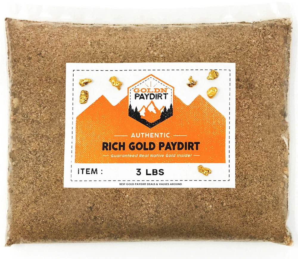 *SPECIAL OFFER*: BUY 2 GET 1 FREE - BUY 3 GET 3 FREE + FREE U.S. SHIPPING GOLDN PAYDIRT DETAILS 3 Lb. – Original Rich Unsearched Gold Panning Paydirt Concentrate Look for the BONANZA! Buy as many as you want by the 3 Lb. unit - No Quantity Limit!! Our Original Rich Unsearched Gold Paydirt! Is one of the Richest Paydirts available! Find BIG GOLD such as NUGGETS, PICKERS, flakes, specimens, minerals, fines and flour! Multiple units ship in one or as few zip or heat-sealed bags as possible. GOLDN CUSTOMER FEEDBACK: -Fast Shipping, Lots Of Gold Nuggets & Gold Flakes, 4 Grams Total -Really Nice Paydirt, Over A Gram Of Gold Panned On The Very First Try -3 Generations Had Fun Playing With This Dirt, Great Product, Lots Of Gold -A+ Found 6 Nice Nuggets & Pickers, Best Paydirt I’ve Found -Very Nice Paydirt, My Husband Found 4 Nuggets ABOUT -What is Gold Paydirt? *The Focus of GOLD PAYDIRT is to find, reveal & identity rocks and minerals such as gold! *Gold Paydirt is a geological type of dirt that comes from a natural gold deposit. *Gold Paydirt is made up of natural, random geological occurring rocks & minerals such as but not limited to: quartz, mica, schist, granite, hematite, magnetite AND gold! -What will I find inside of your Gold Paydirt?! *Each purchased unit of Gold Paydirt will contain a varying assortment of rocks & minerals. *This is not a chance listing. You will receive actual factory sealed gold paydirt from an active gold mine. Each purchased unit will contain gold found both naturally occurring and gold that has been added to make sure everyone finds gold when used correctly. -Look for the BONANZA!! *YES - Just like the old timers, it is always possible to find the bonanza! *Rare ‘Bonanza Units’ will contain 2x-5x added Gold!! *Bonanza Units’ occur on average 1:3! ‘Bonanza Unit’ details are reflective over an entire production and may be found by all! TRUST IN U.S MINED PAYDIRT!! *The GOLDN PAYDIRT we offer is mined, created and comes to you directly from hard working U.S. GOLD MINERS! We work exclusively with Gold Miners to bring you their best, Gold! The Special Gold Nugget Paydirt Concentrate comes from a blend of Raw Paydirt from river deposits, stream deposits and valley deposits. All deposits are located in areas known for gold including the possibility of nuggets & chunky gold all found within historic Gold Regions of North America. Added gold comes from active gold mines and claims all over North America, we work directly with the miners to bring you the best around! *The very first U.S. Gold Rush was located on the east coast and the old timers missed more rocks, minerals & gold imaginable! WE SUPPORT OUR U.S. SERVICE MEMBERS ACTIVE & VETERAN Send us a message for a discount!! We never mind helping you out! ITEM INSTRUCTION Printed Gold Paydirt instruction included with Gold Paydirt. ITEM EXPECTATION / USE *Customer skill method & unsearched gold paydirt deposits determine just how much rocks, minerals & gold you will reveal. *There is never any guarantee that the rocks, minerals or gold found within the gold paydirt hold any past, present or future value. Gold Paydirt is strictly for education, hobby and entertainment. Our Gold Paydirt is a Find & Reveal item. Not an item of chance. RETURNS, POLICIES, TERMS & LEGAL -If for any reason you are unhappy with the item, please contact us and give us the opportunity to see how we can make you happy before leaving any harmful, defective feedback or reviews. -Return policy applies to unopened & unaltered items only. All returned items will be fully inspected upon arrival. -As with any user result oriented item we can never guarantee that you will report finding a specific amount, size or value of Rock, Minerals or Gold inside. All reported results depend on user skill and may vary because of this. -We consider and refer to any and all types of visual gold as nugget/s. -Anything that you see in the item photos other than Gold Paydirt is not included. Anything else not included such as stand-alone gold examples in the photos will not be the actual items or quantities received. -Since gold paydirt comes from outdoor deposits they may contain organic & man-made material such as but not limited to: leaves, roots, lead shot, river glass, road paint & sometimes even critters like bugs. -Gold Paydirt comes from active waterways such as creeks and rivers. We do our best to dry our Gold Paydirt but sometimes may be received damp or wet. -Listed total item weights include gold paydirt & packaging. -We use the United States customary unit system (ounces, pounds, etc..) Listing and template services provided by inkFrog