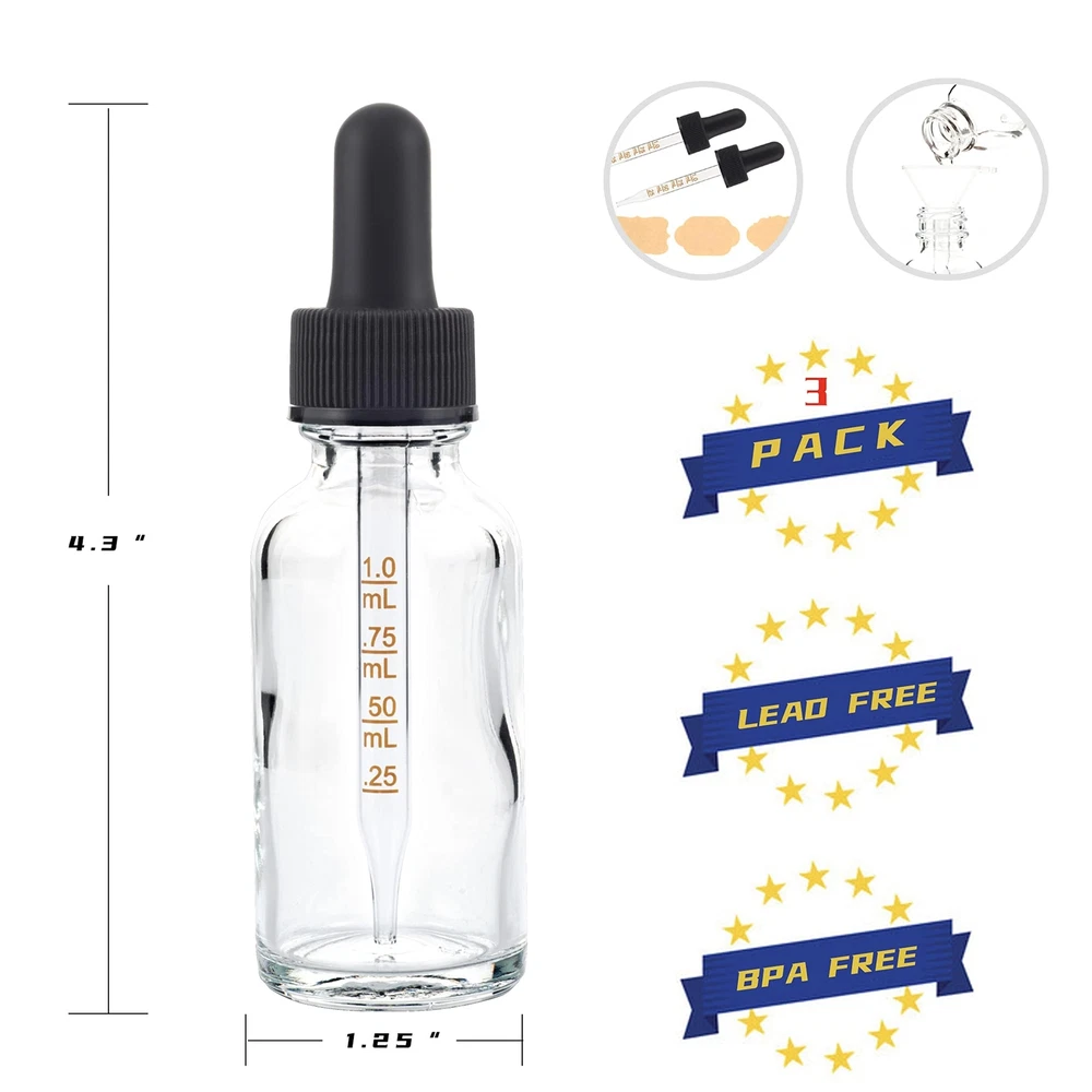 3 Pack 1oz (30ml) Clear Glass Dropper Bottles with Measurements, Tincture Bot...
