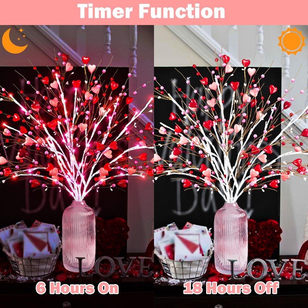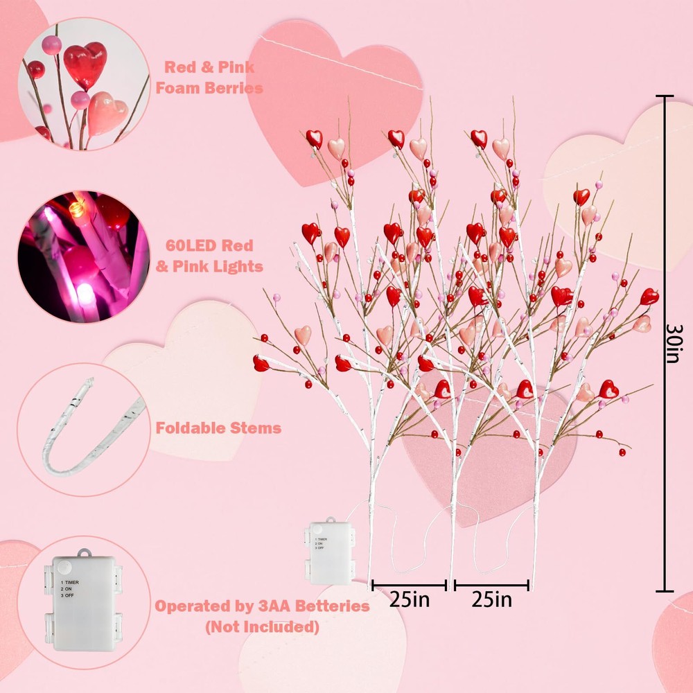 These Valentine’s Day picks are absolutely stunning! The soft glow from the 60 red and pink LEDs creates such a romantic atmosphere—perfect for setting the mood. I love the auto-timer feature, which keeps them lit for 6 hours each night without me having to remember to turn them on. The branches are beautifully decorated with berries and hearts, making them a festive touch for any Valentine’s decor. They’re easy to arrange and add a cozy, warm vibe to our space. My partner and I adore them—such a lovely gift idea!