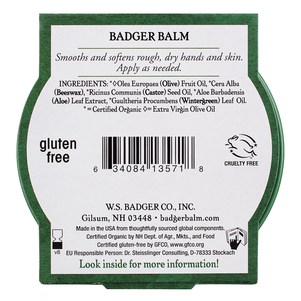 Product Description Created by Badger Bill to heal his rough, cracked carpenter’s hands during a fierce New England winter, you can trust us when we say this stuff will soothe and soften your driest, hardest, and roughest skin but is gentle enough to use every day. Created by Badger Bill to heal his rough, cracked carpenter’s hands during a fierce New England winter, you can trust us when we say this stuff will soothe and soften your driest, hardest, and roughest skin but is gentle enough to use every day. Smells great with the light minty and somewhat earthy aroma of wintergreen. If you should ever find yourself lost in some vast, uncharted wilderness, you want this balm with you! Badger Balm has been to the South Pole on the hands and feet of explorers on skis; it has soothed the fingers of trapeze artists and rock climbers; it has been a staple for river rafters, sled doggers, and weight lifters for years. Conditions and moisturizes dry hands and skin Sturdy circular tin with snap-tight seal to protect balm Conditions and moisturizes dry hands and skin Ingredients include olive oil, beeswax, and aloe extract Ingredients Olea Europaea (Olive) Fruit Oil, Cera Alba (Beeswax), Ricinus Communis (Castor) Seed Oil, Aloe Barbadensis (Aloe) Leaf Extract and Gaultheria Procumbens (Wintergreen) Leaf Oil. Instructions For best results, rub clean fingertips lightly over the surface of the balm and apply anywhere on your body. For larger areas such as arms and legs, dig into balm using two or three clean fingertips. Rub it in. Just remember: a little goes a long way! Product Description Created by Badger Bill to heal his rough, cracked carpenter’s hands during a fierce New England winter, you can trust us when we say this stuff will soothe and soften your driest, hardest, and roughest skin but is gentle enough to use every day. Created by Badger Bill to heal his rough, cracked carpenter’s hands during a fierce New England winter, you can trust us when we say this stuff will soothe and soften your driest, hardest, and roughest skin but is gentle enough to use every day. Smells great with the light minty and somewhat earthy aroma of wintergreen. If you should ever find yourself lost in some vast, uncharted wilderness, you want this balm with you! Badger Balm has been to the South Pole on the hands and feet of explorers on skis; it has soothed the fingers of trapeze artists and rock climbers; it has been a staple for river rafters, sled doggers, and weight lifters for years. Conditions and moisturizes dry hands and skin Sturdy circular tin with snap-tight seal to protect balm Conditions and moisturizes dry hands and skin Ingredients include olive oil, beeswax, and aloe extract Ingredients Olea Europaea (Olive) Fruit Oil, Cera Alba (Beeswax), Ricinus Communis (Castor) Seed Oil, Aloe Barbadensis (Aloe) Leaf Extract and Gaultheria Procumbens (Wintergreen) Leaf Oil. Instructions For best results, rub clean fingertips lightly over the surface of the balm and apply anywhere on your body. For larger areas such as arms and legs, dig into balm using two or three clean fingertips. Rub it in. Just remember: a little goes a long way! Suggested Use Ideal for cracked, rough, or weathered skin. Disclaimer The product descriptions and instructions provided by vitabox.com are for informational purposes only and are qualified in their entirety by the information available from manufacturers of the products. You should carefully read all product packaging, and contact the manufacturer with any questions before using a product. While we endeavor to ensure that product descriptions are current, manufacturers sometimes change their products. We are not liable for inaccuracies or misstatements about products. We do not provide medical advice or recommendations. You should not use the information provided by vitabox.com for diagnosing or treating a health problem or disease. If you have or suspect that you have a medical problem, immediately contact your health care provider. Information and statements regarding dietary supplements have not been evaluated by the Food and Drug Administration or any other government agency and are not intended to diagnose, treat, cure, or prevent any disease.