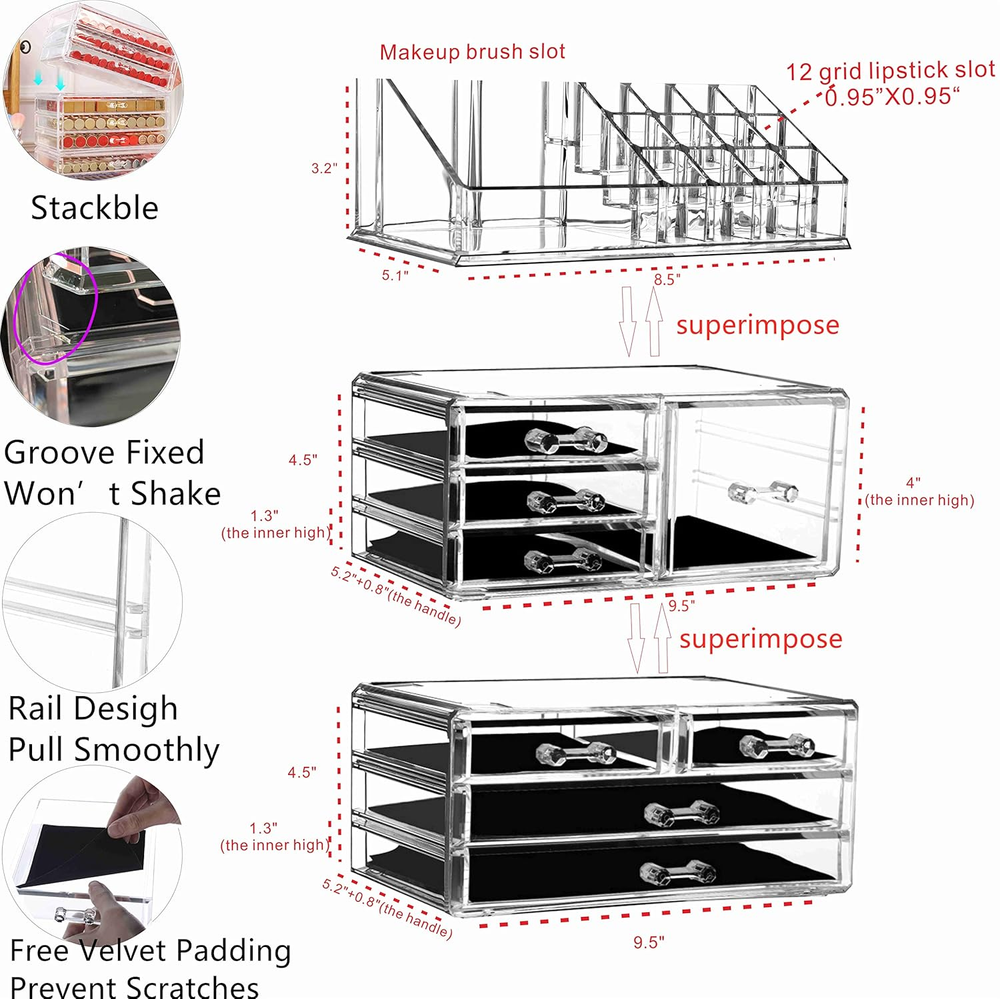 3 Pack Clear Make up Organizer Countertop, Stackable 8 Drawers Makeup Storage,Cute Vanity Organizers for Dresser Hair Clip,Jewelry,Beauty Product Desk and Bathroom Organizers and Storage 【Cute Stacking Makeup Organizer Dorm 】- Size:6*9.5*12.inches.The Bathroom Drawer Organizers and Storage has 3 independent drawer organizers, totaling 8 drawers,and and 1 Pack Makeup Holder at the top that contains 16 spaces ,that can store makeup brushes, perfume, nail polish, lipstick, eye shadow, skin care products and much more. 【Multifunctional Pen Storage】 - Design of drawers of different sizes makes it a perfect Desktop Drawer Organizer for storing lotion,skin care,essence, facial cleanser, lipsticks, makeup palettes, eye shadows, concealers, and other skin care products, cosmetics,toiletries makeup,lipstick,toolbox,office supply,pen,craft,stationery,and hair clip accessory Storage Drawers Stackable 【Stackable Drawers Design-Scrapbook Organizers and Storage can stack each other,You can use each drawer separately or match it with Our other drawers from our brand,the Hair Organizer Storage for Girls Hair Stuff compact and simple design, does not deform, and is shiny. It is very suitable to be placed on the dormitory,bedroom,Vanity Countertop,dressing table,office desktop,Bathroom Counter Makeup Organizer for Desk 【This Estante Para Perfumes is Perfect Gift】 - Perfect choice as a Desk Storage Drawer gift to women,Girl,girlfriend, daughter, wife, mom, and friends. College dorm room essentials for girls.Ideal gift for valentine's day, mother’s day, thanksgiving day, christmas, birthday and wedding. 【Stylish and Durable Craft Organizers】: Crafted from premium materials, our Skin Care Organizer Countertop combines durability with a sleek, modern look that complements any décor, whether modern minimalist, Nordic, or vintage. This organizer is also a must-have for beauty bloggers, makeup artists, and college students. We provide the best price,our team make the best service, the best use of acrylic, if quality and Transport damage problems can choose a replacement or refund, no problem, which is why it come with a 30-day satisfaction guarantee Item model number 6706-6404Q Manufacturer factory Number of Items 1 Color Clear Special Feature Stackable Product Dimensions 6"D x 9.5"W x 12"H Material Plastic Country of Origin China Specific Uses For Product Cosmetics Mounting Type Free Standing Item Weight 4.7 Pounds Shape Rectangular Number of Compartments 24 Unit Count 1.0 Count Finish Type Polished Size 8 Drawers Shipping Fast shipping is very important for us. Our standard US shipping service is FREE. Your order will be shipped within 2-3 business days upon full payment received. Your order will be delivered within 2-3 business days after the handling time. We only ship to the confirmed PayPal address. We reserve the right to cancel any order for any reason at any time. We are not responsible for undeliverable addresses. Returns and payment We offer a 30 days return policy from checkout winning date. We allow only PayPal as payment method FeedBack Your feedback very important to us, after you get your package and you are satisfied with our service please leave us positive feedback If you have any problem with your order / any questions please before leave any type of feedback For any questions, using eBay contact system Please visit our eBay store to check out other items for sale! Thank you for shopping at our store.