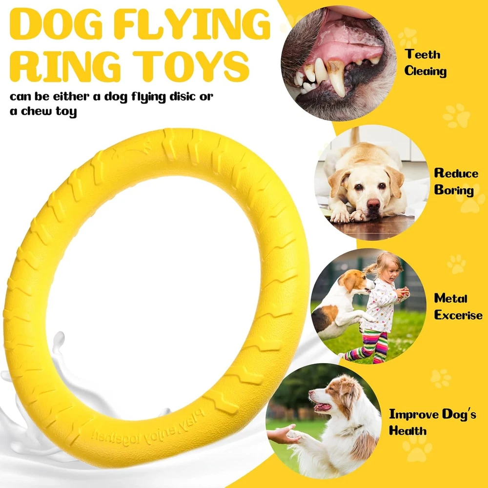 Ideal Dog Toy: this dog training fitness ring 3 Pack is available in vibrant green, orange, and yellow colors that can catch your dog's attention quickly; With a size of 11.42 inches, these toys are completely suited for medium to large breed dogs; Designed to throw, catch, pull and more, contributing to your pet's overall fitness Quality Eva Material: constructed from eva material, our dog ring toys offer good sustained and be able to bear wear and tear; Being easy to clean and not easy to deformation, they maintain their form and quality for a long span; Designed with safe material for your dog's teeth, these toys provide not only entertainment but also promote a healthy lifestyle for your pet Enhanced Dog Bonding: this ring toy fosters interaction, deepening the connection between you and your dog; Suit for engaging in active play, stimulating your pet's play drive, and can even be applied as a training tool for agility exercises; Facilitates training and entertainment, ensuring a fun and interactive gaming experience for both you and your pet Alleviate Anxiety and Boredom: when dogs get bored, they can become anxious or destructive, our dog ring toys are a good solution for that; The dog circle chews toy can be hung around the dog's neck for outdoor interaction with the dog, like grip or tug of war; They serve as an effective outlet for your dog's energy, helping reduce the dog's anxiety and prevent destructive behavior Boost Your Dog's Physical Health: these dog ring toys serve as good dog training fitness tools, can be use in parks, lawns, home and more; Encourage your pet to run, jump, or swim after the toy, providing a workout and enhancing their overall fitness and health Features: With its lightweight features, our dog ring toys are the playthings for every dog. Whether for training, active play, or simply as a chew toy, these rings are sure to become your pet's like in no time. With its flying and floating design, this dog ring toy takes playtime to the water and the open field. It's the good toy to bring to the swimming pool or the park, adding a fun new project to your play sessions. Specifications: Material: EVA Color: green, orange and yellow Size: 11.42 inches Package includes: 3 x Dog toys Notes: Manual measurement, please allow slight errors on size. The color may exist a slight difference due to different screen displays. Small items are included, please keep them away from pets in case of choking risk. Before purchase, confirm whether the product size is suitable for your pet, and observe the pet's reaction when using. Please remove the product in time if there is any discomfort.