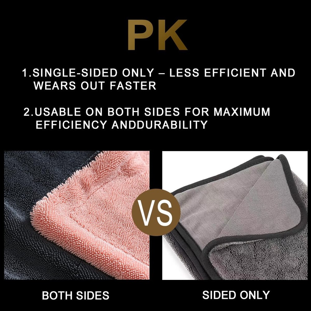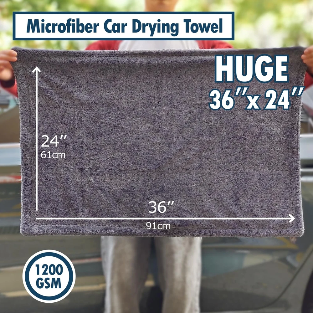 SATISFACTION GUARANTEED: We’re committed to top-notch quality, so if you’re not thrilled with your drying experience, we’re here to make it right. This set combines value, performance, and lasting quality—exactly what every car enthusiast deserves. COMPLETE CAR DRYING SET: With three specialized towels in one value-packed set, you’re covered for every step of the drying process. Use the 24" x 36" towel to dry the whole car, the 16" x 24" towel for tricky areas, and the 12" x 12" for mirrors and detailing—all without needing to wring them out. STREAK-FREE CLARITY FOR WINDOWS & MIRRORS: Each towel features ultra-thick 1200 GSM microfiber that soaks up over 9x its weight in water. The result? Streak-free, crystal-clear windows with just a quick swipe—no multiple passes required! EFFICIENT : Say goodbye to wasteful paper towels and soggy rags. Our double-sided microfiber towels are designed for maximum absorbency and durability, providing a scratch-free, premium drying experience that saves you time and resources PROFESSIONAL-QUALITY RESULTS, EFFORTLESSLY: Whether you’re a pro or a weekend warrior, this set offers a versatile and easy-to-use solution. The high absorbency and quick-drying design ensure spotless results in less time, so you can spend less time drying and more time enjoying your ride SATISFACTION GUARANTEED: We’re committed to top-notch quality, so if you’re not thrilled with your drying experience, we’re here to make it right. This set combines value, performance, and lasting quality—exactly what every car enthusiast deserves.