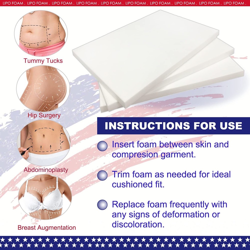 3 Pack Lipo Foam Pads - Post Surgery Ab Board Liposuction Surgery Flatten A MUST FOR YOUR RECOVERY - Lipo foam pads works by offering comprehensive compression over the healing zone and ensuring equal pressure for improved comfort and faster healing. Lipo foams are an essential post op recovery aid for anyone who has undergone liposuction and abdominal surgeries such as tummy tucks and C-sections. Size 8" X 11" X 0.5" inch. LIPOSUCTION FOAM - Compression lipo foam sheets designs to help with recovery after plastic surgery procedures such as abdominal and waist liposuction, BBL, 360 lipo abdominoplasty (tummy tuck), arms and thighs liposuction, coolsculpting, smart lipo, Brazilian butt lift, liposculpture, C-section, vaser. SUPER SOFT & EASILY CURVED: Our post surgery lipo foam is made of high quality polyurethane foam, which is super soft and easily curved to fit you perfectly, help to create a soft barrier between compression garments and sensitive skin. Foam can be easily trimmed to desired size and shape. CONTROL SWELLING & IMPROVE DISCOMFORT: Our lipo compression AB board foam is fundamental in helping controlling swelling, bruising and also with contouring by preventing wrinkling of the skin and enhancing skin retraction.With the use of lipo foam sheets, you will feel and see a difference in your pain, discomfort and results. THE IDEAL COMPLEMENT FOR YOU: These Surgery Ab Boards are used after a cellulite reduction, tummy tuck, hip surgery, abdominoplasty, knee surgery, panniculectomy, liposuction, breast augmentation and more.They can be used under any medical compression garments, recovery suit, assets shapewear bodysuit, girdle, bra, bandeau, belt, or other post surgery clothing. Shipping We offer FREE shipping on all orders! We ship within Three business days of payment, usually sooner. We use a selection of shipping services such as UPS, FedEx, USPS etc. We only ship to the lower 48 states, no APO/FPO addresses or PO Boxes allowed. Local pickups and combined shipping options are not provided at this time. Return You can return a product for up to 30 days from the date you purchased it. Any product you return must be in the same condition you received it and in the original packaging. Please keep the receipt. Payment We accept payment by any of the following methods: PayPal Please pay as soon as possible after winning an auction, as that will allow us to post your item to you sooner! Feedback Customer satisfaction is very important to us. If you have any problem with your order, please contact us and we will do our best to make you satisfied. Contact Us If you have any queries, please contact us via ebay. We usually respond within 24 hours on weekdays. Please visit our eBay store to check out other items for sale! Thank you for shopping at our store.