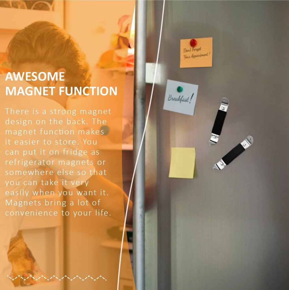 3 Pack Magnetic Bottle Openers Stainless Steel Flat Opener, Black Unique Design: One side is a bottle opener, and the other side is a can opener, You can choose to use it according to your needs Great Material: Made of high-quality plated iron for a lasting use Repeated use will not cause any damage to the product itself, There is also a plastic casing to prevent rust Proper Size: 4.5" long x 0.87" wide,It is small in size makes them compact and easy to store in any bag or drawer Multi-function:The magnet design on the back will bring you lots of convenience while using and storage,attached to the refrigerator, making it easy to find Wide Application: Can easily and quickly open the beer, soft drinks, soda water, and more, Perfect for everyday life and party events Product description Color:Black Sizer:4.5" long x 0.87" wide 3 Pack Magnetic Bottle Openers The magnet design on the back will bring you lots of convenience while using and storage,attached to the refrigerator, making it easy to find Shipping We offer FREE shipping on all orders! We ship within Three business days of payment, usually sooner. We use a selection of shipping services such as UPS, FedEx, USPS etc. We only ship to the lower 48 states, no APO/FPO addresses or PO Boxes allowed. Local pickups and combined shipping options are not provided at this time. Return You can return a product for up to 30 days from the date you purchased it. Any product you return must be in the same condition you received it and in the original packaging. Please keep the receipt. Payment We accept payment by any of the following methods: PayPal Please pay as soon as possible after winning an auction, as that will allow us to post your item to you sooner! Feedback Customer satisfaction is very important to us. If you have any problem with your order, please contact us and we will do our best to make you satisfied. Contact Us If you have any queries, please contact us via ebay. We usually respond within 24 hours on weekdays. Please visit our eBay store to check out other items for sale! Thank you for shopping at our store.