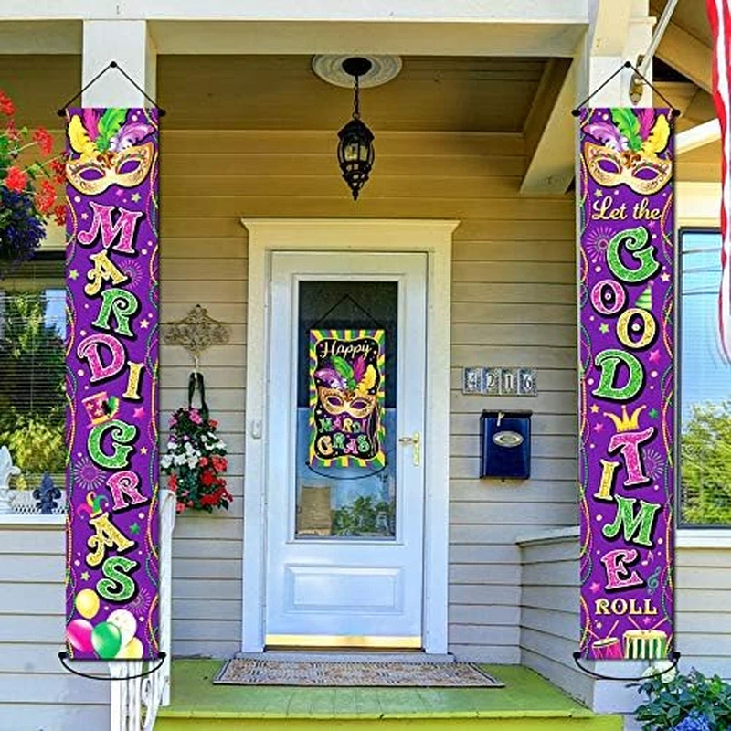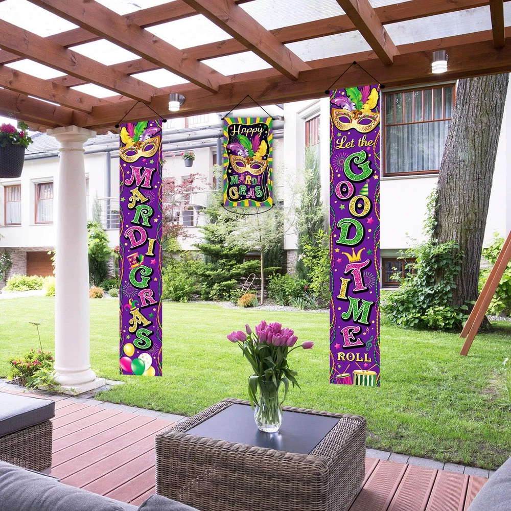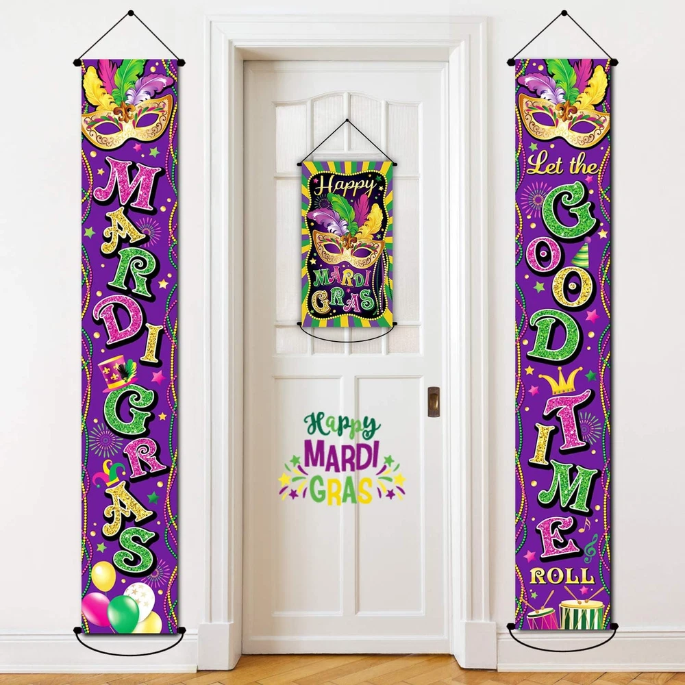 3 Pack Mardi Gras Decorations Banner New Orleans Party Mardi Gras Porch Door Dec