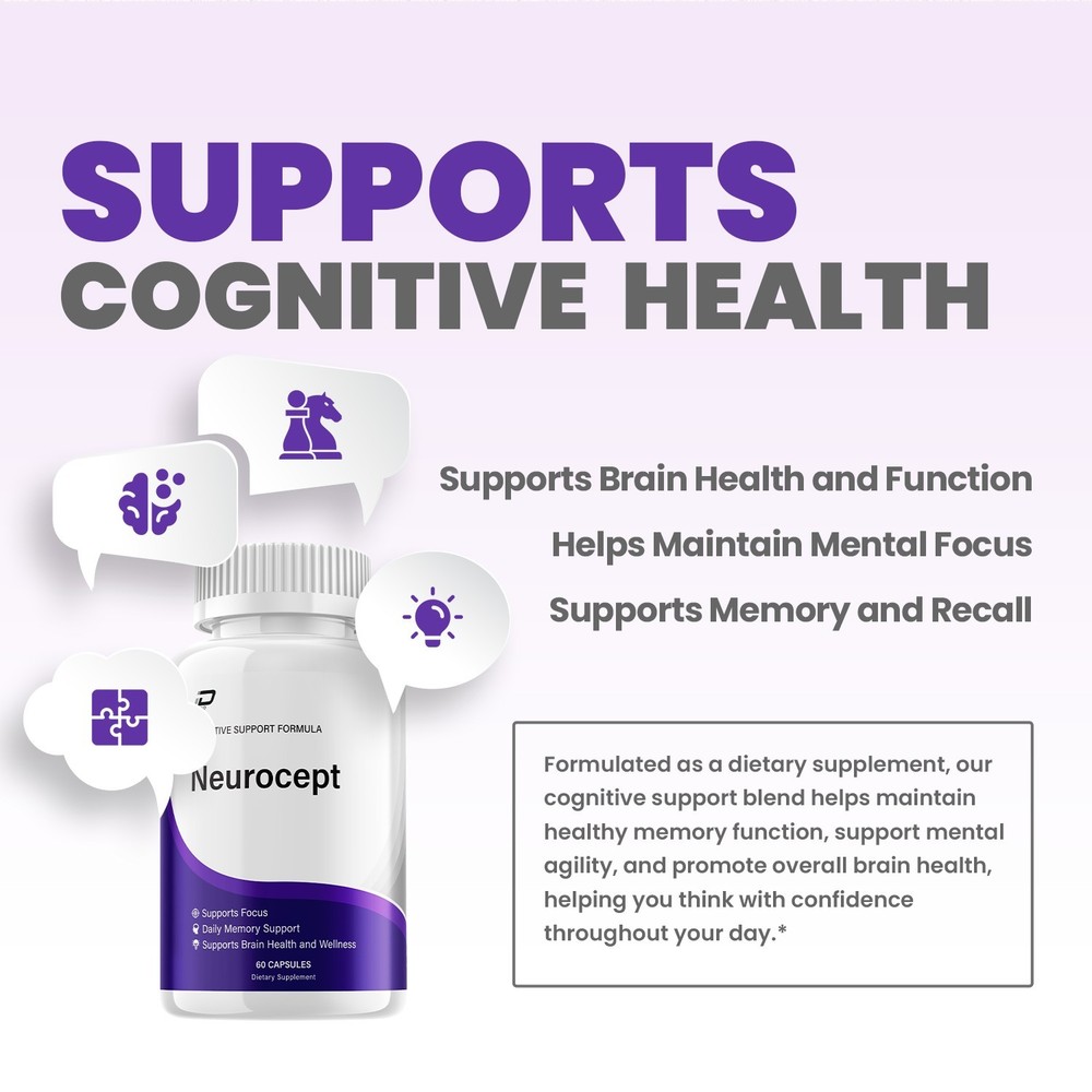 The Neurocept Supplement Capsules are designed to improve memory and focus by providing key ingredients such as Alpha-Lipoic Acid, Ginkgo (Ginkgo biloba), and Bacopa. With a blend of natural ingredients like Eleuthero (Siberian Ginseng) and Phosphatidylserine, this supplement is formulated to support brain and nervous system health. Made in the United States. Neurocept Brain Supplement Capsules: Formulated that may support memory and focus, helping you stay sharp throughout your day. Neurocept Maximum Strength Natural Blend: Crafted with quality ingredients that may provide for performance. Neurocept Supports: Designed that may support in maintaining abilities and brain wellness. Neurocept Pills: Capsule that may support focus Neurocept Capsules: Incorporate Neurocept Capsule into your routine for optimal support of mental focus and alertness.