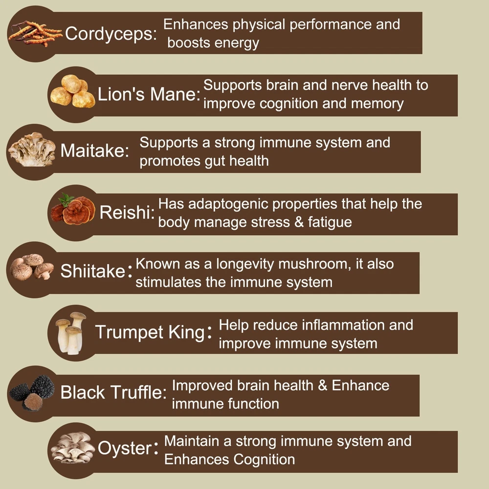 Product Description: Fmlave Black Truffle 14 Mushroom Coffee combines the richness of black truffle latte flavor with the benefits of 14 premium mushroom extracts. Crafted with a medium roast, this coffee provides a smooth and satisfying experience, promoting wellness, energy, and a healthier lifestyle. Perfect for hot or cold brew options, this coffee is designed to elevate your daily routine. Ingredients: Black Truffle Extract: 300mg Cordyceps Extract: 300mg Maitake Extract: 200mg Himematsutake Extract: 200mg Ganoderma Lucidum Extract: 200mg Lion’s Mane Extract: 200mg Shiitake Mushroom Extract: 150mg Black Fungus Extract: 100mg Boletes Extract: 100mg Dictiyophora Indusiata Extract: 100mg Poria Cocos Extract: 100mg Oyster Mushroom Extract: 50mg Trumpet King Mushroom Extract: 50mg Instant Coffee Powder Key Features: Wellness Blend: Contains 14 natural fungal extracts for holistic health benefits. Flavor Profile: Black truffle latte flavor with a medium roast for a rich and creamy taste. Versatile Use: Enjoy hot or cold for a nourishing coffee experience. GMP & ISO & NSF Certified: Manufactured in a GMP-compliant facility, rigorously tested by trusted Third-Party Validation. Non-GMO, gluten-free, sugar-free, and free from artificial additives. Main Benefits: Energy & Focus: Provides sustained energy and mental clarity. Immune Support: Enhances immunity with mushroom extracts. Digestive Health: Promotes gut health with natural ingredients. Boost Brain & Focus Concentration: Perfect for brain function by supporting memory and focus. Directions for Use: For Hot Brew: Add 1 sachet of coffee into a cup. Pour 200-250ml of hot water. Stir well and enjoy. For Iced Coffee: Add 1 sachet of coffee into a cup. Pour 200-250ml of cold water, stir, and add ice cubes. Specifications: Net Weight: 396g/14oz Shelf Life: 24 months Exp time: 09-2027 Storage: Store in a cool, dry place away from sunlight. What you would receive? 2 pack Mushroom Coffee Powder ( 396g/14oz per pack. With a spoon inside ). Delivery details Terms of sales About sevicrs Contact us Payment Delivery details We are US sellers, and ship from US, usually the shipping time is about 2-5 working days. Terms of sales Fmlave — Science-backed daily wellness. At Fmlave you'll find some of the highest quality, healthy products, at the best prices on ebay! About sevicrs Customer satisfaction is our main priority and we appreciate every single customer who chooses to shop in Fmlavehealth. We ensure that every order is processed with efficiency, accuracy, and attention to details. Contact us We usualkly reply in 24 hours on working days . You are very welcomed to write to us at any time. Payment Payments are managed by eBay and immediate payment is required when you use Buy It Now.