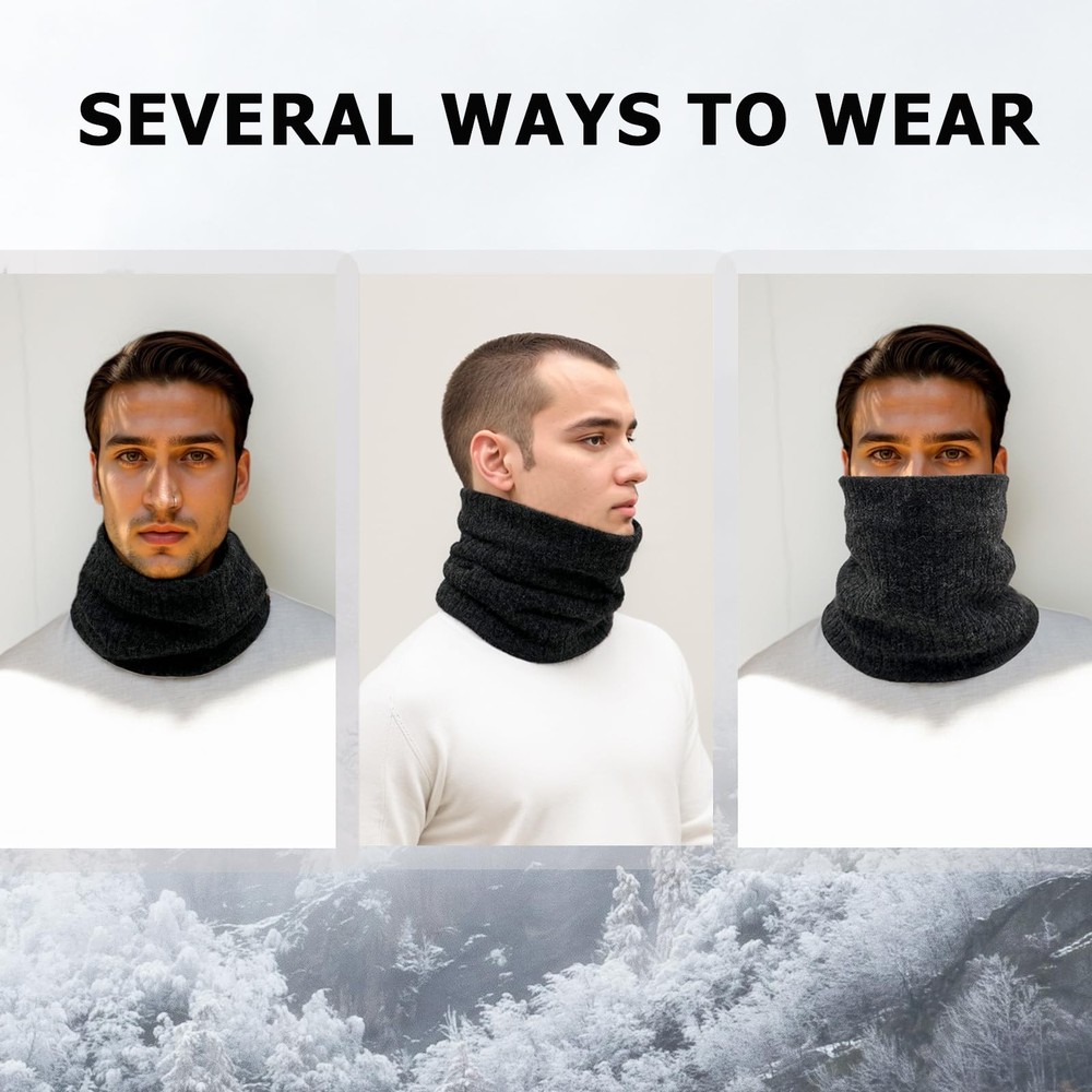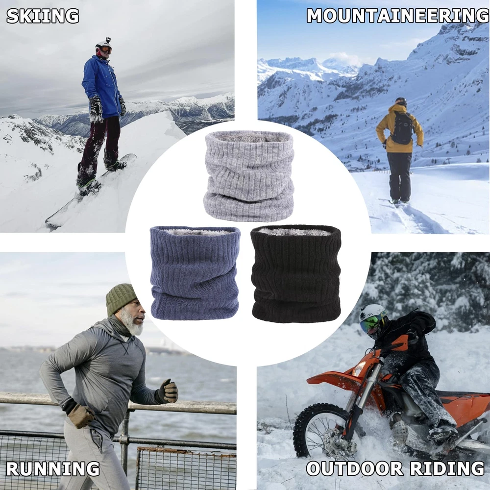 Winter Neck Warmer for Men Women Thermal Thick Warm Fleece Lined Ski Neck Gaiter Windproof Face Scarf for Cold Weather 3 Pack Quality Neck Warmers: The neck warmer is made of skin-friendly thermal fiber with fleece lining. You will feel the warmth as soon as you put it on. One Size for Most: The size of this neck warmer is 9.4 inches wide and 7.8 inches long. They all have excellent elasticity to fit most people. Neck Warmers of Various Use: You can wear these neck warmers in many ways. You can wear one on your neck as a neck warmer and face cover. When you put it on your head, you can also wear it as a balaclava, and it's helmet & googles friendly when you're riding or doing other helmet required activities. Multi-use for You: When the weather is getting colder and colder, these neck warmers will keep your neck warm in any outdoor situations like walking dog,skating, skiing, hiking, climbing, riding, cycling, fishing and any other out door activities. Package:The neck gatier sets includes 3 pieces of stylish colors neck warmers to match all your gear choose.