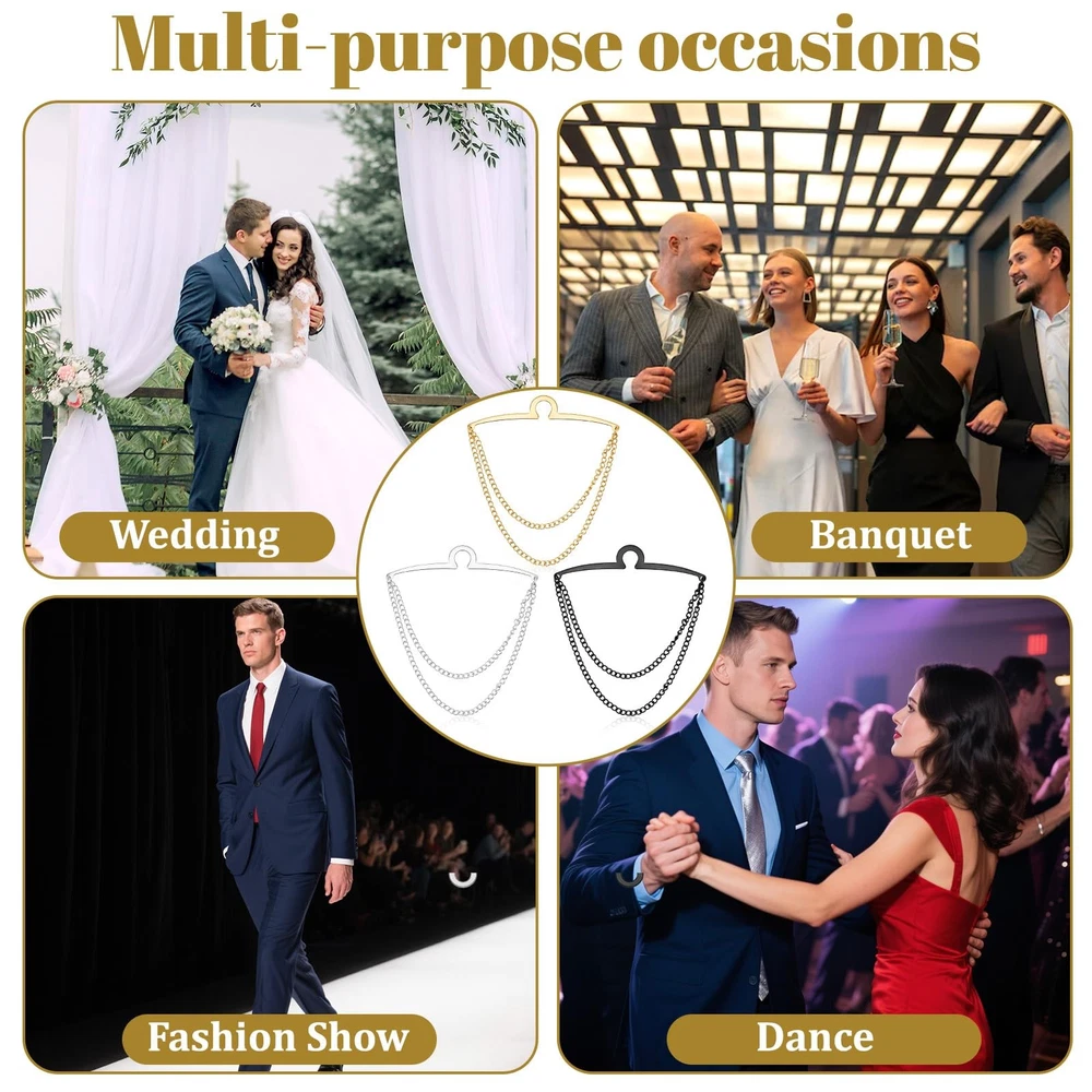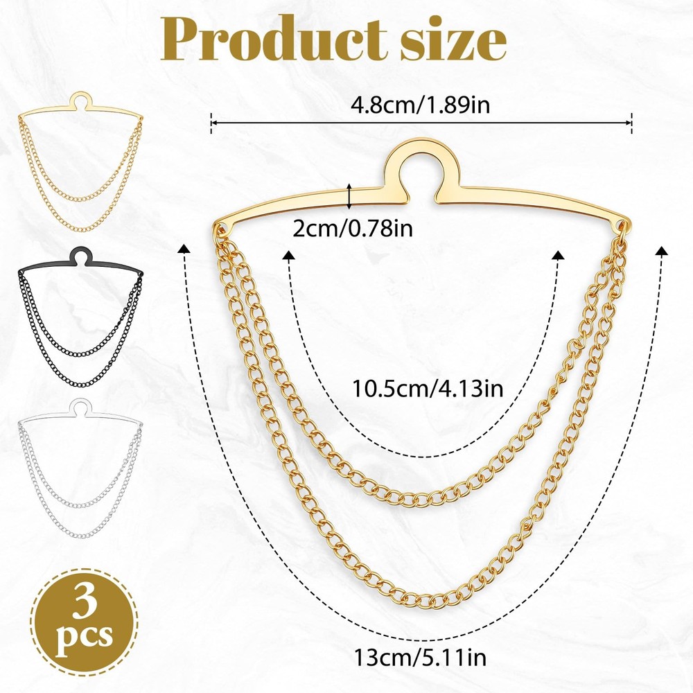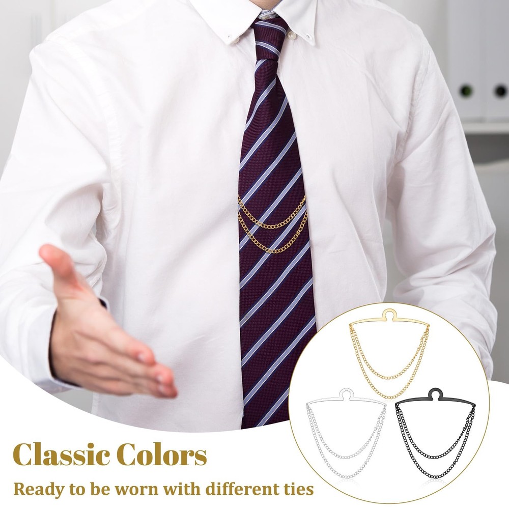 3 Pack Tie Chain for Men, Double Necktie Chains with Ring Clasps, Elegant Metal Tie Clips, Suit Accessories Men Business Jewelry for Suits, Business Wedding Accessories (Gold, Silver, Black) What You Get: You will get 3 pcs tie tacks for men in gold, silver and black to match any suit or occasion. Whether it is a business meeting, wedding or formal event, the suit accessories men can be matched with different outfits to create a fashionable look Durable Material: Made from premium copper metal with a polished finish, these tie clips for men will retain their luxurious appearance even after years of wear. The tie clip's sturdy construction ensures reliable performance day after day Stylish Design: Unlike traditional tie clips that leave marks, these mens tie clip gently secure your tie without causing any damage. The innovative loop design of the tie tack keeps your tie in perfect position while protecting delicate fabrics Carefully Designed: This tie chain for men has a simple and sophisticated look that adds a sophisticated sheen to any formal outfit. The lapel chain for men suits are perfect for the office or special occasions Thoughtful Gift: Our suit jewelry men is an ideal gift for grooms, business people, or any stylish gentleman. Whether it's a wedding, promotion, birthday, or holiday, vest chains for men is a thoughtful gift that expresses gratitude Material: copper Colors: gold, silver, black Dimensions: 7.2 x 6.2 cm Packaging: 3 pieces tie chain for men Shipping We offer FREE shipping on all orders! We ship within Three business days of payment, usually sooner. We use a selection of shipping services such as UPS, FedEx, USPS etc. We only ship to the lower 48 states, no APO/FPO addresses or PO Boxes allowed. Local pickups and combined shipping options are not provided at this time. Return You can return a product for up to 30 days from the date you purchased it. Any product you return must be in the same condition you received it and in the original packaging. Please keep the receipt. Payment We accept payment by any of the following methods: PayPal Please pay as soon as possible after winning an auction, as that will allow us to post your item to you sooner! Feedback Customer satisfaction is very important to us. If you have any problem with your order, please contact us and we will do our best to make you satisfied. Contact Us If you have any queries, please contact us via ebay. We usually respond within 24 hours on weekdays. Please visit our eBay store to check out other items for sale! Thank you for shopping at our store.
