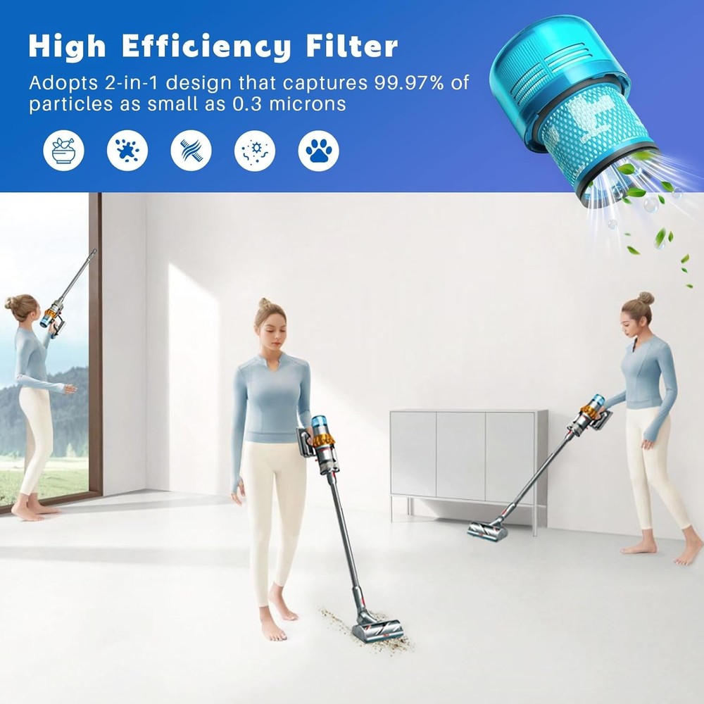 3 Pack V15 Vacuum Filters Replacement for Dyson-V15 Detect, Filter-3Pcs Description Features: Compatibility: Compatible with Dyson Cordless Vacuum V15 V11 SV14, Fit for Dyson-V15 V11 Torque Drive Vacuum and Fit for Dyson V11 Animal. Compare to Part # 970013-02. Not suitable for Dyson-V11/V15 outside vacuum. Please confirm your accessory model before ordering Mismatch Model: NOT compatible with Dyson-V15 Outsize, V11 Outsize, Outsize Absolute+, V12 Slim vacuums, Dyson Gen5 Series and SV19 Omni-glide + vacuums Valuable Package : Includes 3 Pack V11 V15 replacement filters and 1 brush.Fanulter replacement parts seamlessly integrate with your vacuum cleaner, ensuring great performance Washable Reusable: Filters can be hand-washed with warm water, air-dried, and reused for cost-saving and prolonged use Cost-Effective Maintenance: Recommended to wash every 3-5 weeks and replace every 3-6 months for great performance, ensuring a fresh home environment Product Details: Brand Name: Fanulter Model Info: Dyson V11, V15 Item Weight: 13.1 ounces Product Dimensions: 2.3 x 3.5 x 5.1 inches Country of Origin: China Item model number: Dyson V11, V15 Part Number: V11 Filter-4Pcs Color: V15 Filter-3Pcs Material Type: HEPA Included Components: HEPA Batteries Included?: No Batteries Required?: No Brand: Fanulter Material: HEPA Product Dimensions: 2.3"L x 3.5"W x 5.1"H Number of Pieces: 3 Reusability: Reusable Handling We will ship all orders within 3 business day of payment. Delivery We take pride in offering fast and reliable delivery for your orders! We are committed to getting your products to you as quickly as possible. Generally, we would like to inform you that all orders will be delivered to you within 1-3 business days after processing.However, in some cases, delivery times may vary depending on the buyer's location. Especially in remote or rural areas, the expected delivery time may be extended. In such situations, we do our best to ensure that your order reaches you as quickly as possible.If there are any delays, we will be happy to contact you to explain the situation. Our goal is to enhance your satisfaction with our fast delivery times. We work diligently to ensure that your order arrives safely.Trust us and enjoy our speedy delivery! Return Policy All items qualify for returns within 30 days of receipt. Buyer is responsible for return shipping on any item that is not damaged. Feedback We take our reputation seriously, we buy and sell online, so we understand the value of trust. If you are unsatisfied with your order, please contact us and we will work with you to resolve it to your satisfaction.