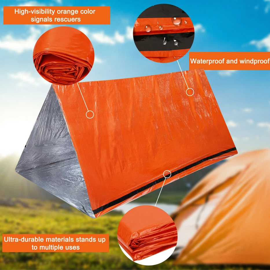 3 Pack Emergency Sleeping Bag Thermal Waterproof Outdoor Survival Camping Hiking Product Description: The emergency sleeping bags survival Bivvy sack size 36 * 84 inches; Lightweight survival kit for outdoor camping hiking lovers. KEEP WARM - Made of durable insulating Mylar material, premium choice for emergency situations in need of warmth protection from all-weather conditions. High reflective Alu. foiled thermal material are designed to reflect your body heat back to prevent the hypothermia even save your life in emergencies. MULTIPURPOSE EMERGEMCY USES -The emergency bivvy bag serves as your emergency blanket, survival shelter, and emergency bivy sack all-in-one. Use as tent footprint, rain poncho, emergency signal, emergency shelter, ground cover, bivouac sack, wind blocker, water collector, snow melt container and so on. The bright orange color survial bivvy sacks can help rescuers to find your location and get quick rescue. ULTRA LIGHTWEIGHT COMPACT PORTABLE - Each Pack emergency sleeping bag is kept in a small drawstring storage bag diam. 2.8*3.95" weight 4 oz. Portable to carry for outdoor activities and keep storage after every use. Easy to store it in your car, backpack, emergency first-aid case, etc. Features: 1. The first aid sleeping bag is made of aluminium foil.It has a metal coating on the surface. 2. The inner layer is a PE plastic film, which can reflect the heat back to the body in order to keep you warm. 3. Emergency sleeping bag is used in special circumstances like earthquake or outdoor distress.With this emergency sleeping bag can still keep away you from cold. 4. This bag is not a one-time-use bag. After each use, you should carefully fold it in order to use it again. Specifications: 1. Material: PE . 2. Mattress Size: Single. 3. Color: Orange. 4. Structure: Envelope . 5. Weight: 120g. 6. Size: Approx. 213 x 90 cm Main Functions: 1. When camping, it can be used to strengthen the wind protection effect outside the sleeping bag. 2. An emergency sleeping bag can keep the weak patient from lossing heat. 3. When you arein danger in the wild.You can wrap the emergency sleeping bag around your body and use its reflective function to help the rescue people quickly find you. 4. It can be used to collect water,tents and waterproof mats. 5. Sun block Package Includes: 1 x Emergency Sleeping Bag or 2 x Emergency Sleeping Bag or 3 x Emergency Sleeping Bag Payment Delivery details Terms of sales About us Contact us Payment We only accept PayPal payments. Payment should be made within 5 days after bidding ends. We are not responsible for buyers' local taxes. 1) Import duties, taxes and charges are not included in the item price or shipping charges. These charges are the buyer responsibility. 2) Please check with your country customs office to determine what these additional costs will be prior to bidding / buying. Delivery details We only ship to the given address in eBay payment。 Please make sure payment address in eBay is correct. Any non-received items caused by invalid address registered on eBay are not in our full refund or replacement policy. Don't forget your telphone number ,so that item can reach your home in time and accurately. Terms of sales Item may be returned for refund or replacement within 30 days of the purchase date. Returned merchandise must be unused, in original packaging and include all accessories. Shipping costs are non-refundable. Please do not hesitate to leave us your 5 Star ★★★★★ of DSR positive feedback if you are satisfaction with our products ,delivery or services . If you have Any Questions Or unsatisfied with your purchase, please email us first to get a better solution before you leave a neutral or negative feedback, we work hard to make sure every customer 100% satisfied and resolve anyproblem for you. Thank you for your kindness. About us We are a professional worldwide Professional company, with own factory located in China. We also offer reasonable prices , excellent customer service and a reliable credit standing are our target! Contact us 1. If you have any further queries, you can feel free to email me via email or eBay message. Thank you. 2. Please email us first before giving negative feedback or opening a case. Wish we can solve the problem peacefully . 3. Much appreciated if you could leave us positive feedback with five stars. 4. We will reply you within 12 hours and do our best solve the problem with you (Except on Weekends and Holidays) Work time:Monday to Friday GMT8 (9:00am-18:00 PM) Welcome your any-time parchase!