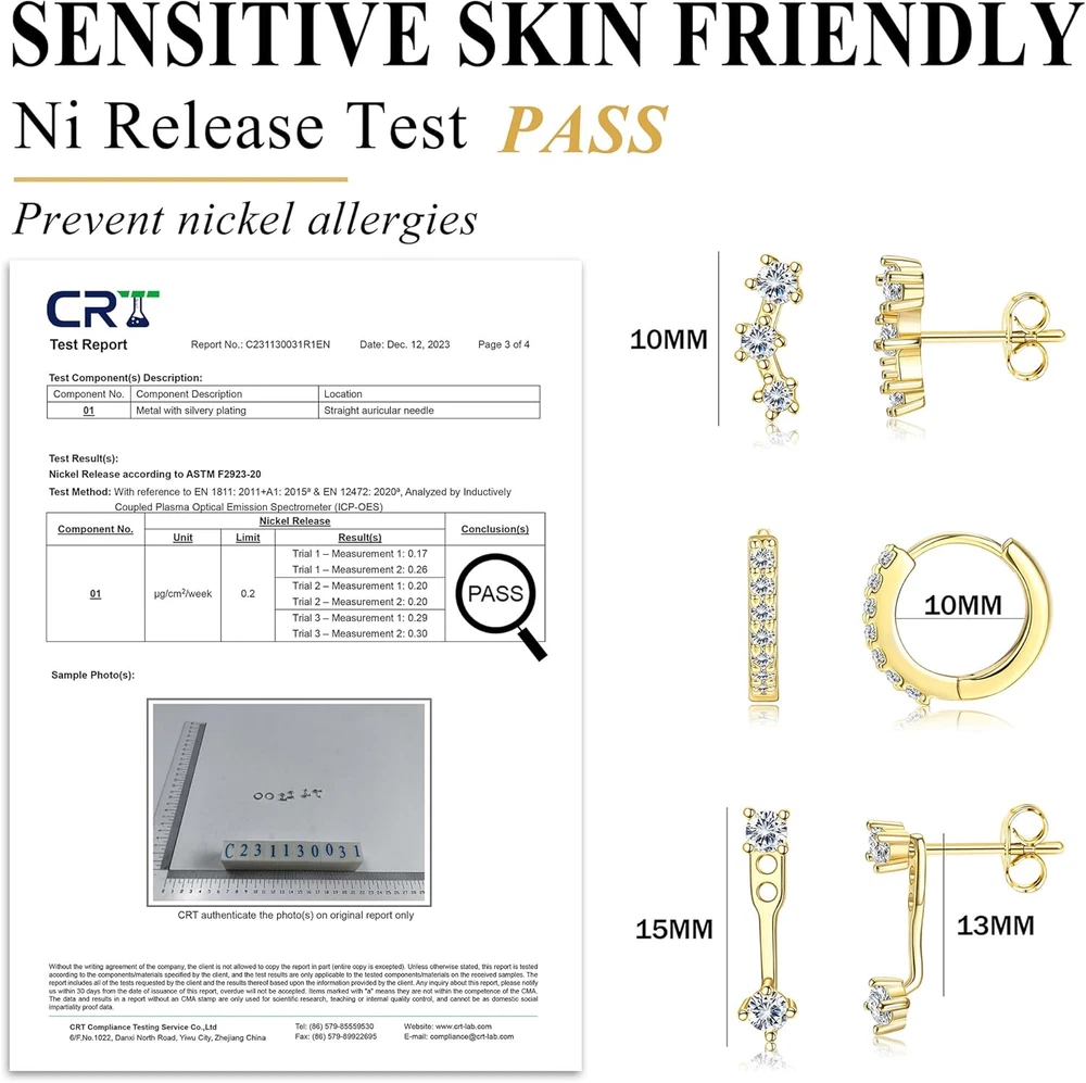 Store New Arrivals Add to Favorite View Feedback Contact Fast deliveries to the customer's home Quality customer service John Make the customers happy! 3 Pairs 925 Sterling Silver Hypoallergenic Earrings Set for Multiple Piercing Dainty 14K Gold Plated Stud Huggie Small Hoop Earrings for Women Trendy Cute Earring Stacks for Sensitive Ears Description Product Description Metal stamp 925 Gem Type Cubic Zirconia Color Gold,White CZ Product Dimensions 0.2 x 0.2 x 0.1 inches; 0.35 ounces Material Sterling Silver Metal Sterling Silver Item Length 0.2 inches Department womens Team Name Gold Back finding Push Back Number of stones 3 ABOUT US We offer the best prices around on high quality products. Our E-store includes media such as books, movies, music and games while offering electronics, toys, sporting apparel, clothing, tools, general home, garden items and more. SHIPPING We are always working hard to ensure your package arrives as soon as possible. Please understand that some factors like weather, high postal traffic, and the performance of shipping companies are outside of our control. We offer free shipping to the lower 48 states and ship within 2 business days of payment, usually sooner. We do not accept P.O. Boxes. Please provide a physical address. For shipping outside of the continental USA, we only use eBay's Global Shipping Program. The item is shipped to KY and then sent to the rest of the world. International customers are responsible for all duties and taxes. Continue to 'check out' to calculate costs for shipping the item to your country. Messages regarding eBay's Global Shipping Program MUST be directed at eBay EXCLUSIVELY. RETURNS We offer a 30-Day Return Policy on items in which you are not completely satisfied with. You have the option of a full-refund or an exchange of the item. No returns are available on items shipped outside of the USA PAYMENT We accept PayPal. CONTACT US This page content is yet to come Please ad us to your favorite seller and visit again later Thank You CUSTOMER SATISFACTION We try our very best to make sure every customer is completely satisfied. If there's a problem, message us! We're happy to help. WE ACCEPT
