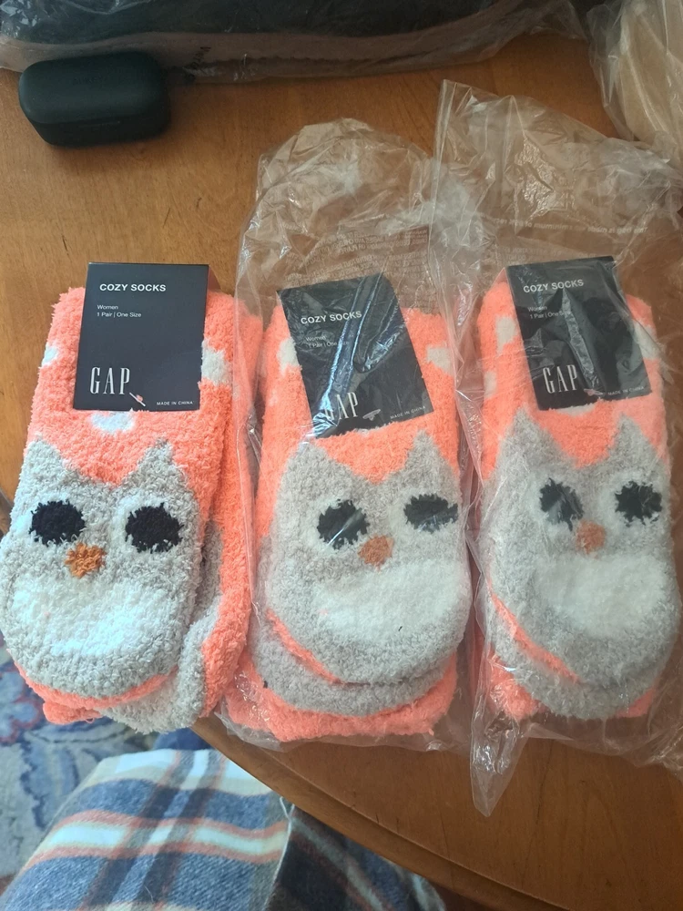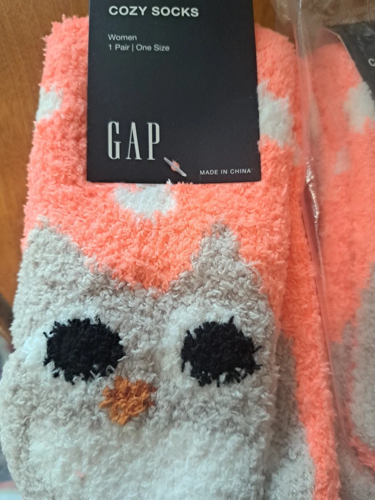 Add a touch of cuteness to your sock collection with these 3 pairs of Gap women's owl cozy socks. Made from a blend of polyester and spandex, these mid-calf socks feature a fun animal print pattern with owls as the character. The socks come in a pack of 3 pairs, making it a great value for your money. The fuzzy style of these socks is perfect for keeping your feet warm and cozy on chilly days. They are also machine washable for easy care. These socks are a must-have for any woman who loves animal print and wants to add a bit of fun to her wardrobe.