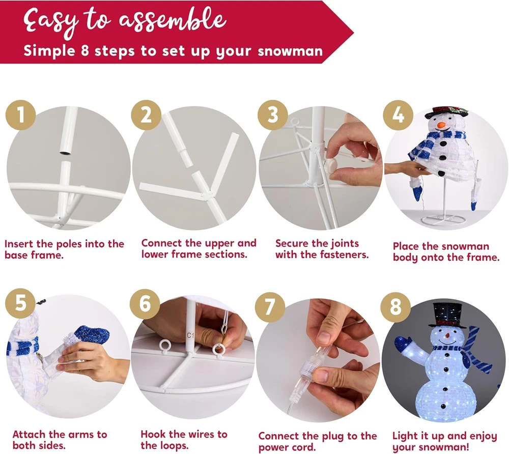 Store New Arrivals Add to Favorite View Feedback Contact 3 Pcs 3D Christmas Collapsible Snowman Yard Light 270 LED Cool White Lights Description Number of Light Sources 270 Color Cool White Light Color Cool White Material Metal Package Dimensions 23 x 20.5 x 8 inches Item Weight 12.57 pounds Theme Christmas Frame Material Metal 【Dazzling Cool White LED Lights】Illuminate your nights with our lighted outdoor christmas decorations! This light up snowman family features 270 (large snowman 120 & medium 90 & small 60) cool white LED lights for a brilliant display. The energy-efficient led snowman design uses less power. With clear wires, these snowman christmas decorations stay elegant unlit. Perfect outdoor lighted christmas decorations for your christmas yard decorations. 【Super Value Snowman Family Set】Create a heartwarming scene with our snowman family set, featuring large snowman (4FT), medium (3FT), and small (2FT) figures. These snowman outdoor decorations have classic hats and blue-and-white scarves. Though not pop-up, they assemble easily. Ideal front door christmas decorations or christmas lawn decorations, this outdoor snowman family brings cheer 【Weather-Resistant & Built for Outdoor Durability】These snowman outdoor christmas decorations feature metal frames with an IP44 waterproof rating, making them reliable outside christmas decorations for yard. While the snowman decor is weather-resistant, keep the adapter dry. With 12 ground stakes, these outdoor christmas lawn ornaments stay secure in wind. 【Effortless Setup with Enhanced Safety Features】Our snowman christmas decorations outdoor feature simple assembly.It has pre-wired frames and is very durable. The 4.5V low-voltage system and UL-certified adapter make these lighted snowman outdoor christmas decorations safe for families. As versatile outdoor holiday decorations, they create a magical merry christmas lighted sign outdoor ABOUT US We offer the best prices around on high quality products. Our E-store includes media such as books, movies, music and games while offering electronics, toys, sporting apparel, clothing, tools, general home, garden items and more. SHIPPING We are always working hard to ensure your package arrives as soon as possible. Please understand that some factors like weather, high postal traffic, and the performance of shipping companies are outside of our control. We offer free shipping to the lower 48 states and ship within 2 business days of payment, usually sooner. We do not accept P.O. Boxes. Please provide a physical address. For shipping outside of the continental USA, we only use eBay's Global Shipping Program.The item is shipped to KY and then sent to the rest of the world. International customers are responsible for all duties and taxes. Continue to check out in order to calculate costs for shipping the item to your country. Messages regarding eBay's Global Shipping Program MUST be directed at eBay EXCLUSIVELY. RETURNS We offer a 30-Day Return Policy on items which you are not completely satisfied with. You have the option for a full-refund or an exchange of the item. No returns are available on items shipped outside of the USA. PAYMENT We accept PayPal. CONTACT US This page content is yet to come Please ad us to your favorite seller and visit again later Thank You CUSTOMER SATISFACTION We try our very best to make sure every customer is completely satisfied. If there's a problem, message us! We're happy to help.